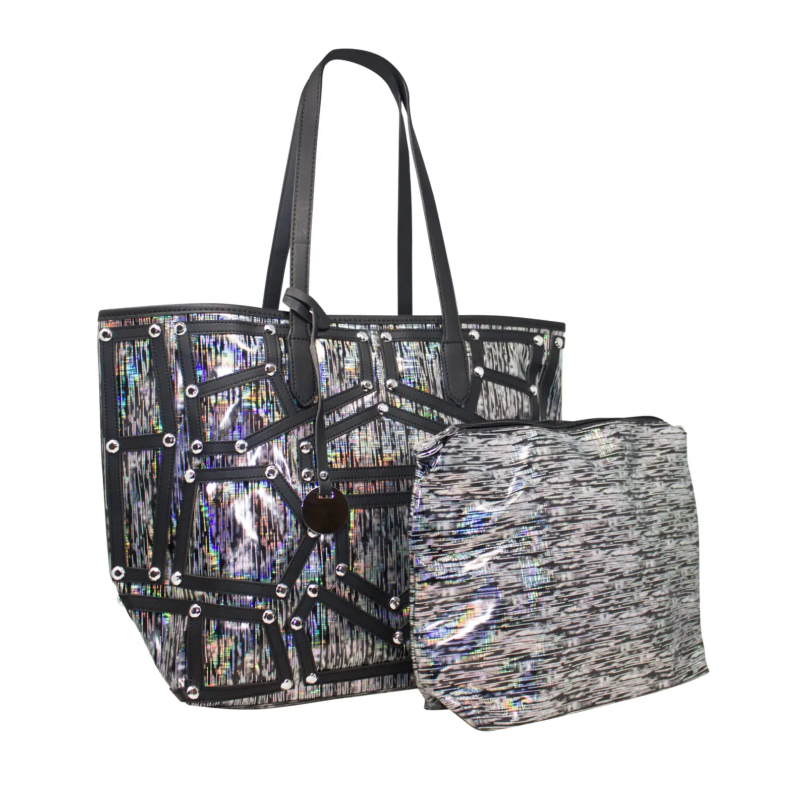 Eye-catching diamante details tote bags set Zipper closure bag with large Interior, store your essentials securely The big bag comes with a strap. Big: L x W x H – 35cm x 14cm x 31cm Small: L x W x H – 24.5cm x 9.5cm x 25cm.