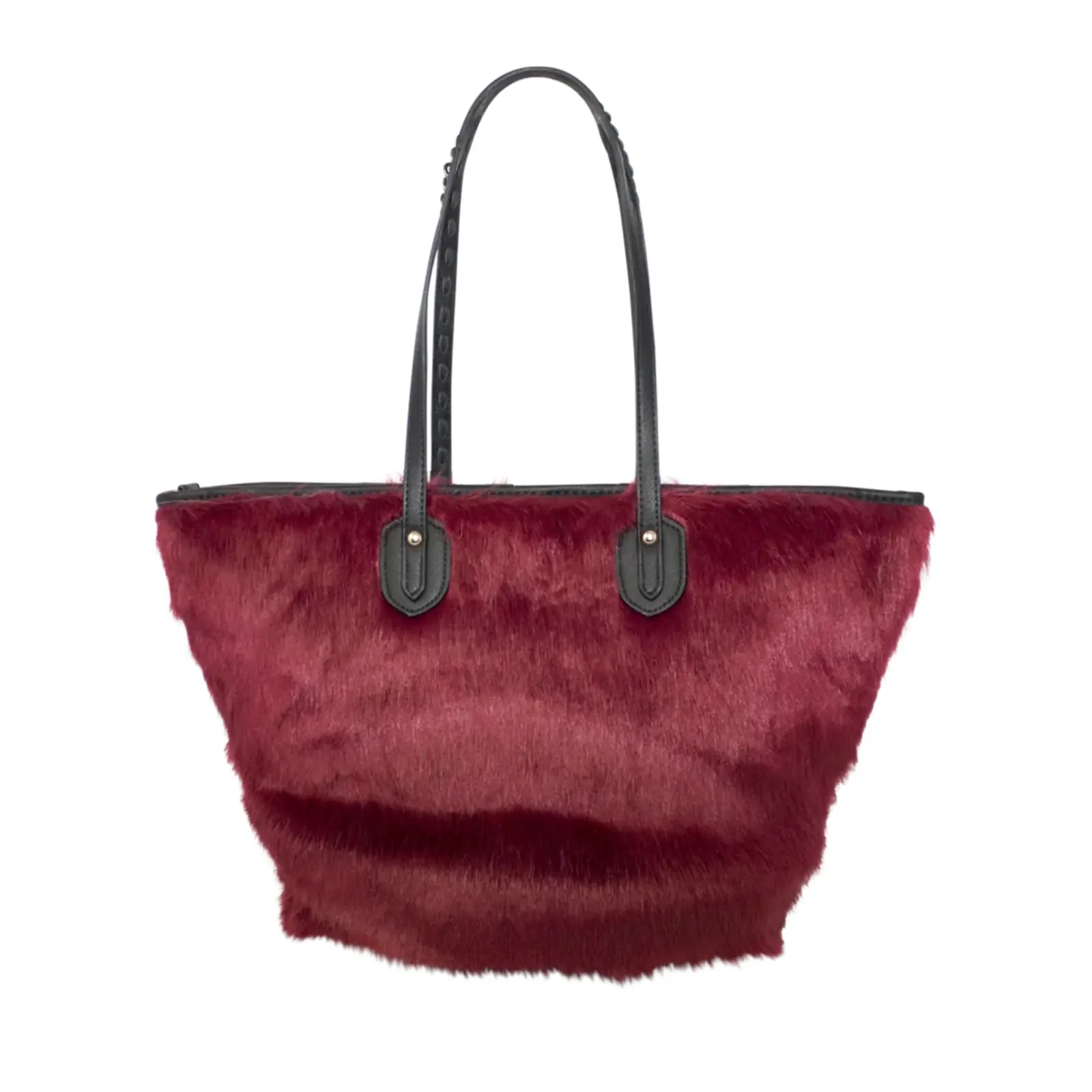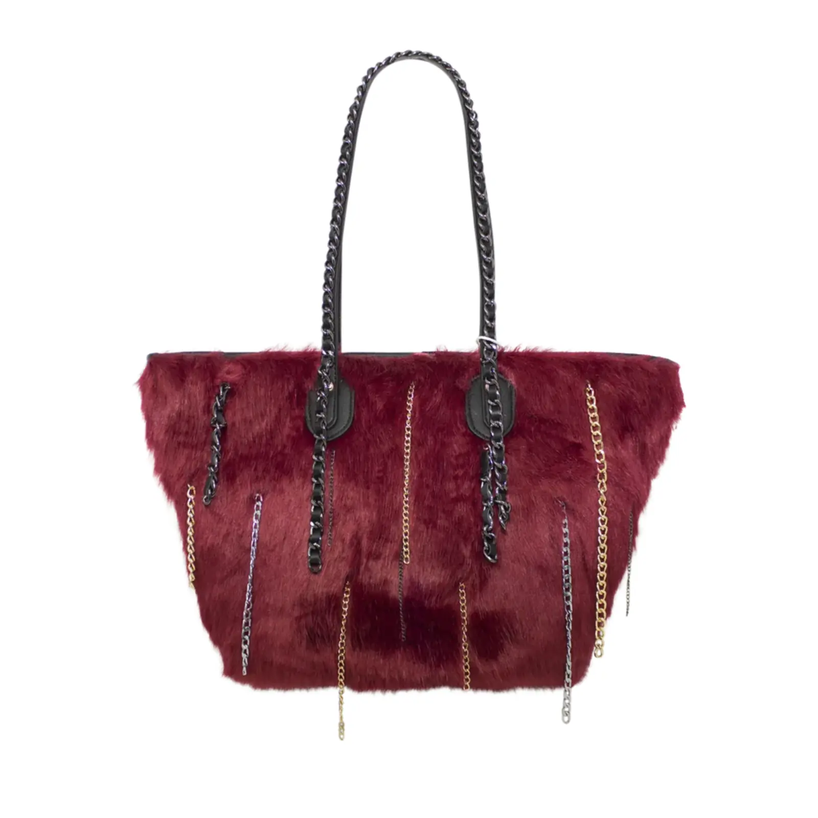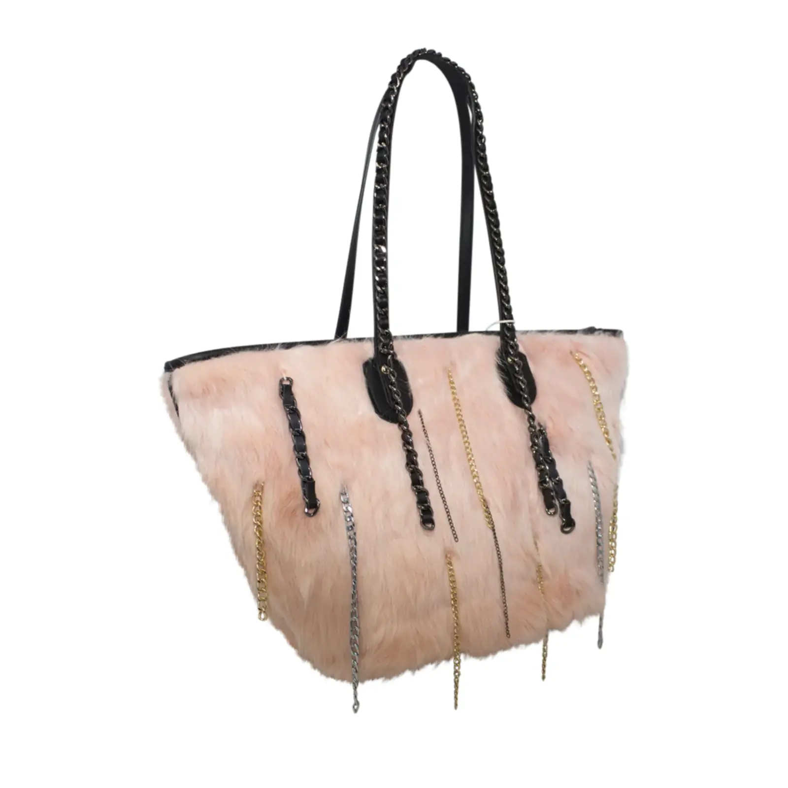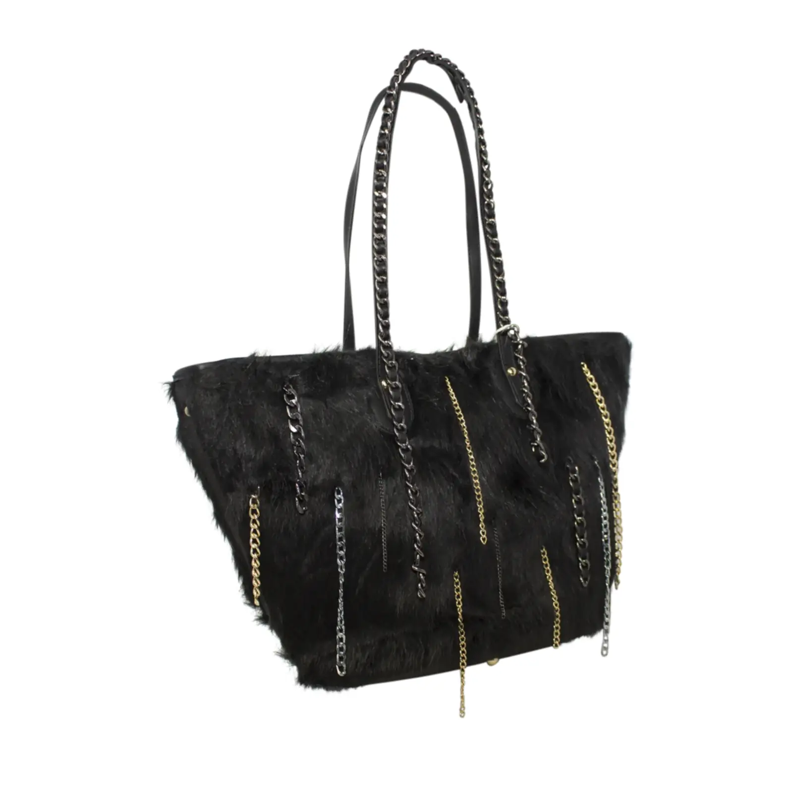 Stylish tote bag with zipper closure Faux fur design with chain details Perfect for winter outfit L x W x H – 48cm x 20cm x 27cm.
