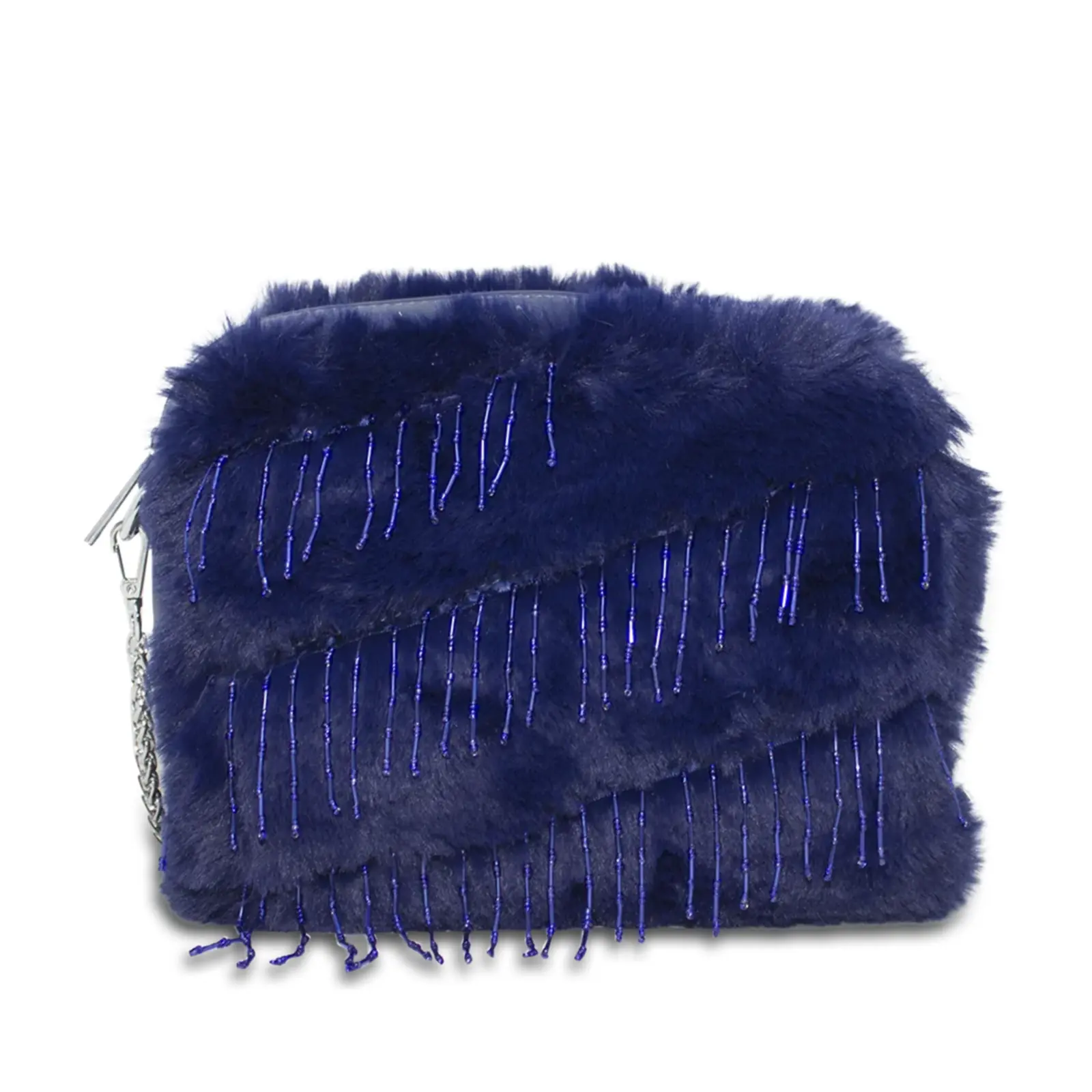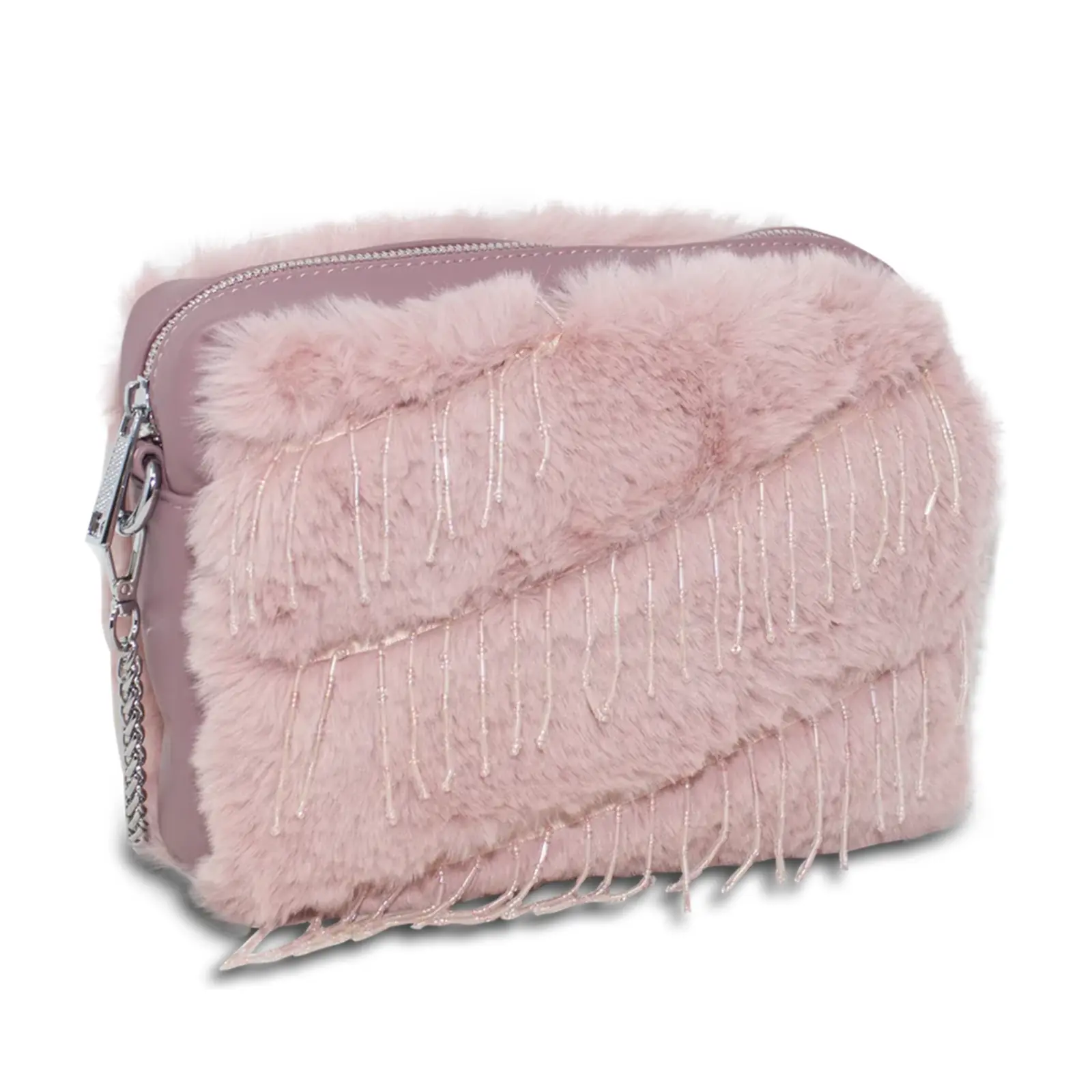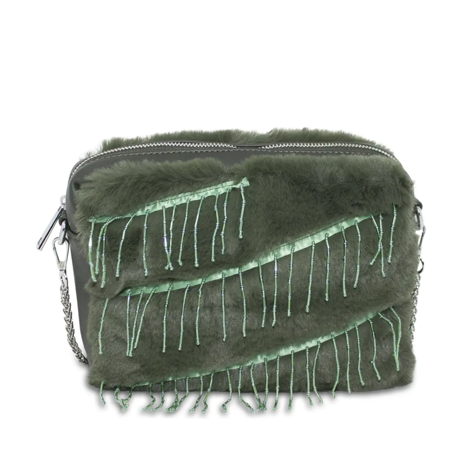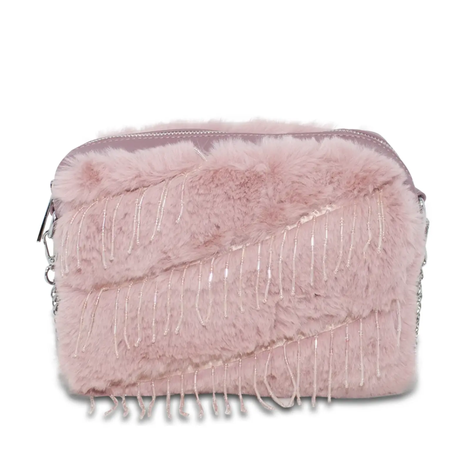Fluffy Small Shoulder Bag with Triple Tassels Detachable metal chain. Zip clousure L x W x H – 24cm x 12cm x 19cm.