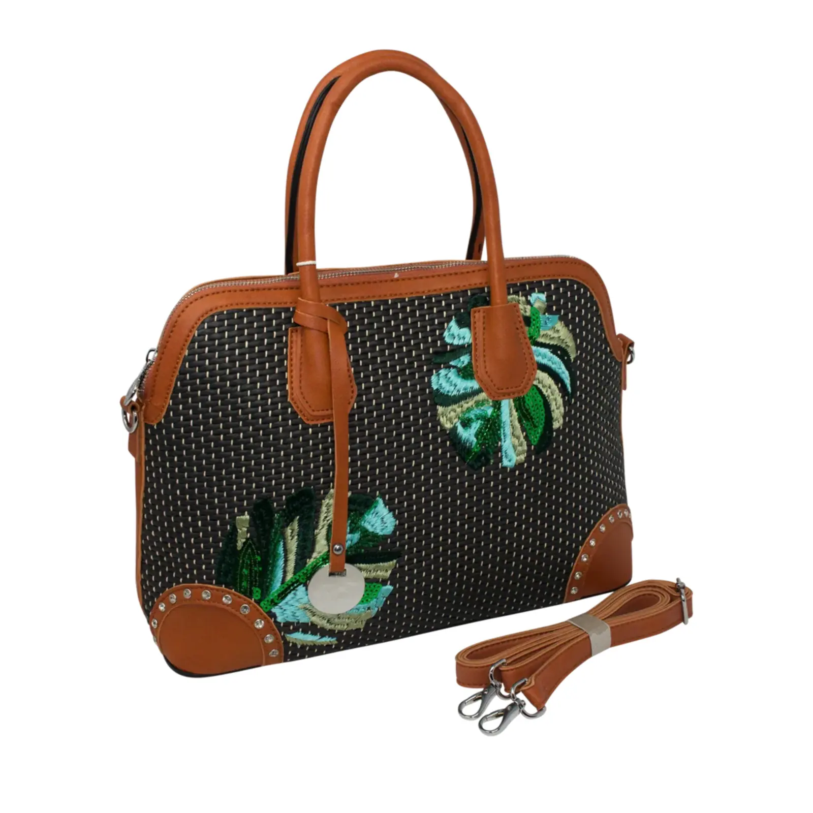 PLEASE NOTE : The Pack of 6 Pcs option includes a mix of colours, ideally one of each. Final colours may vary depending on stock availability. A wicker tote bag with blue and green stitching design. Detachable strap to wear on shoulder. L x W x H – 28cm x 14cm x 36cm.