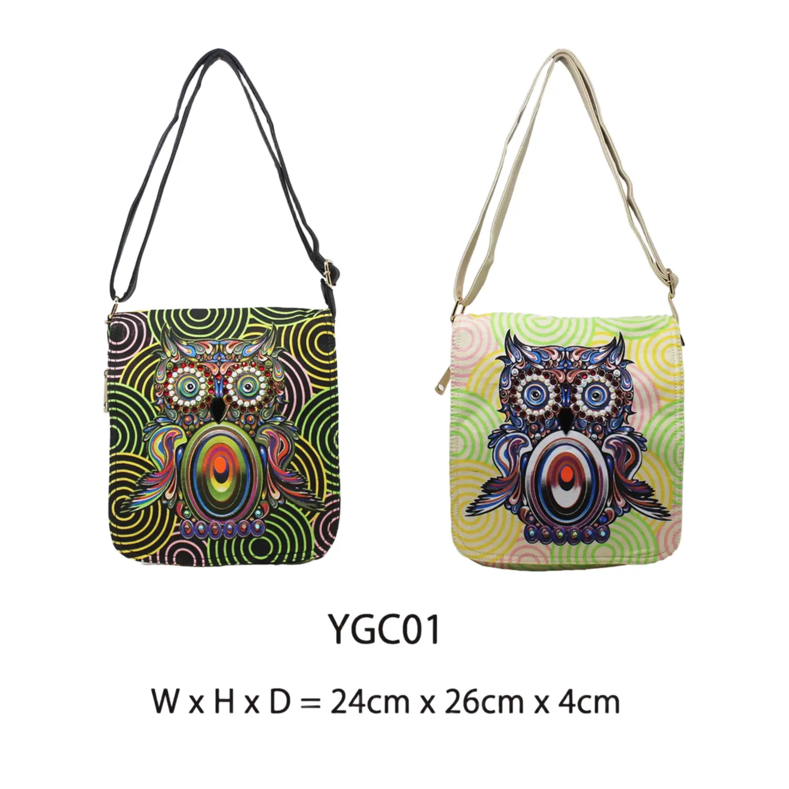 PLEASE NOTE : The Pack of 6 Pcs option includes a mix of colours, ideally one of each. Final colours may vary depending on stock availability. The Art Owl Printing Crossbody Bag combines a joyful design with practicality, featuring a vibrant owl print that adds a fun touch to any outfit. Compact yet spacious, it offers enough room for daily essentials, making it perfect for daily use or casual outings. With its adjustable strap and lightweight feel, this crossbody bag ensures comfort and style.