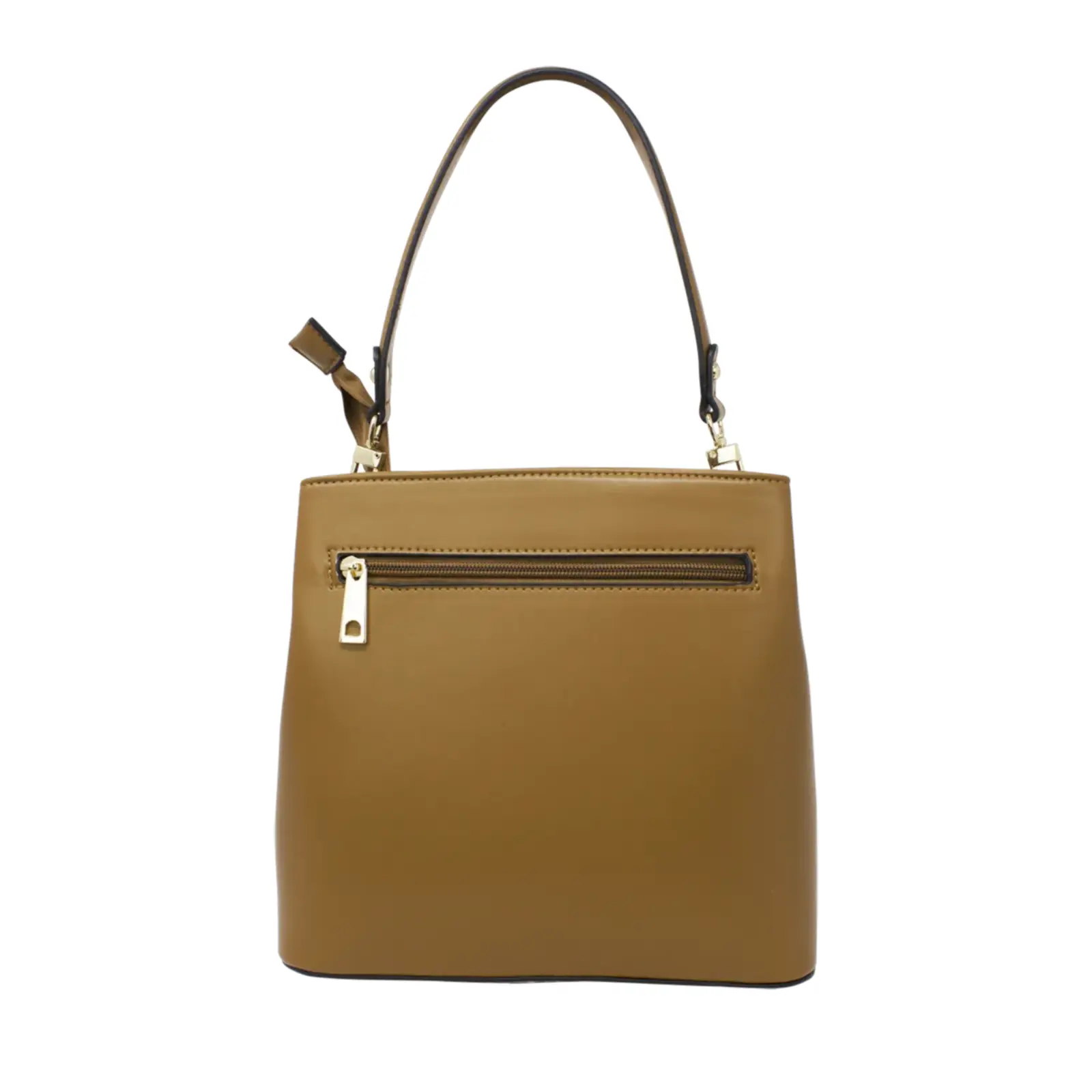 This fabulous faux leather tote bag features pleated detail, zip top closure with inner pockets. Come with a detachable shoulder strap for style switch.