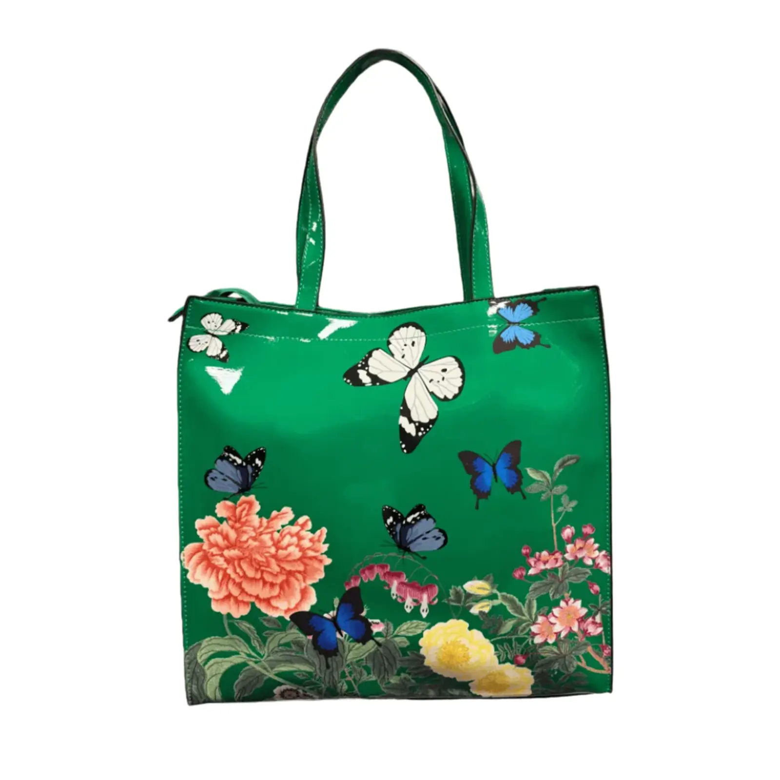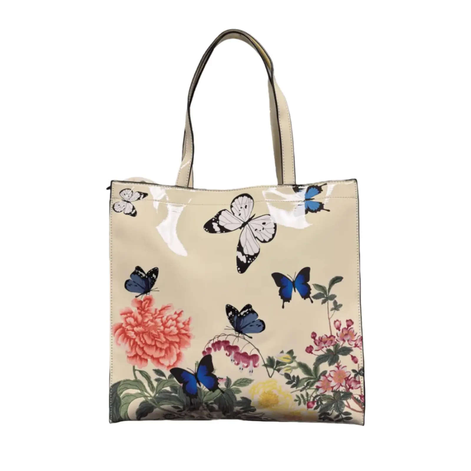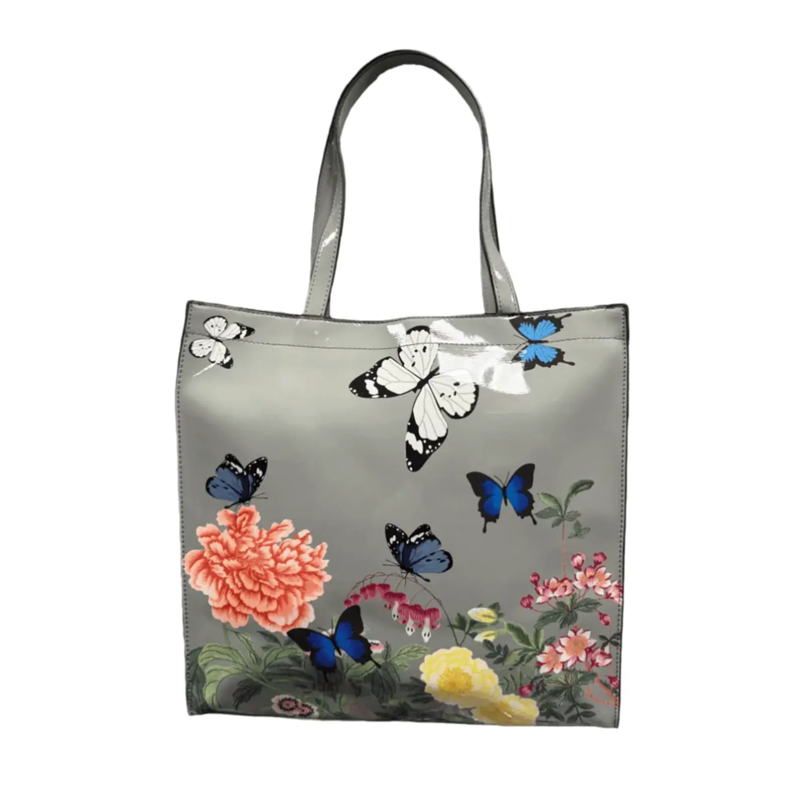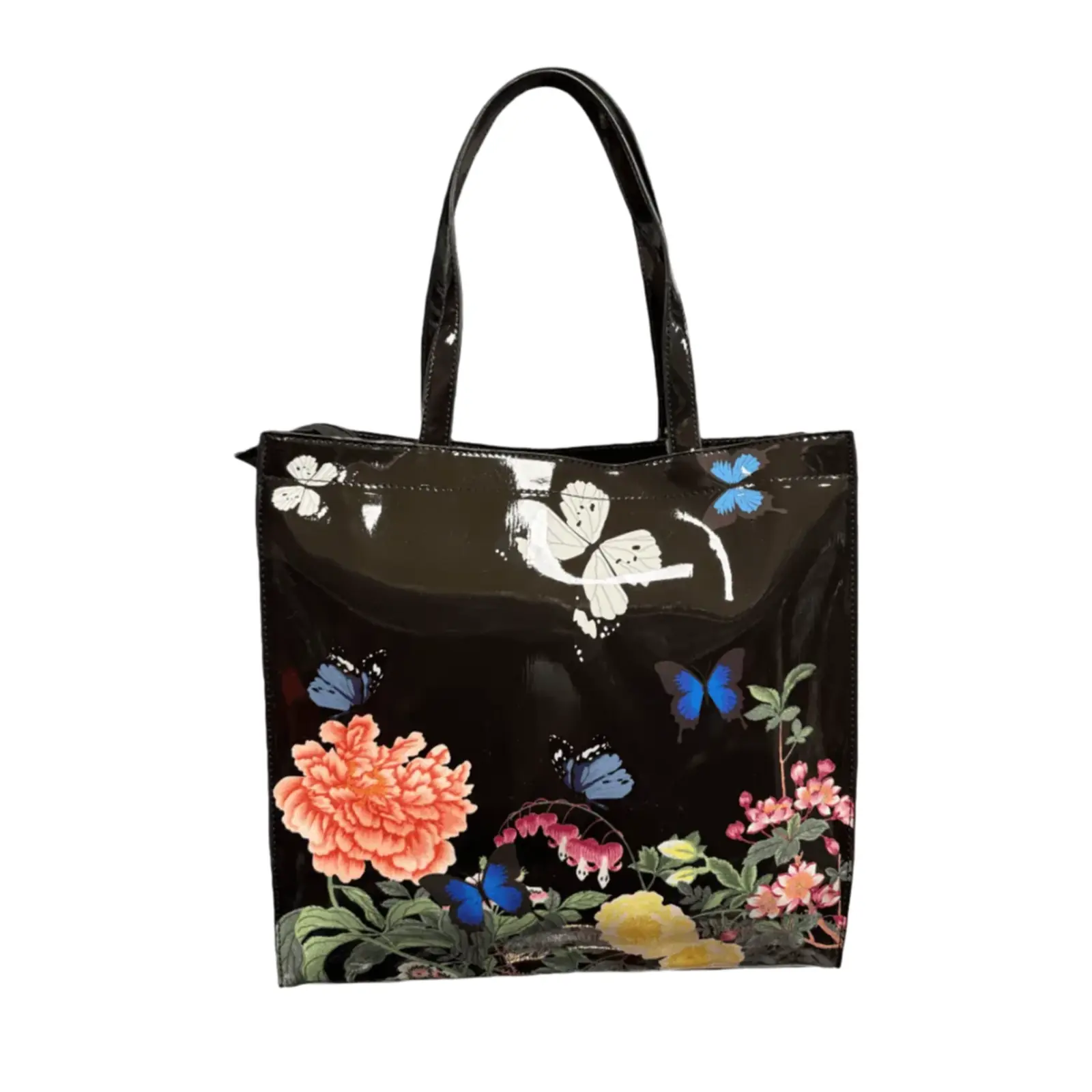 This tote bag features an elegant butterfly and floral print design, combining aesthetic appeal with practical functionality. It easily accommodates your daily essentials. Crafted from premium, durable fabric, it is suitable for various occasions such as commuting, shopping, and casual outings, adding a touch of lively charm to any outfit. L x H x W = 34cm x 34cm x 9cm.