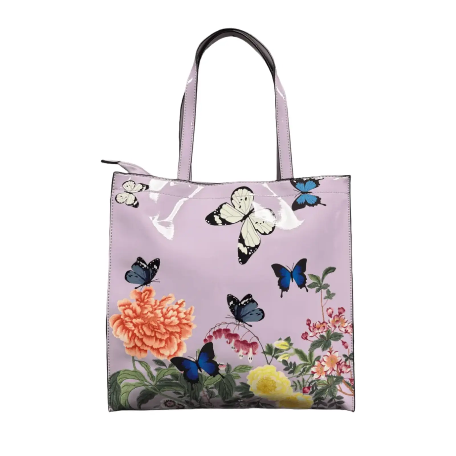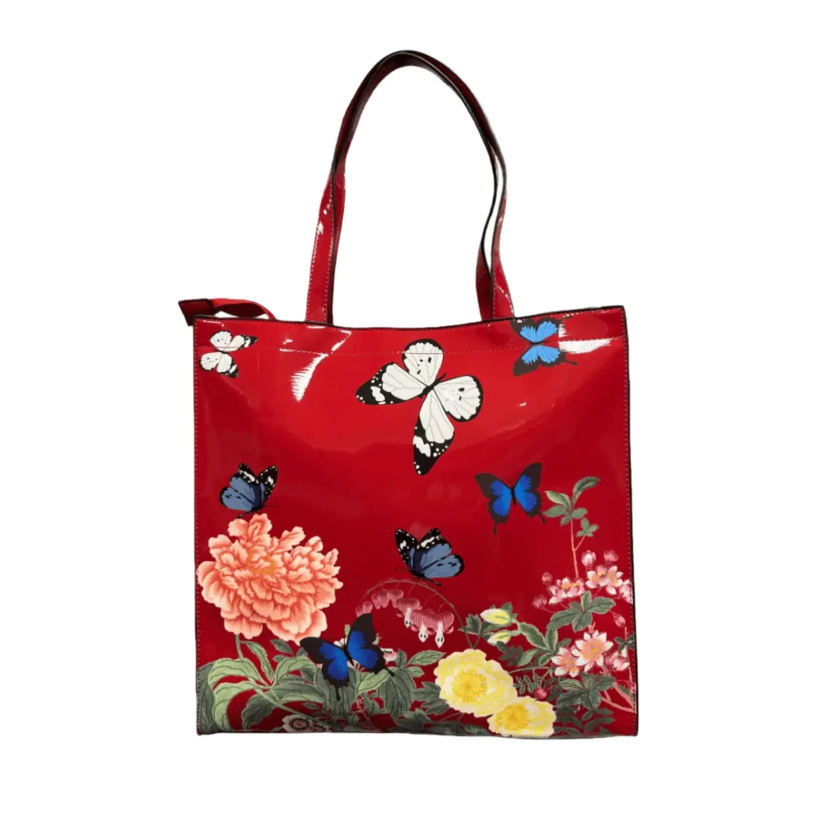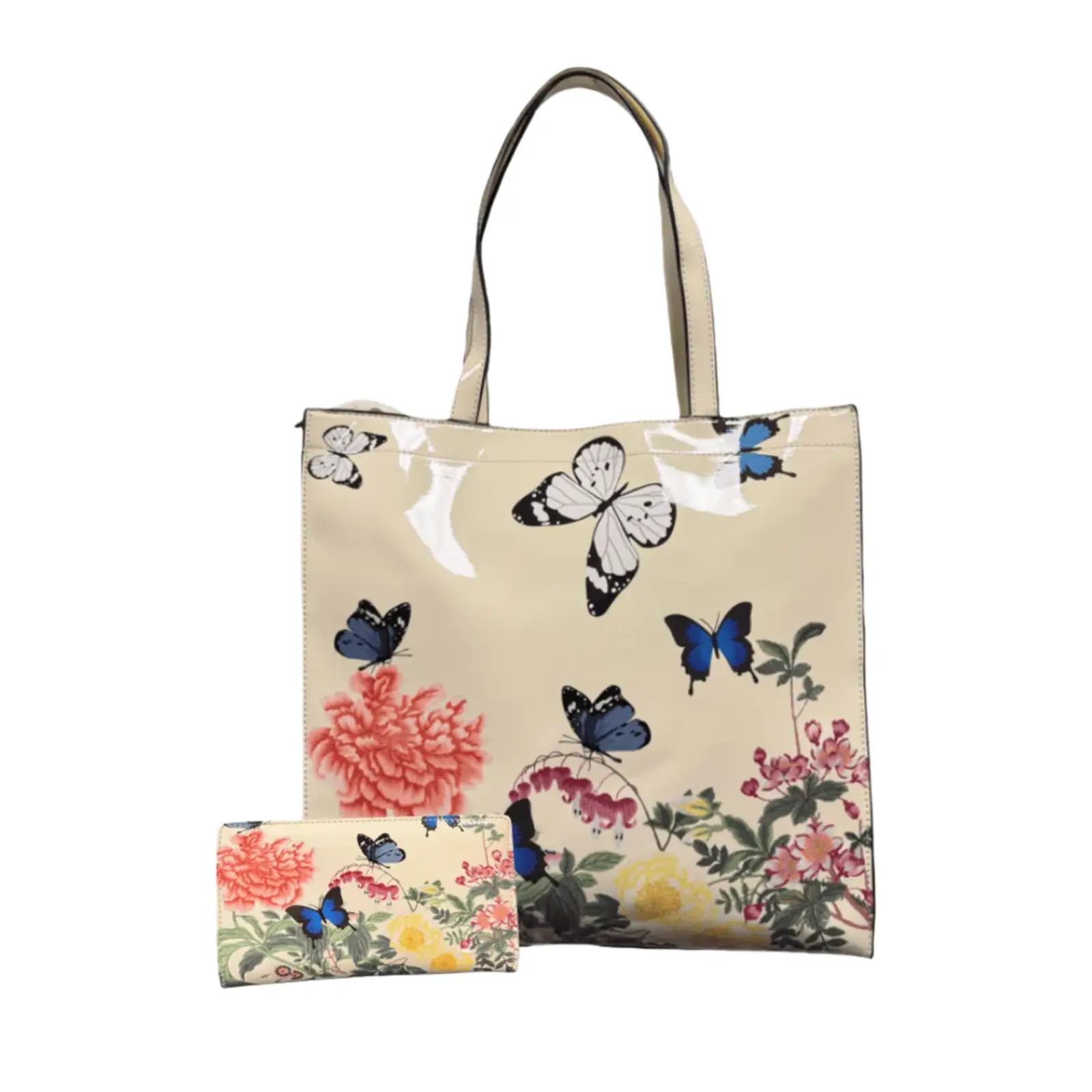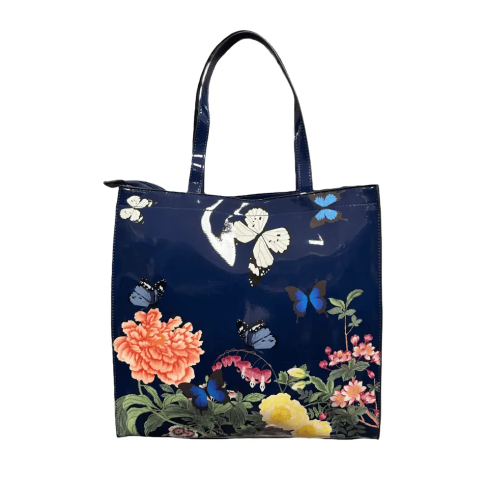 This tote bag features an elegant butterfly and floral print design, combining aesthetic appeal with practical functionality. It easily accommodates your daily essentials. Crafted from premium, durable fabric, it is suitable for various occasions such as commuting, shopping, and casual outings, adding a touch of lively charm to any outfit. L x H x W = 34cm x 34cm x 9cm.