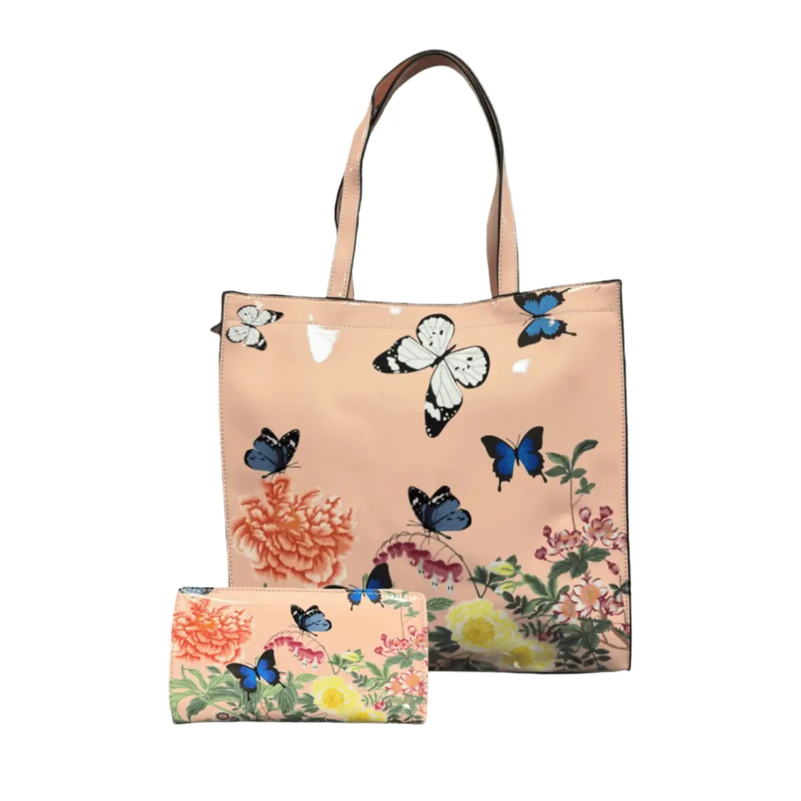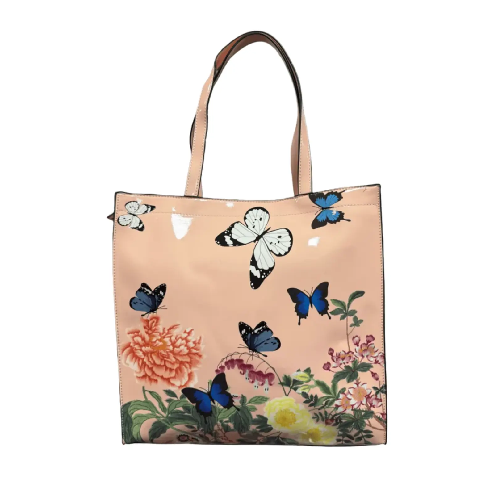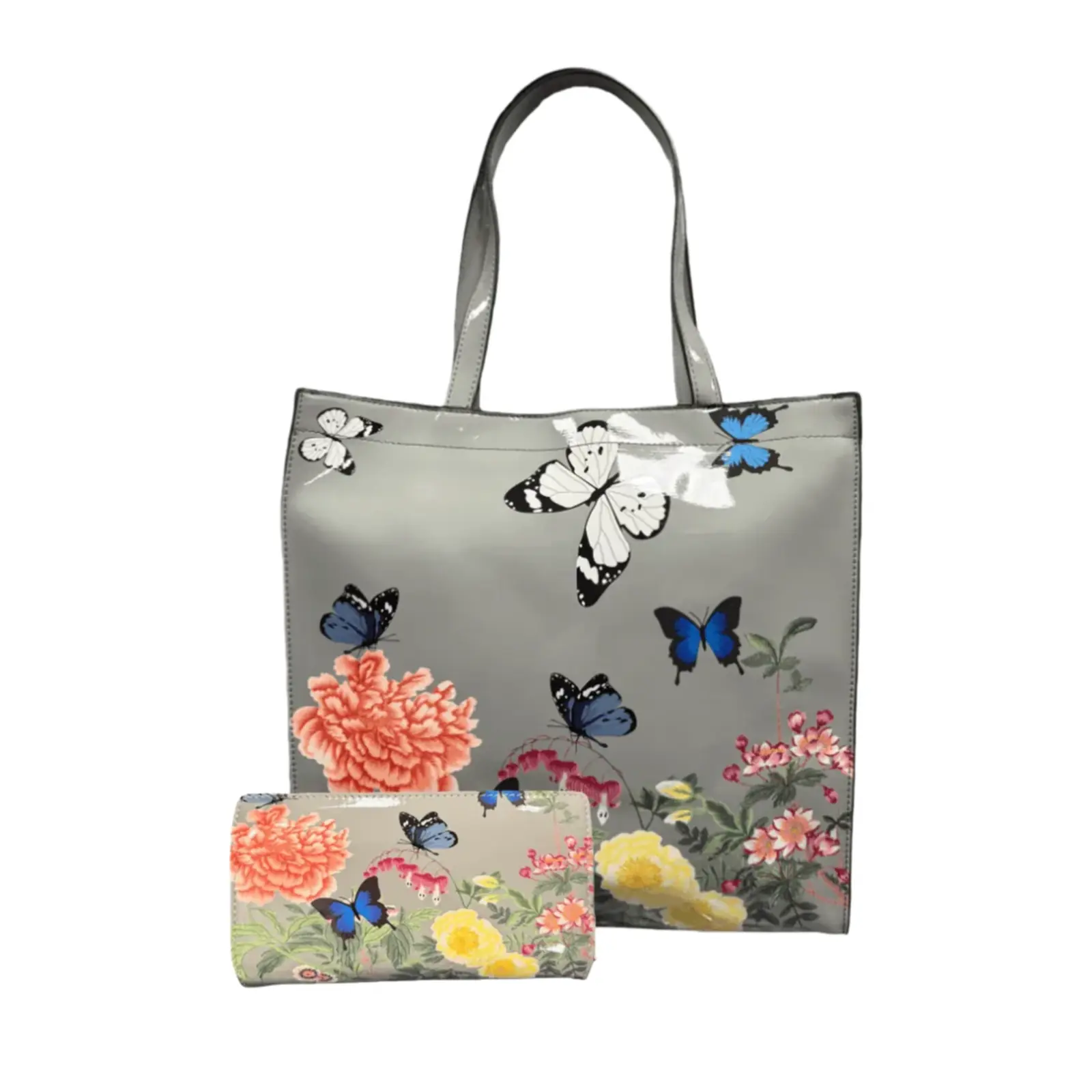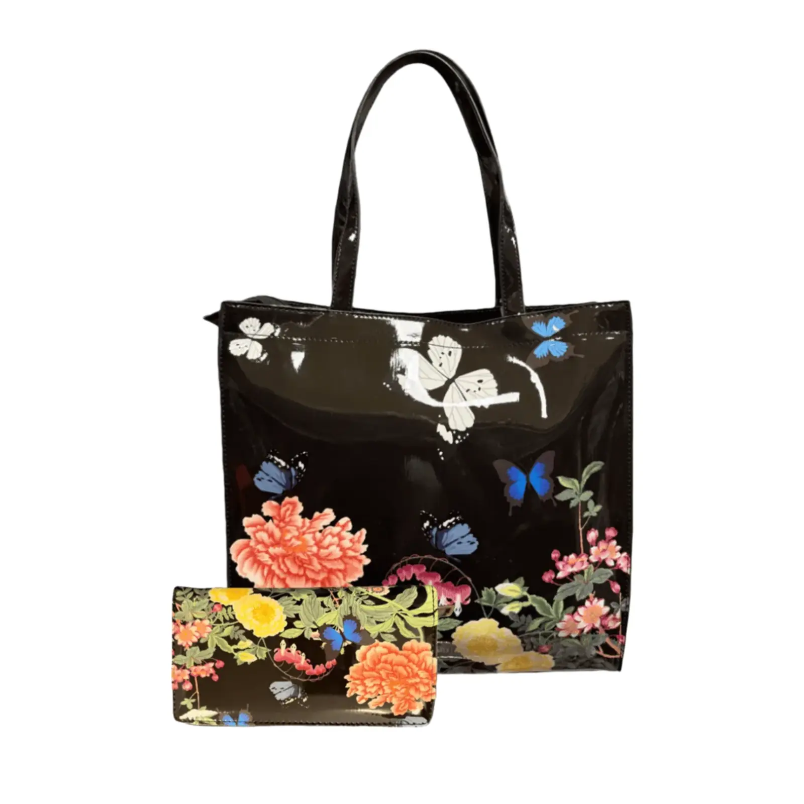 This tote bag features an elegant butterfly and floral print design, combining aesthetic appeal with practical functionality. It easily accommodates your daily essentials. Crafted from premium, durable fabric, it is suitable for various occasions such as commuting, shopping, and casual outings, adding a touch of lively charm to any outfit. L x H x W = 34cm x 34cm x 9cm.