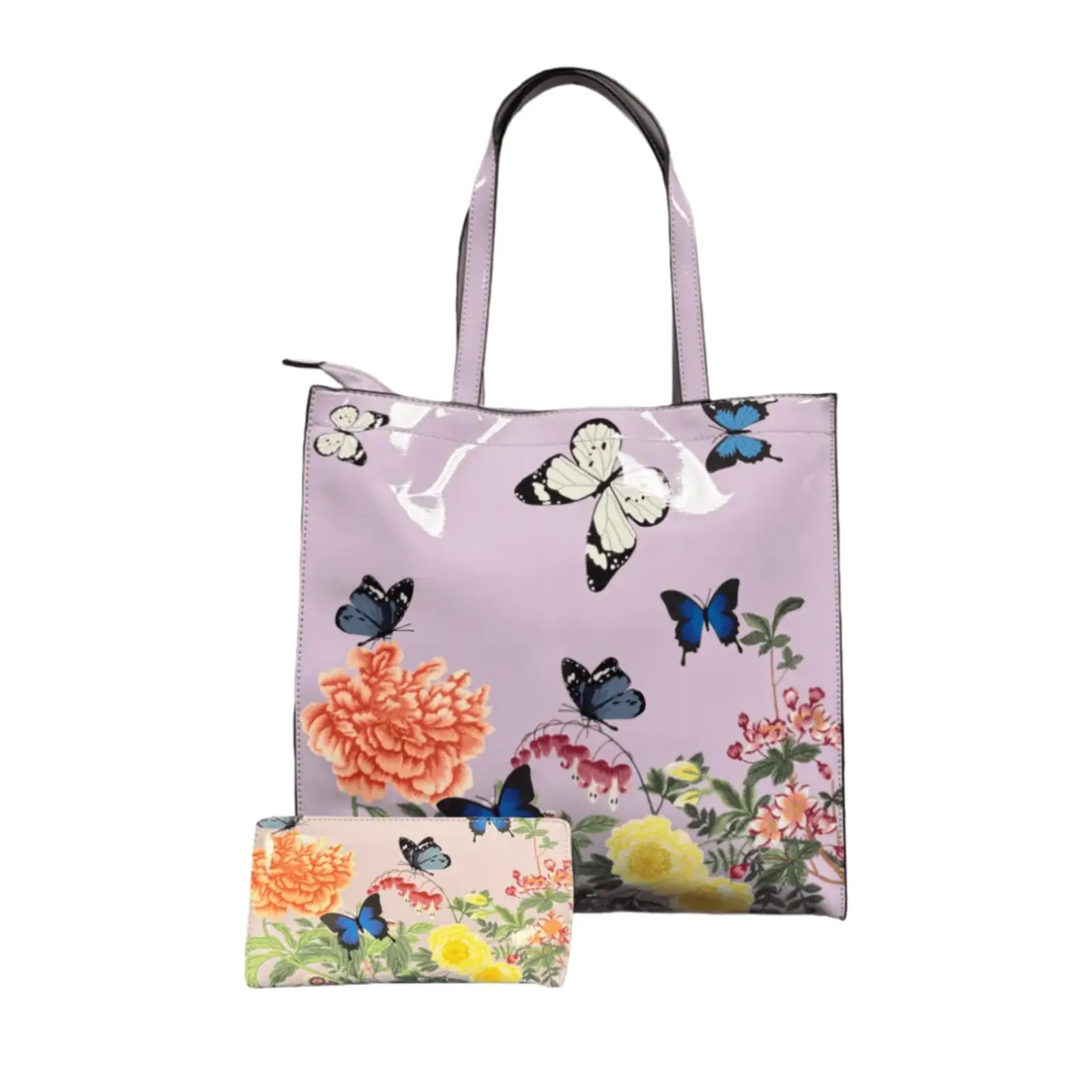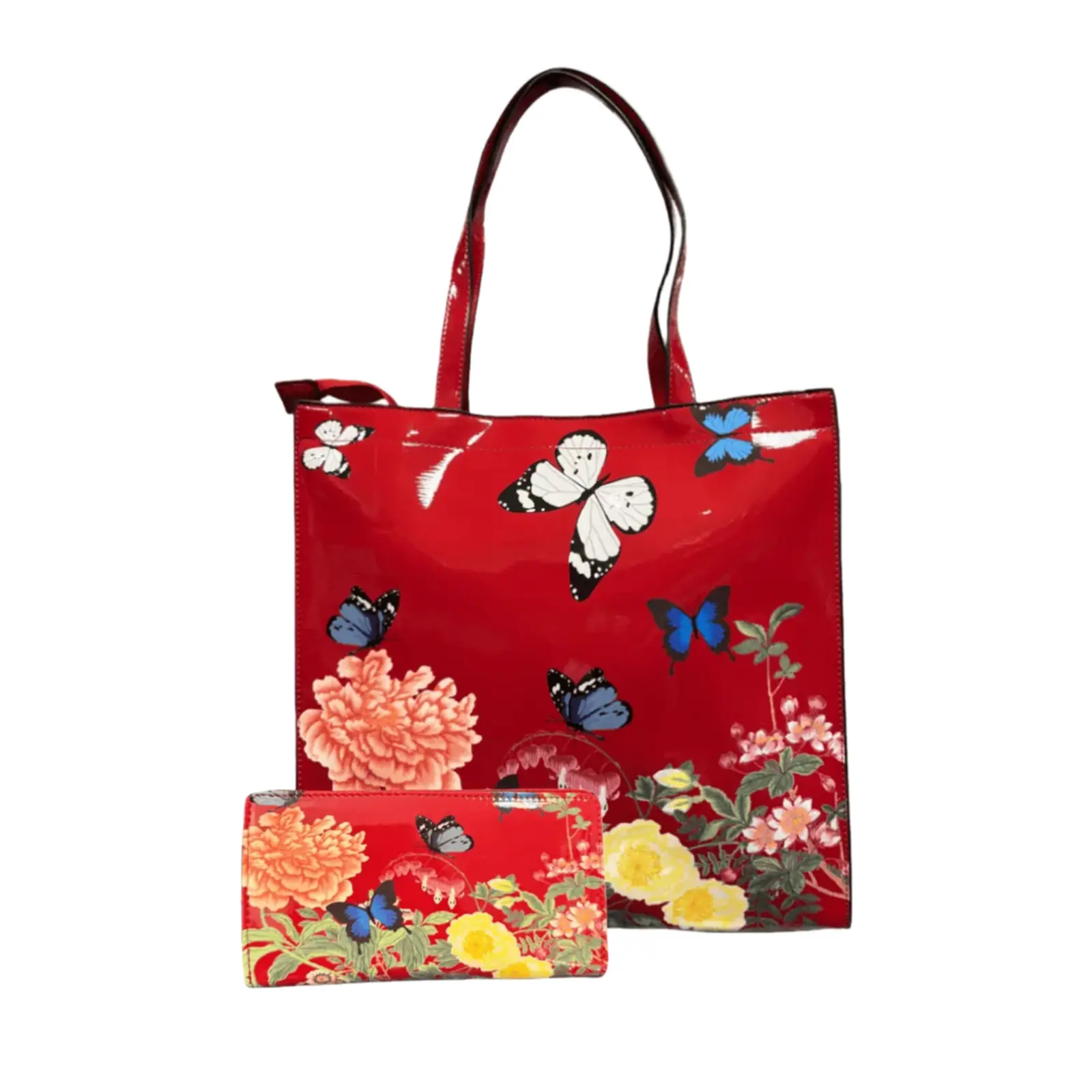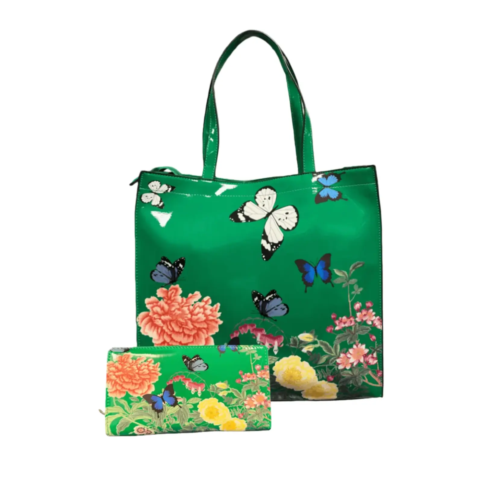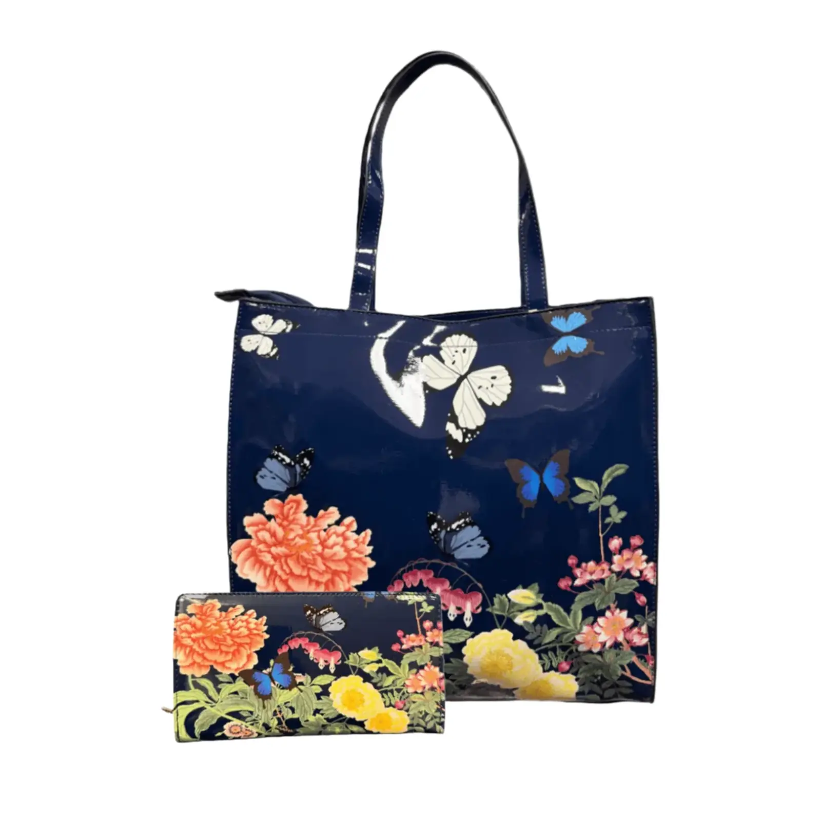 This tote bag features an elegant butterfly and floral print design, combining aesthetic appeal with practical functionality. It easily accommodates your daily essentials. Crafted from premium, durable fabric, it is suitable for various occasions such as commuting, shopping, and casual outings, adding a touch of lively charm to any outfit. L x H x W = 34cm x 34cm x 9cm.