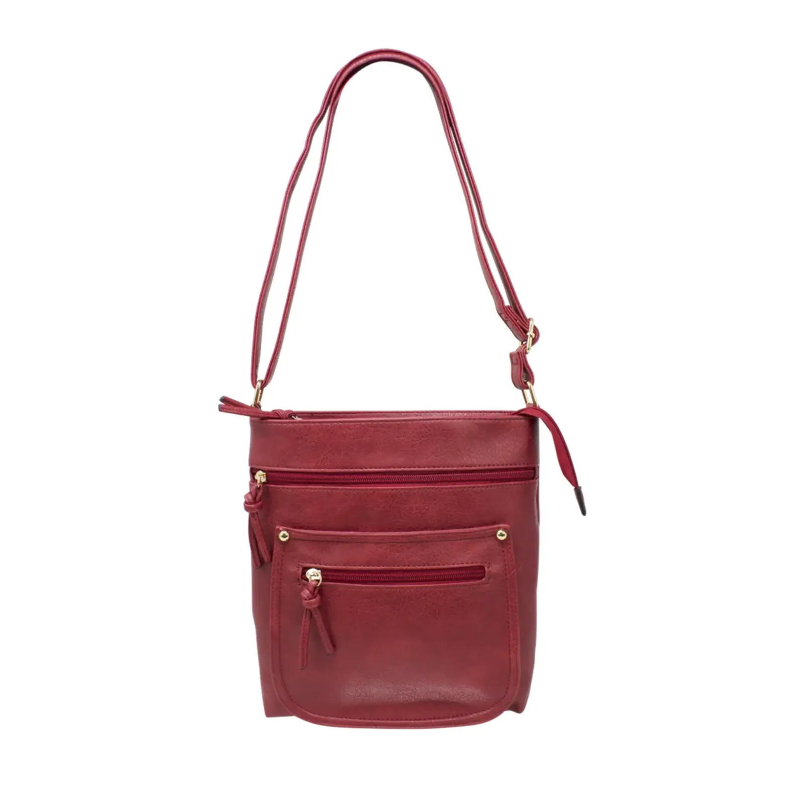 This crossbody bag features double zipped pocket at the front and a zipped pocket at the back. The knot styled zipper end is stylish and practical for using.
