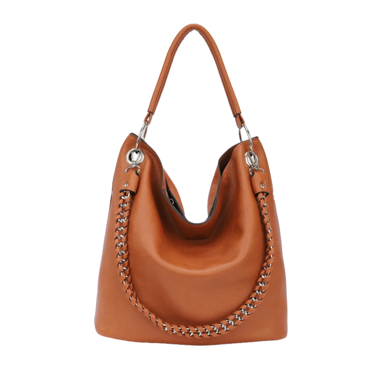 This bucket bag blends trendy design with practical compartmentalization, making it perfect for diverse daily styles: It features a relaxed bucket silhouette, accented with side metal chain trim—minimalist yet sophisticated and stylish. The leather shoulder strap is soft and comfortable, ensuring strain-free carrying. It comes with a removable inner pouch, creating a dual-compartment setup (main bag + inner pouch) to organize items like phones, wallets, and cosmetics neatly, no more clutter. Mai.
