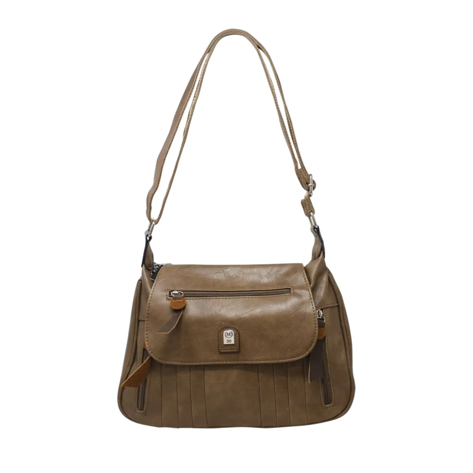 Here’s a versatile crossbody bag featuring three zip pockets on the front. Its classic design makes it a great match for any casual outfit. The spacious interior provides enough room to store all your daily essentials. This bag is perfect for a night out or a laid-back day off.
