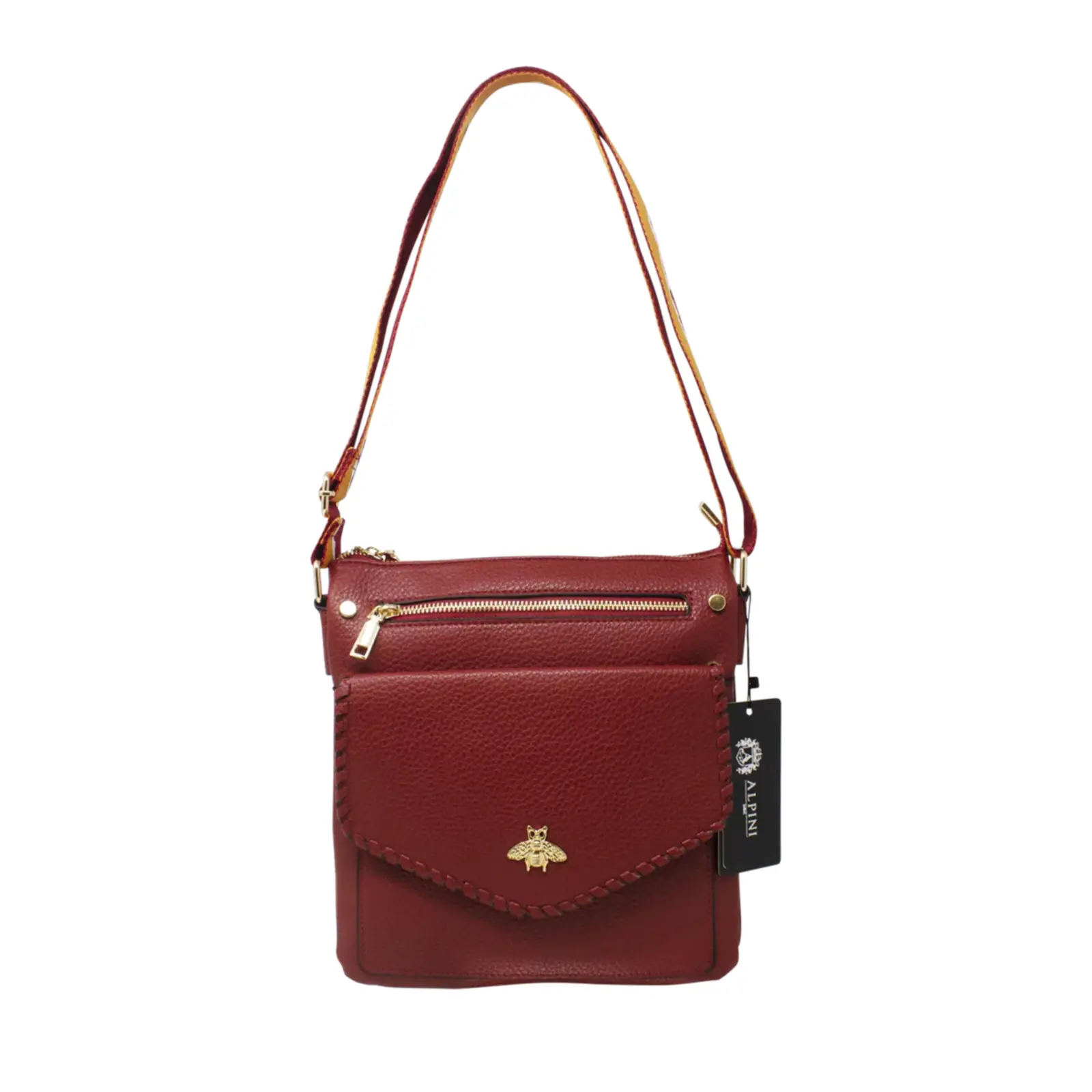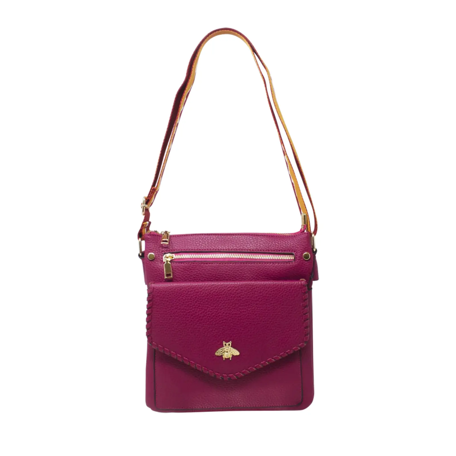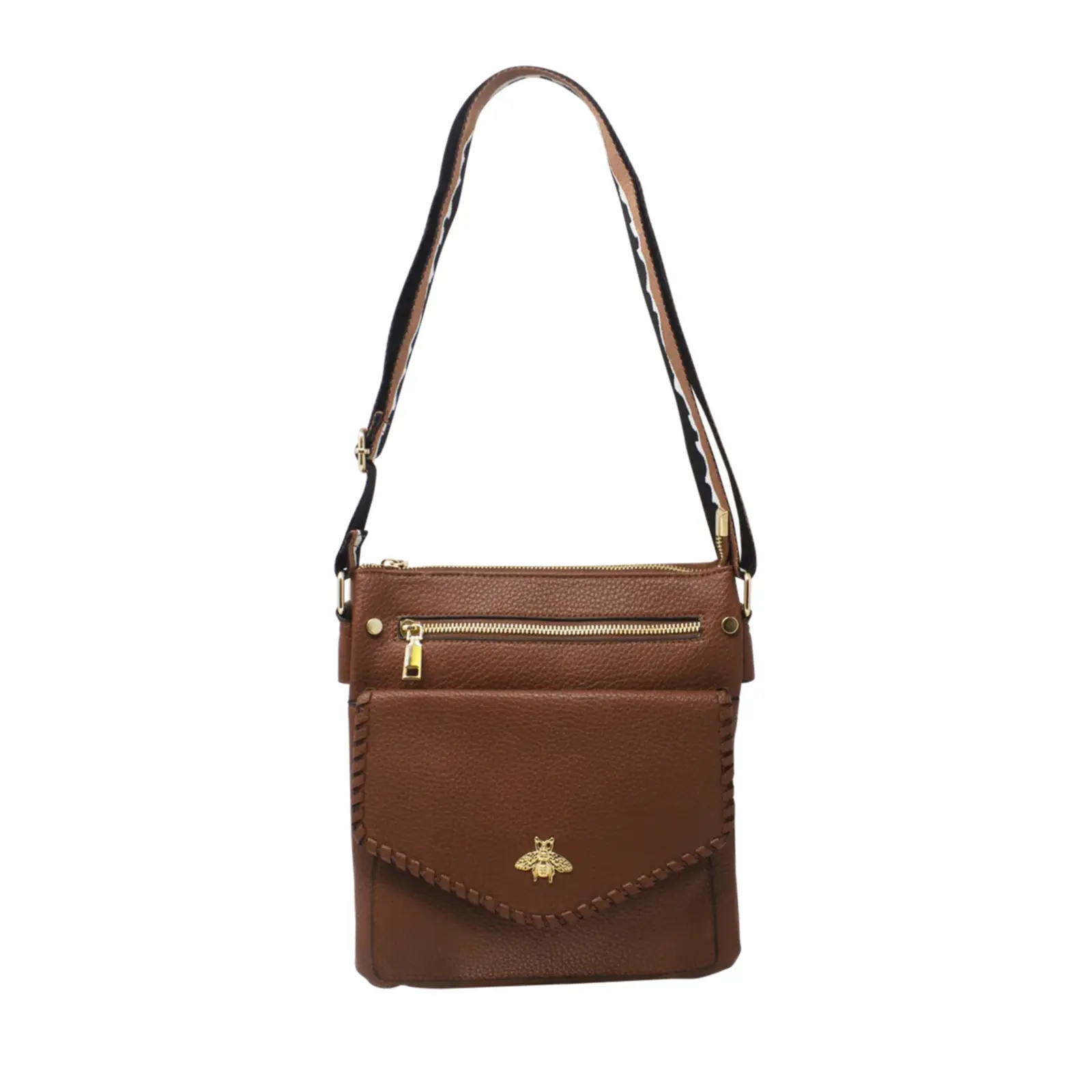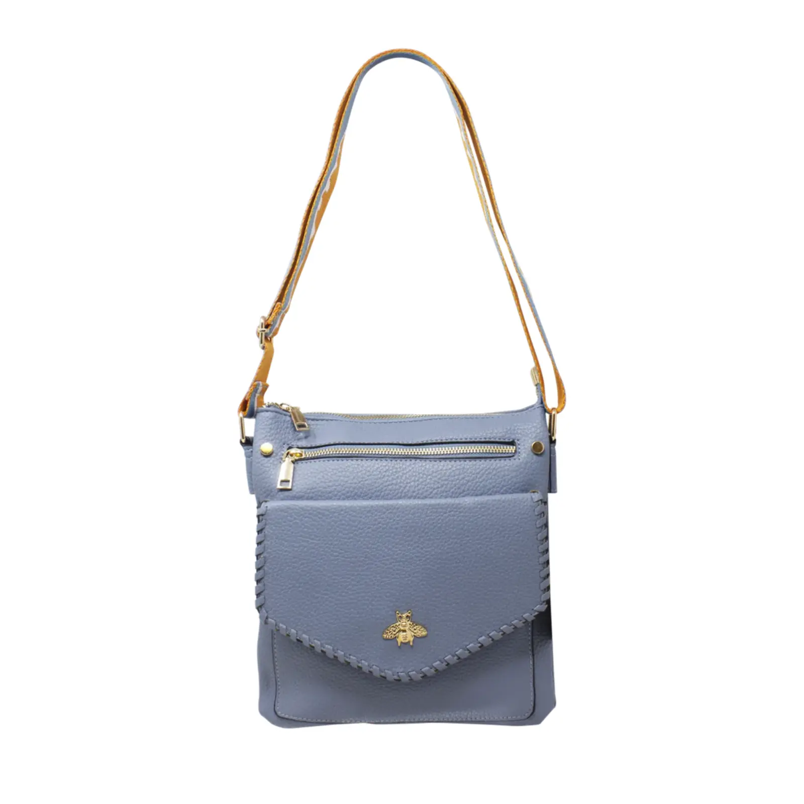 Crossbody Bag with Golden Bee & Colourful Strap