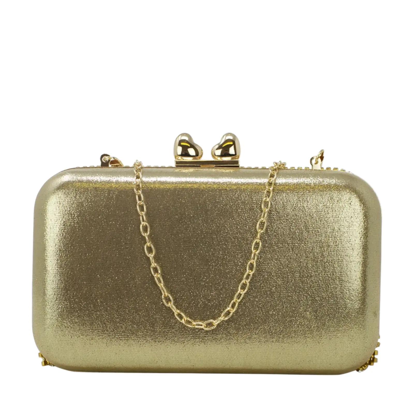 This stunning evening clutch features layered diamante at the front with tassels form by diamante underneath. Carry it on your hand or wear it with the detachable metal chain as a crossbody would definitely shine you up.