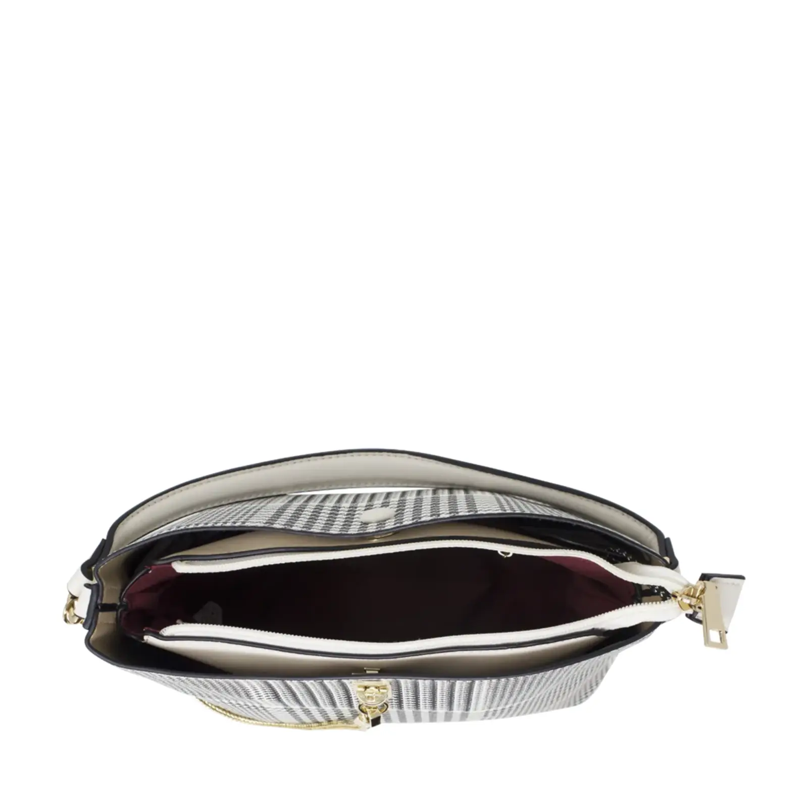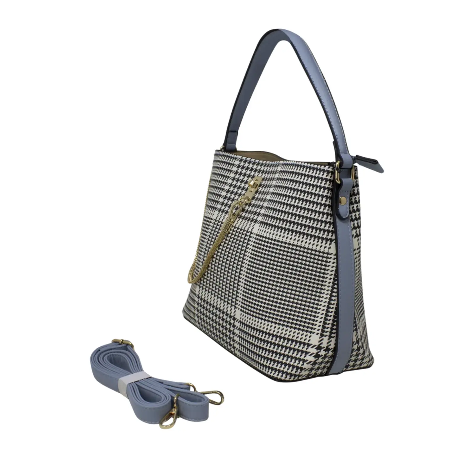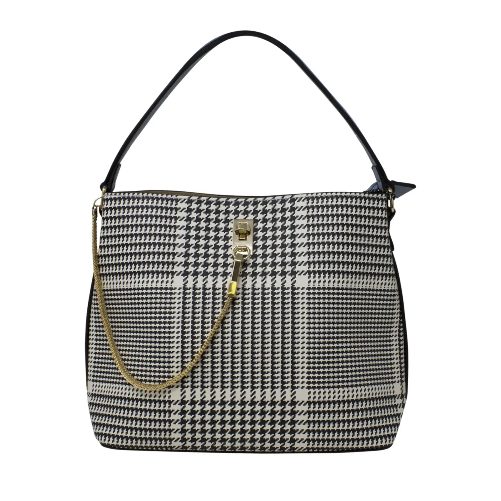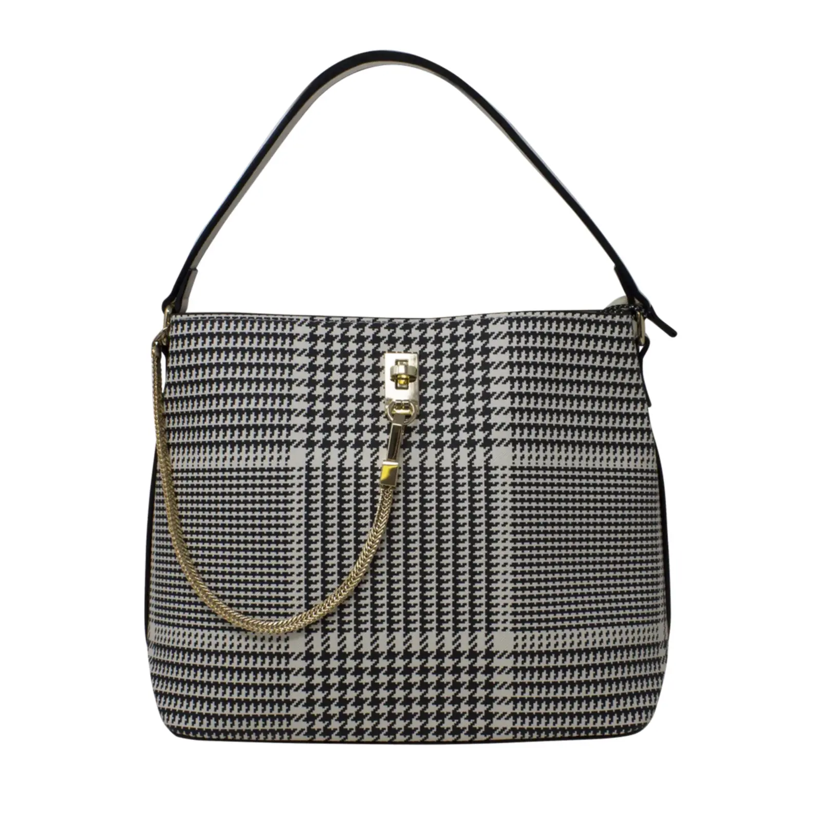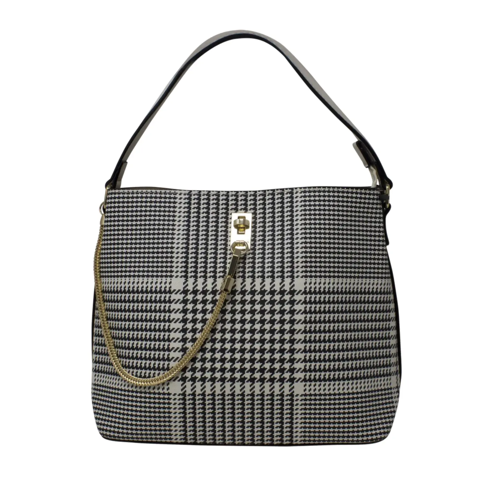 Dogtooth Patterned Chain Lock Handbag
