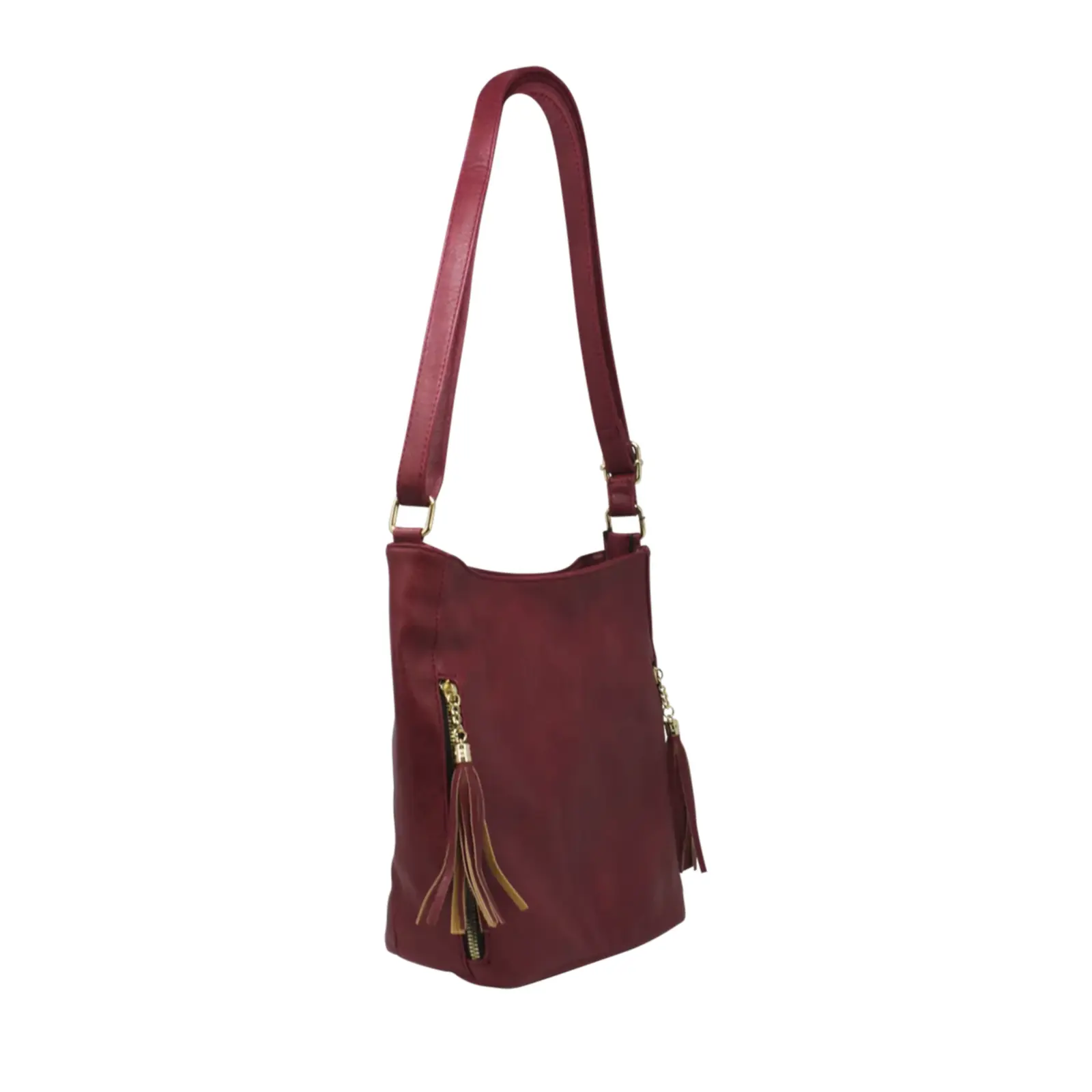 This stylish crossbody bag features 2 tassels, and a perfect storage space for your daily needs.