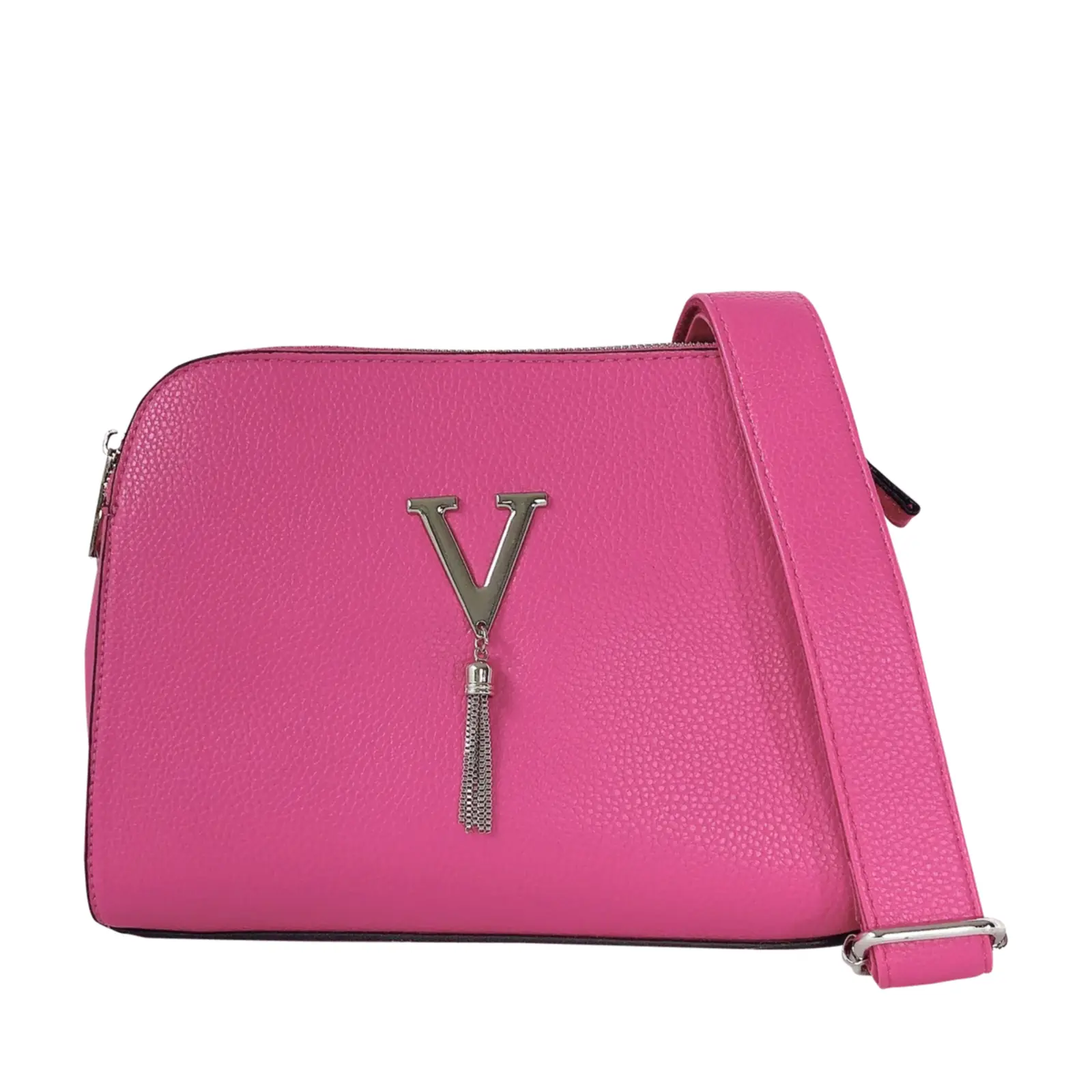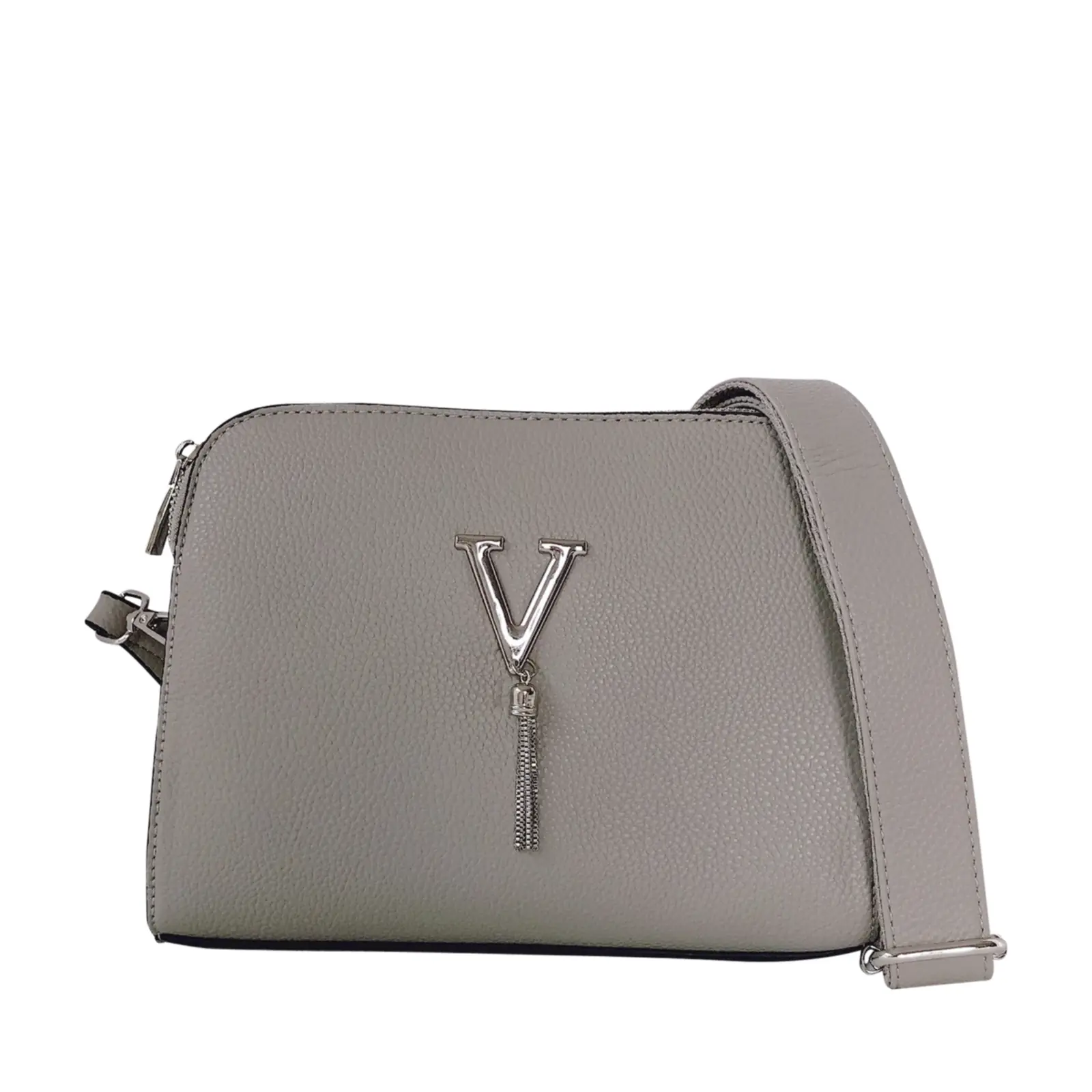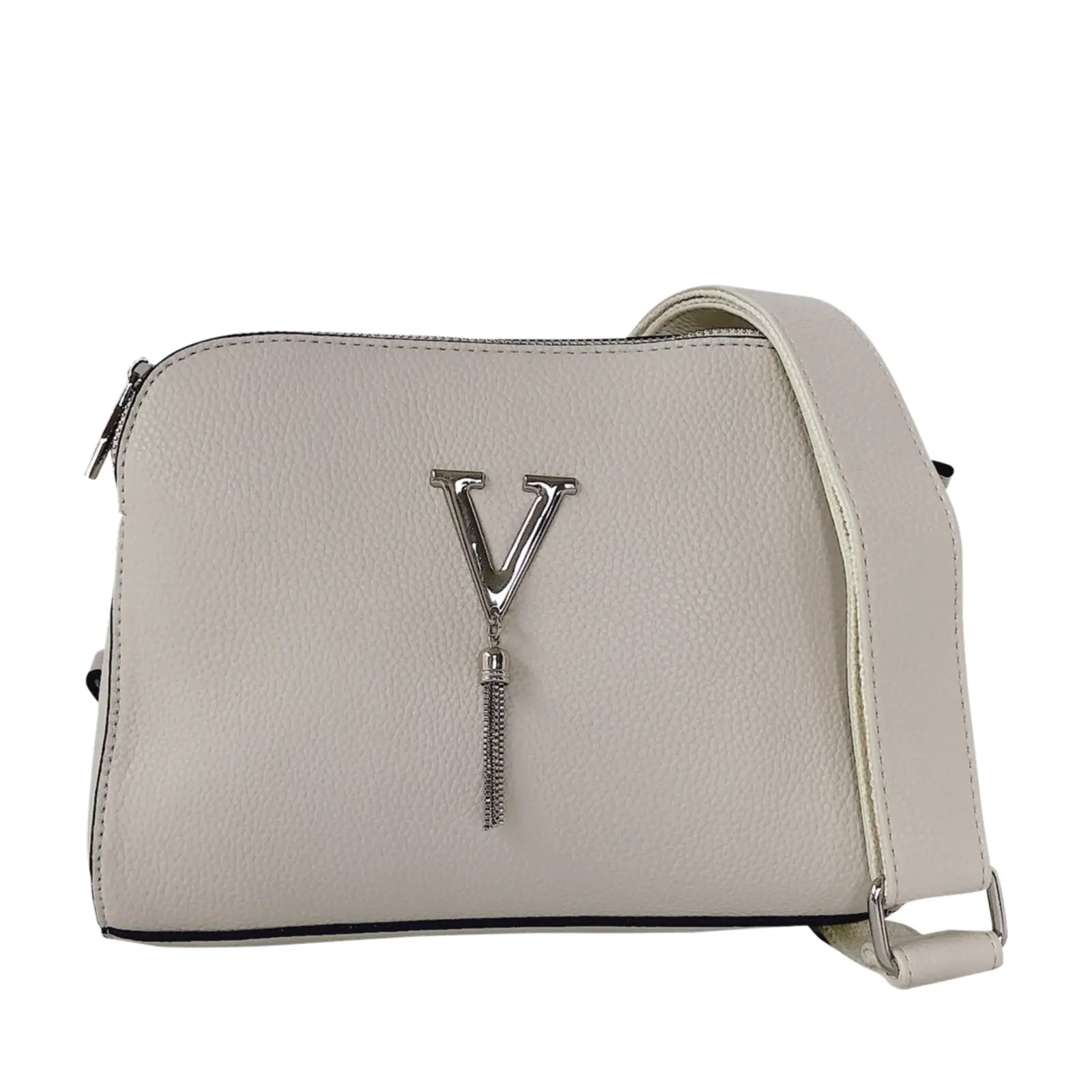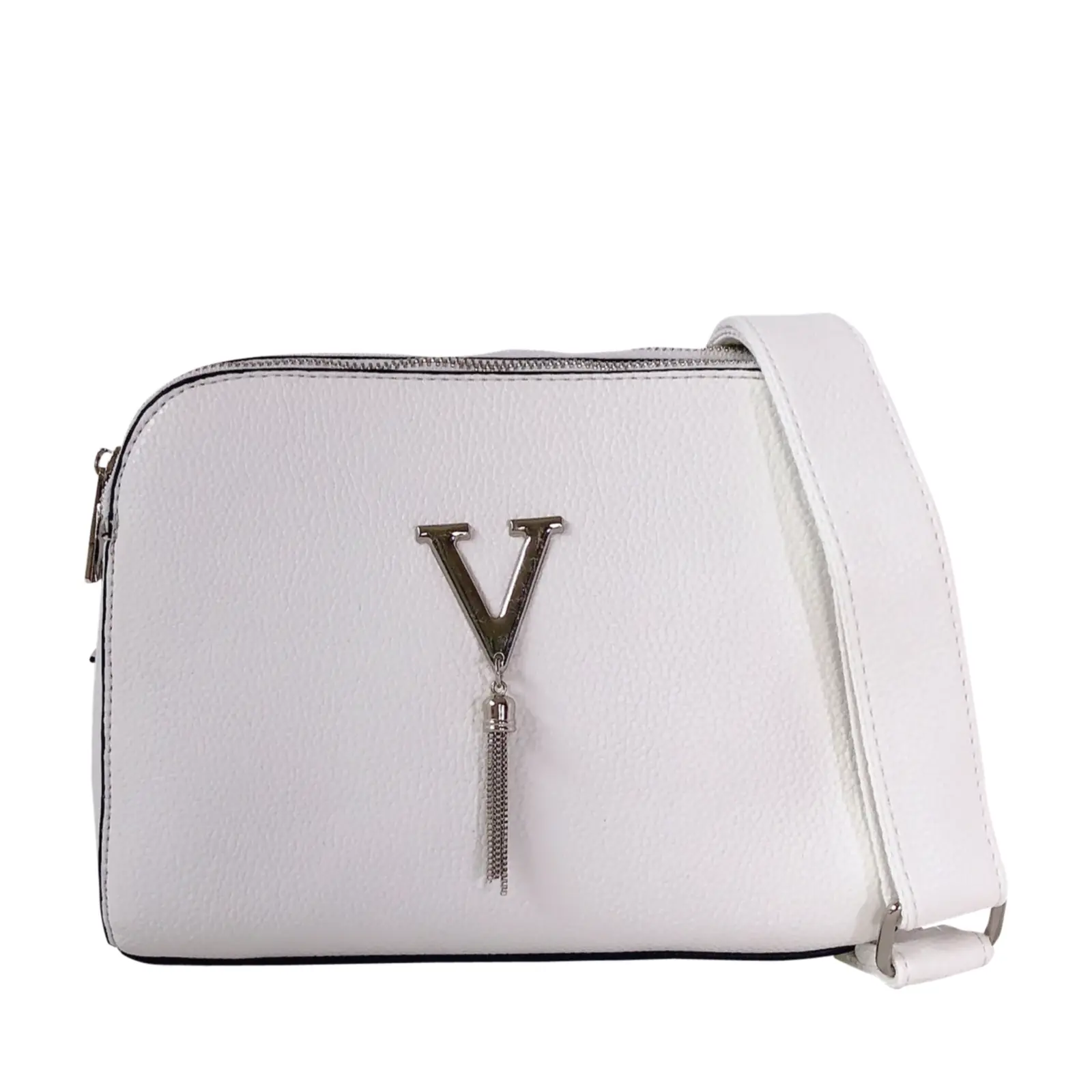 Chic, functional, and irresistibly stylish — the duo-compartment crossbody bag is your new everyday essential. This sleek piece features a striking metal V emblem and a signature hanging metal tassel that adds a luxurious finishing touch. Designed with two zipped compartments, it keeps your essentials organized without compromising on style.