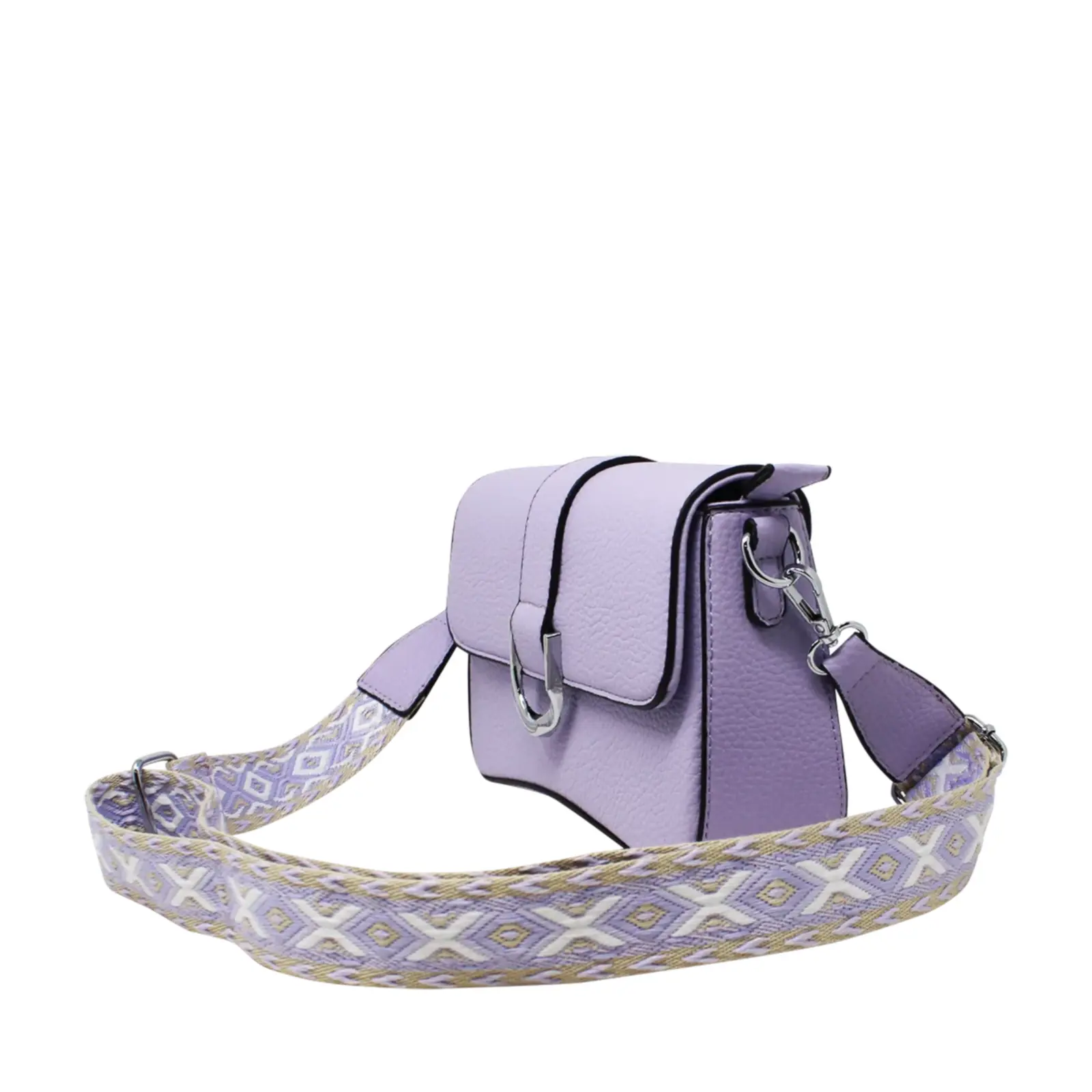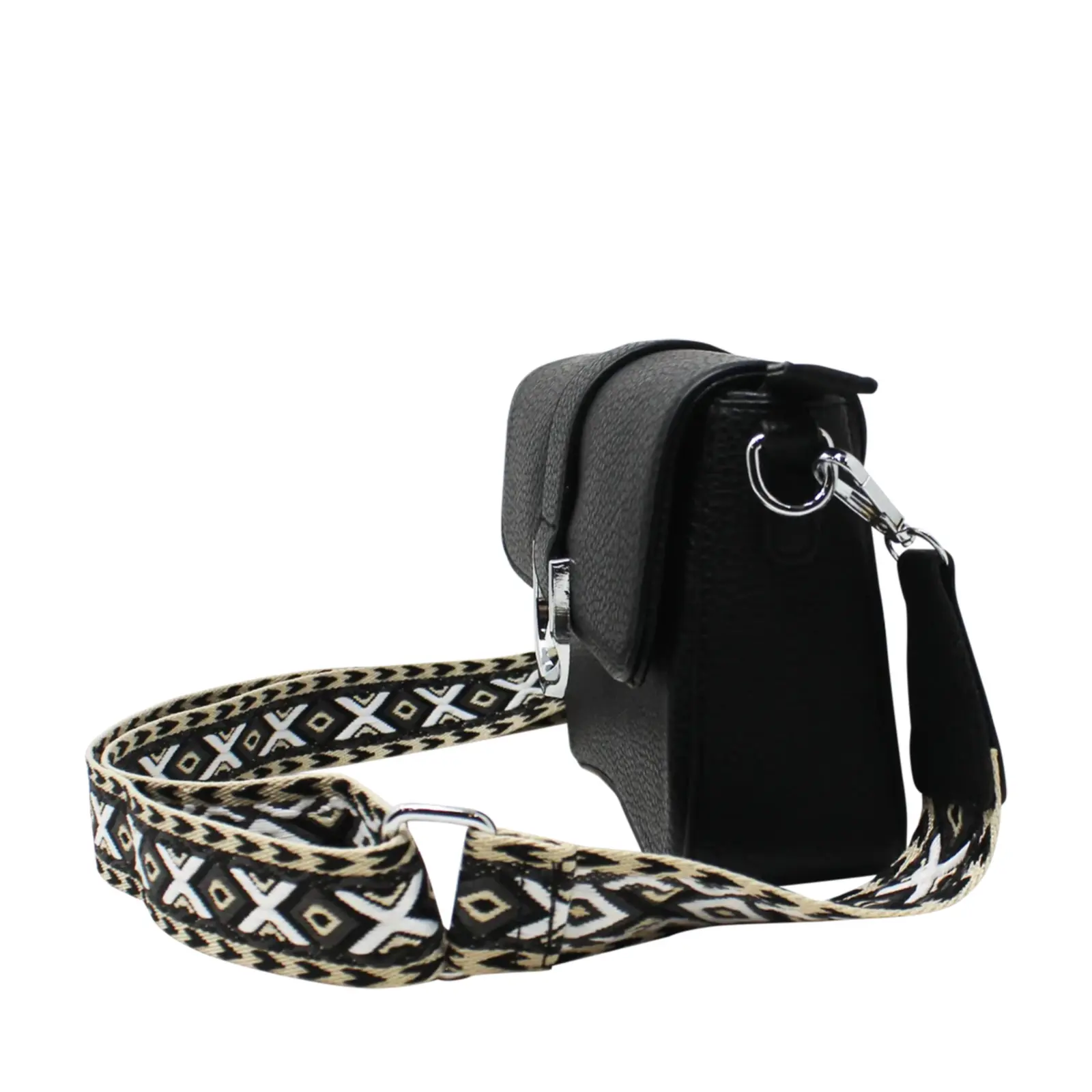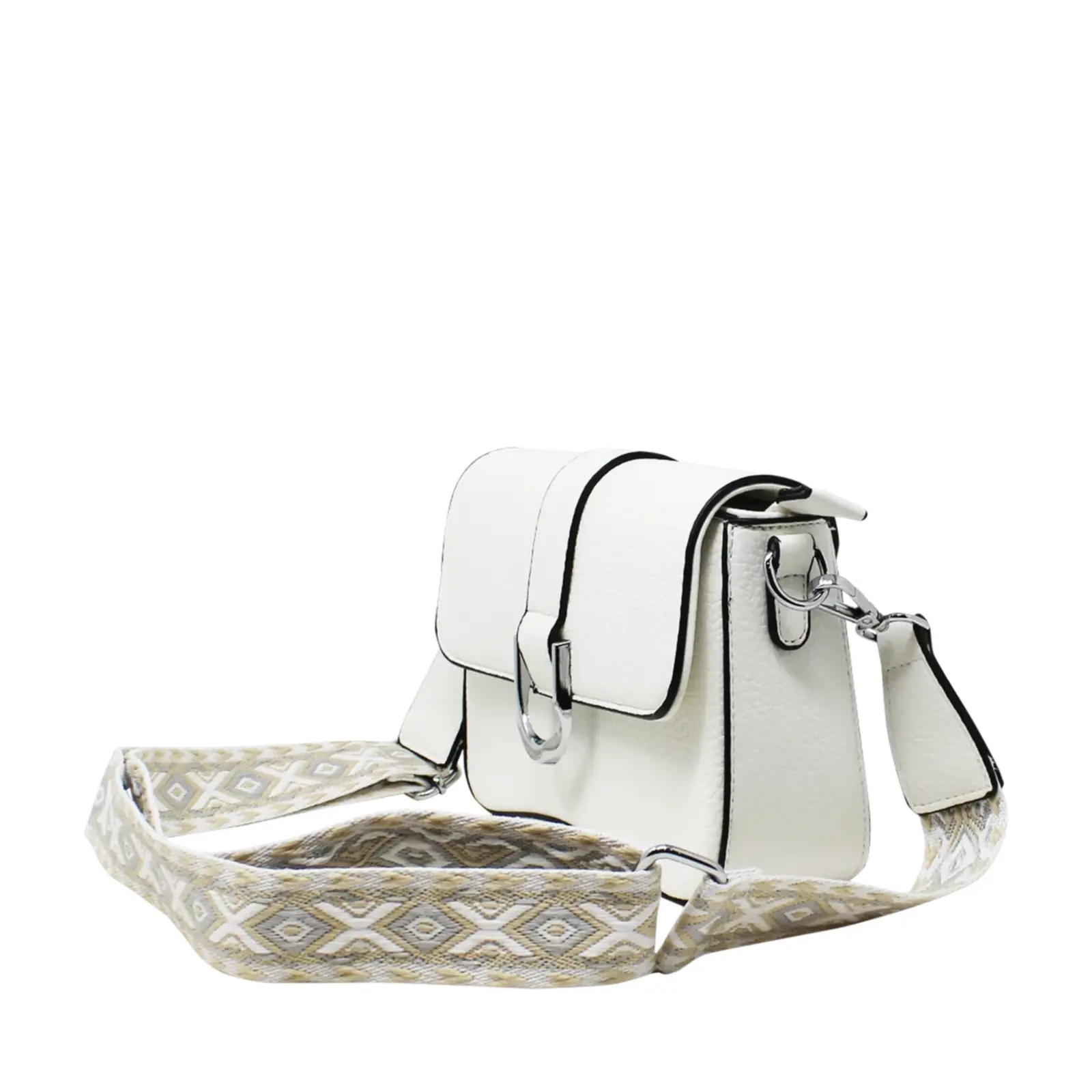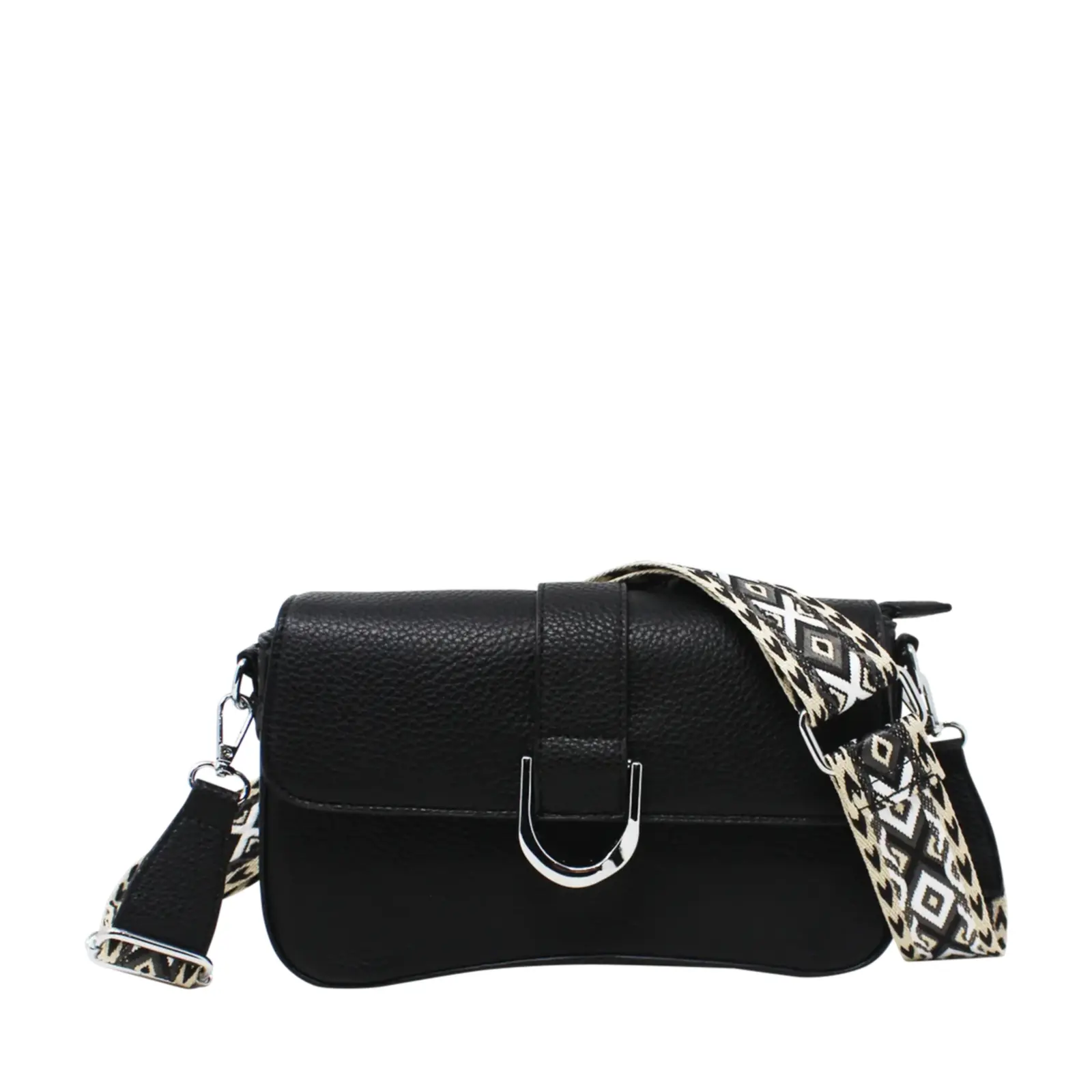 Flap-Over Crossbody with Rhombus Pattern Strap