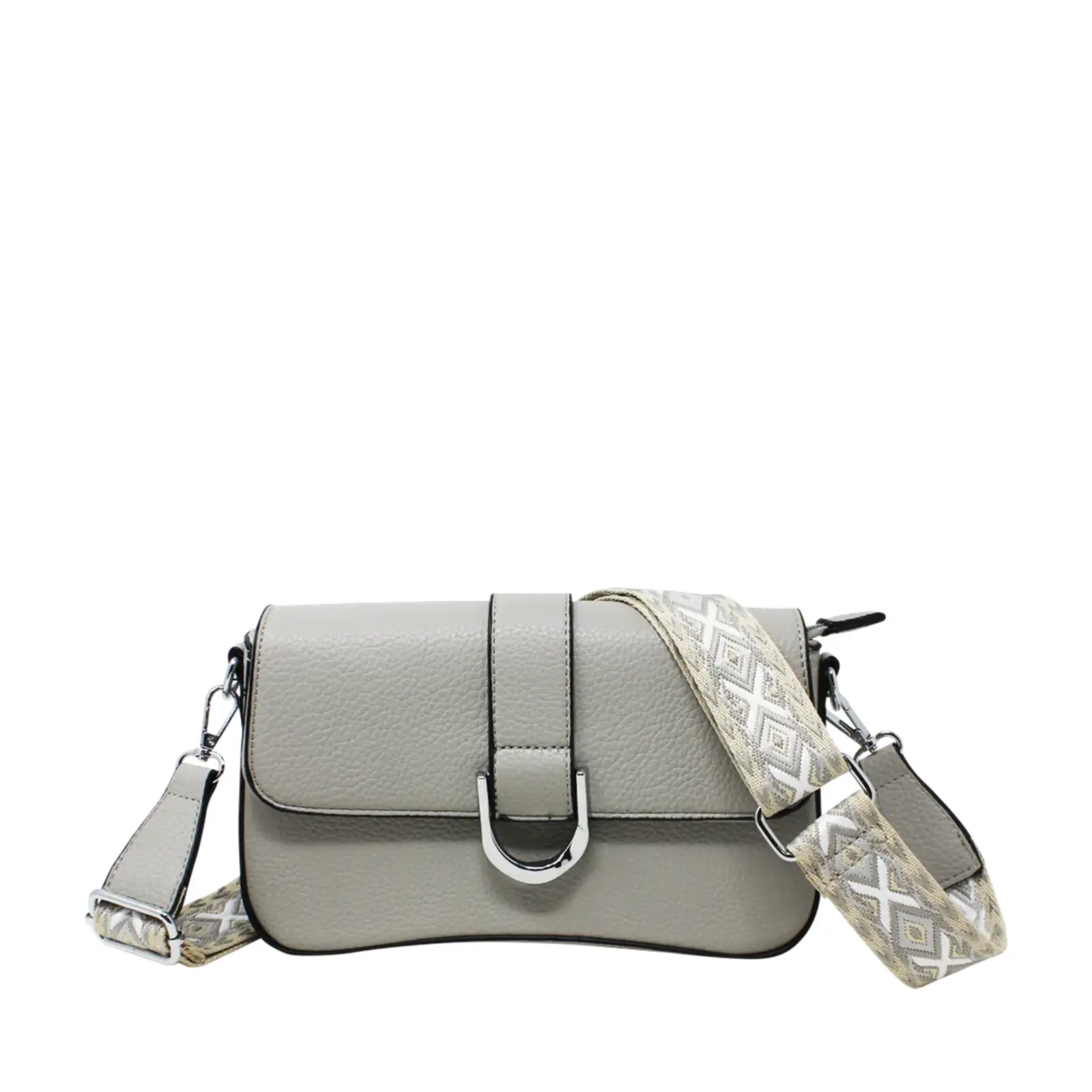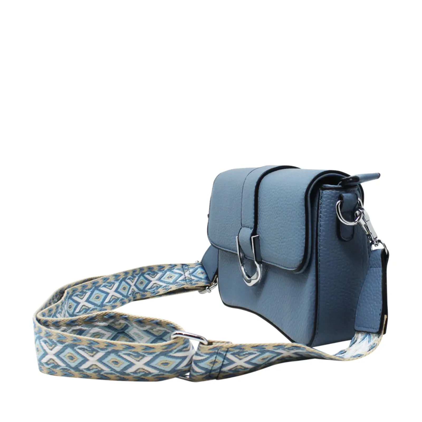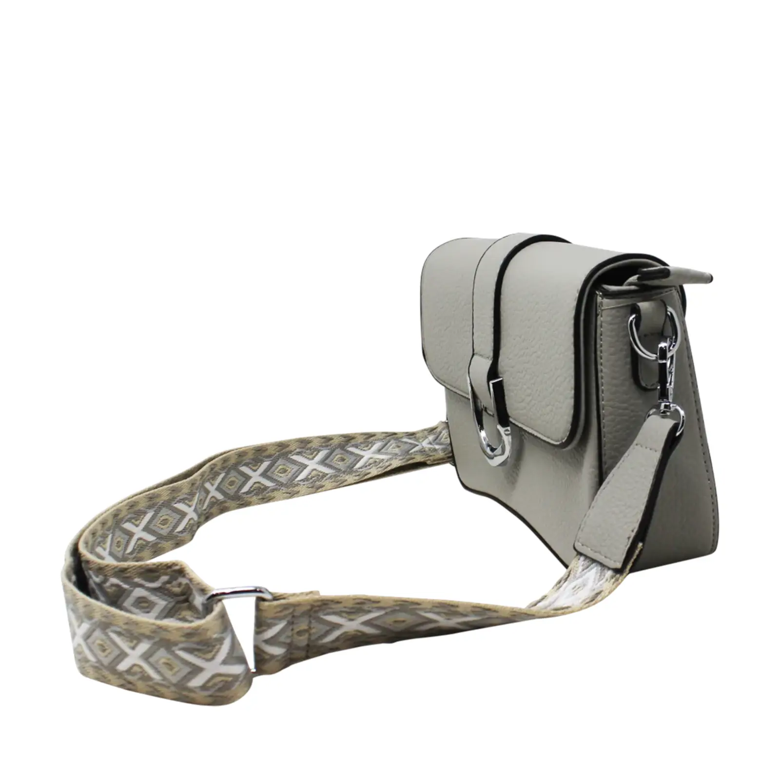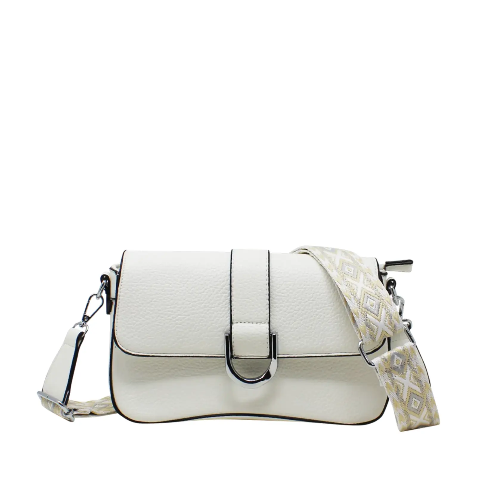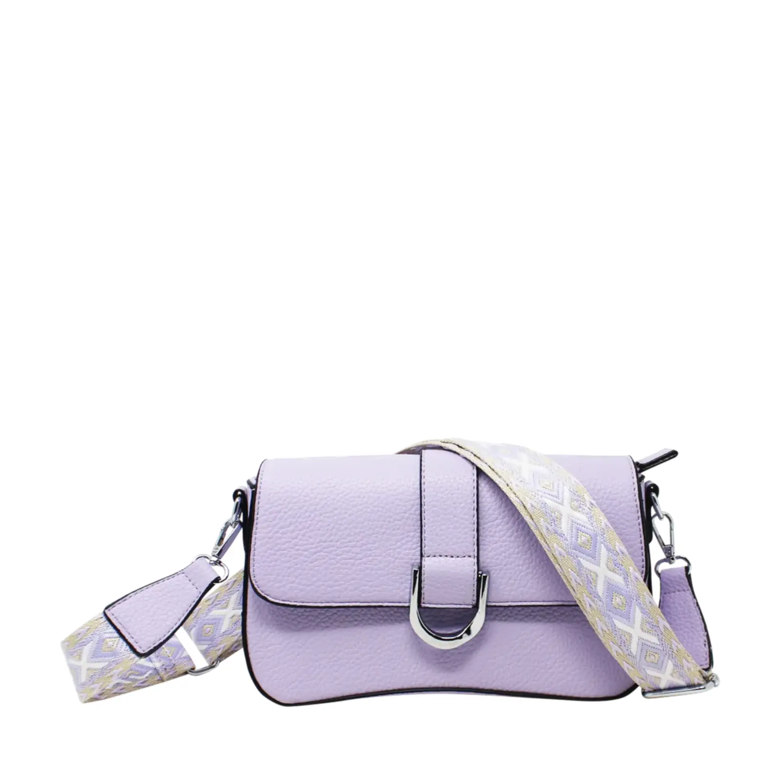 Flap-Over Crossbody with Rhombus Pattern Strap