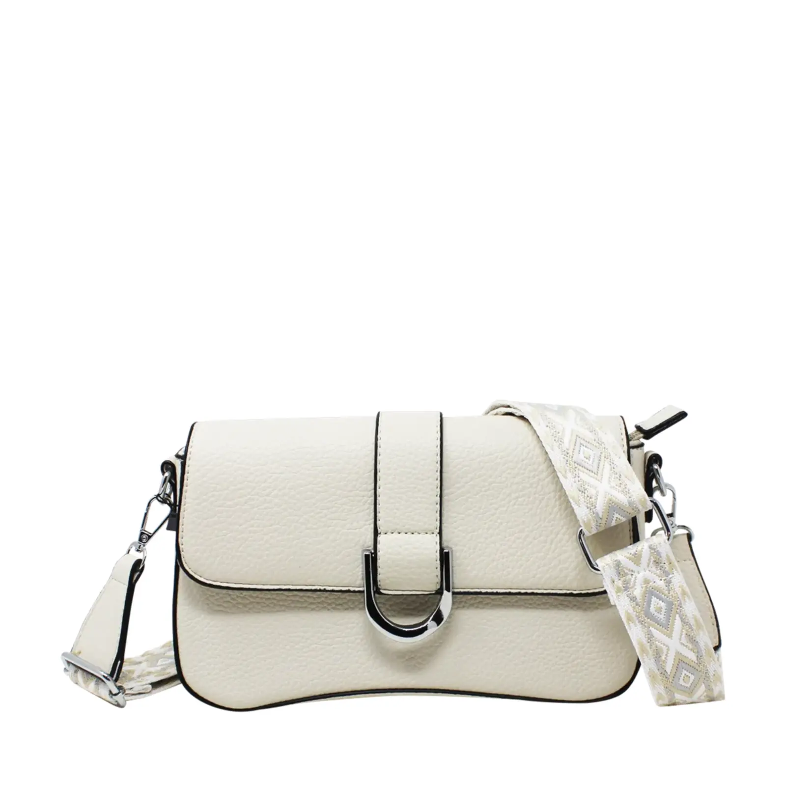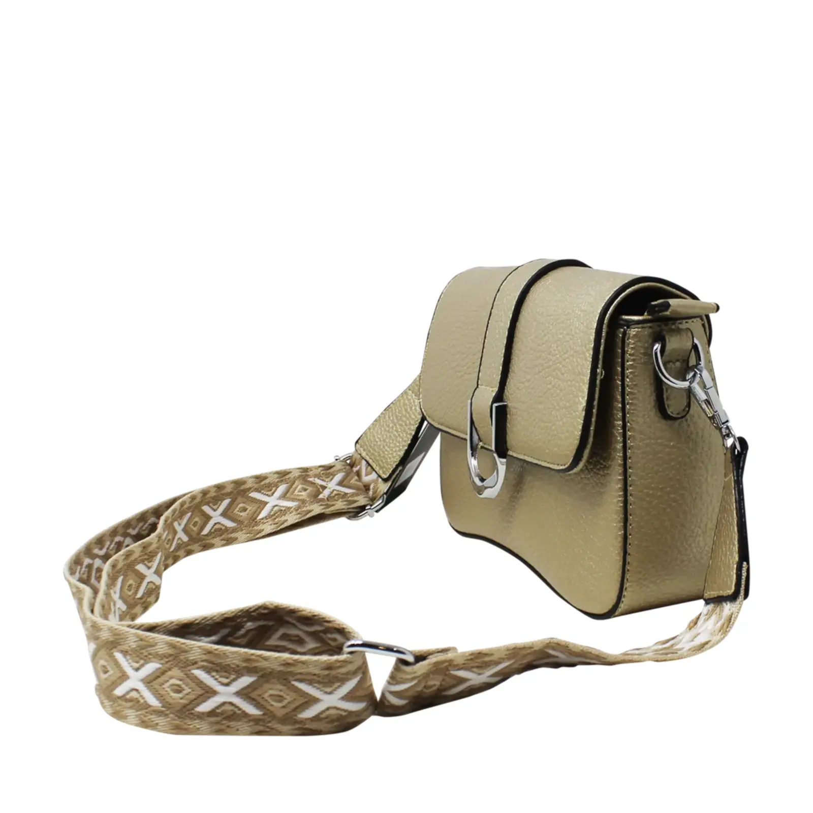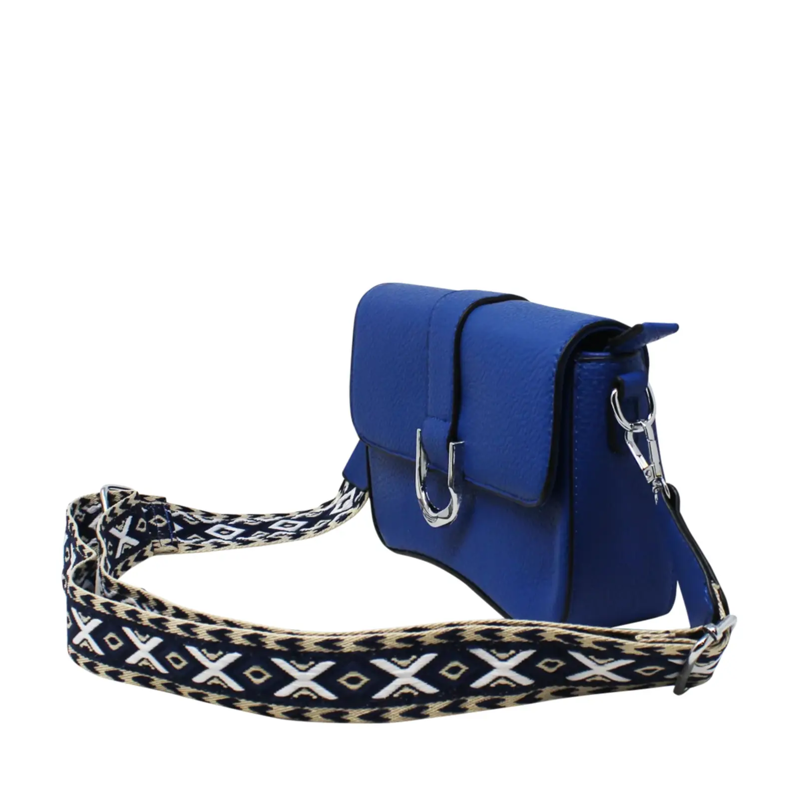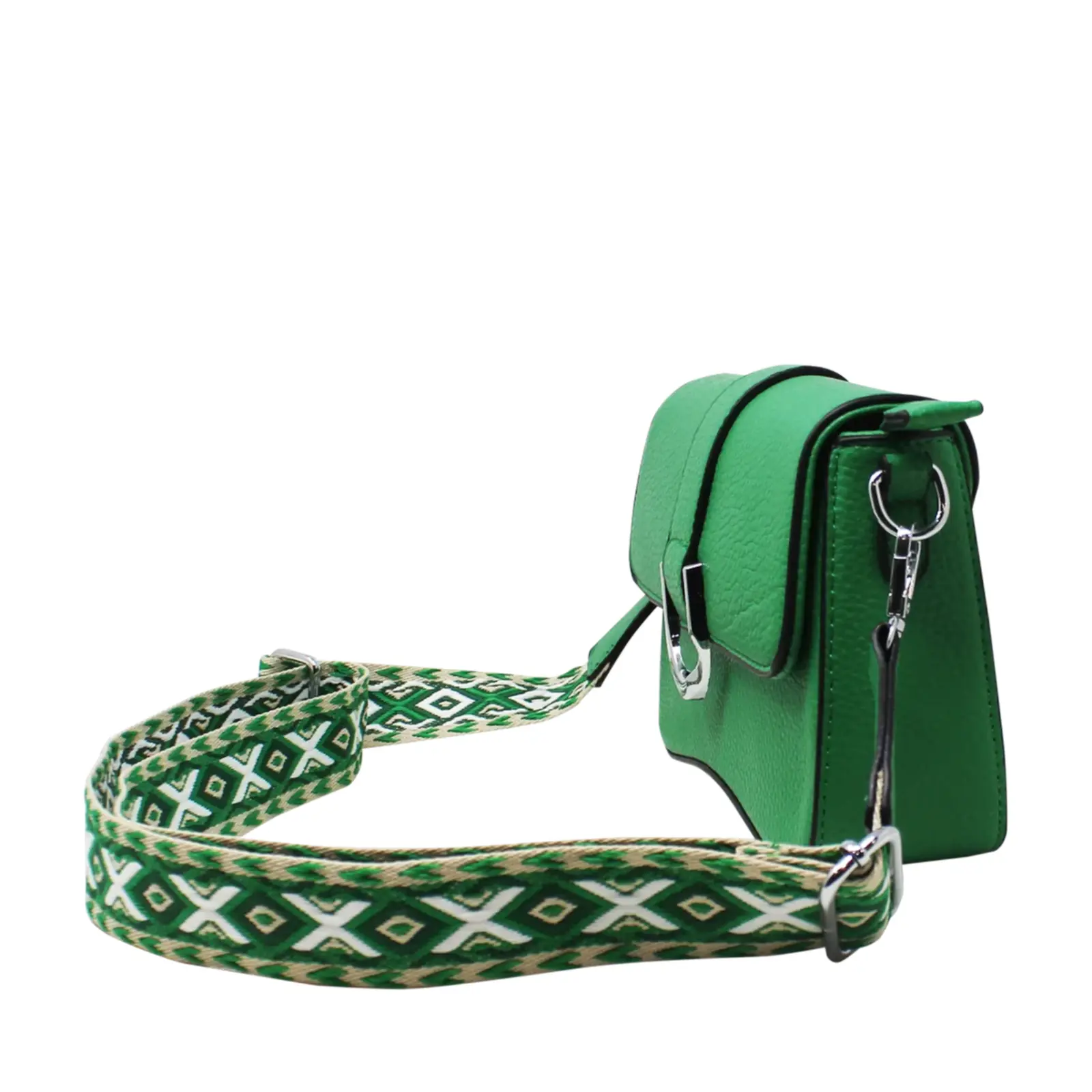 Flap-Over Crossbody with Rhombus Pattern Strap