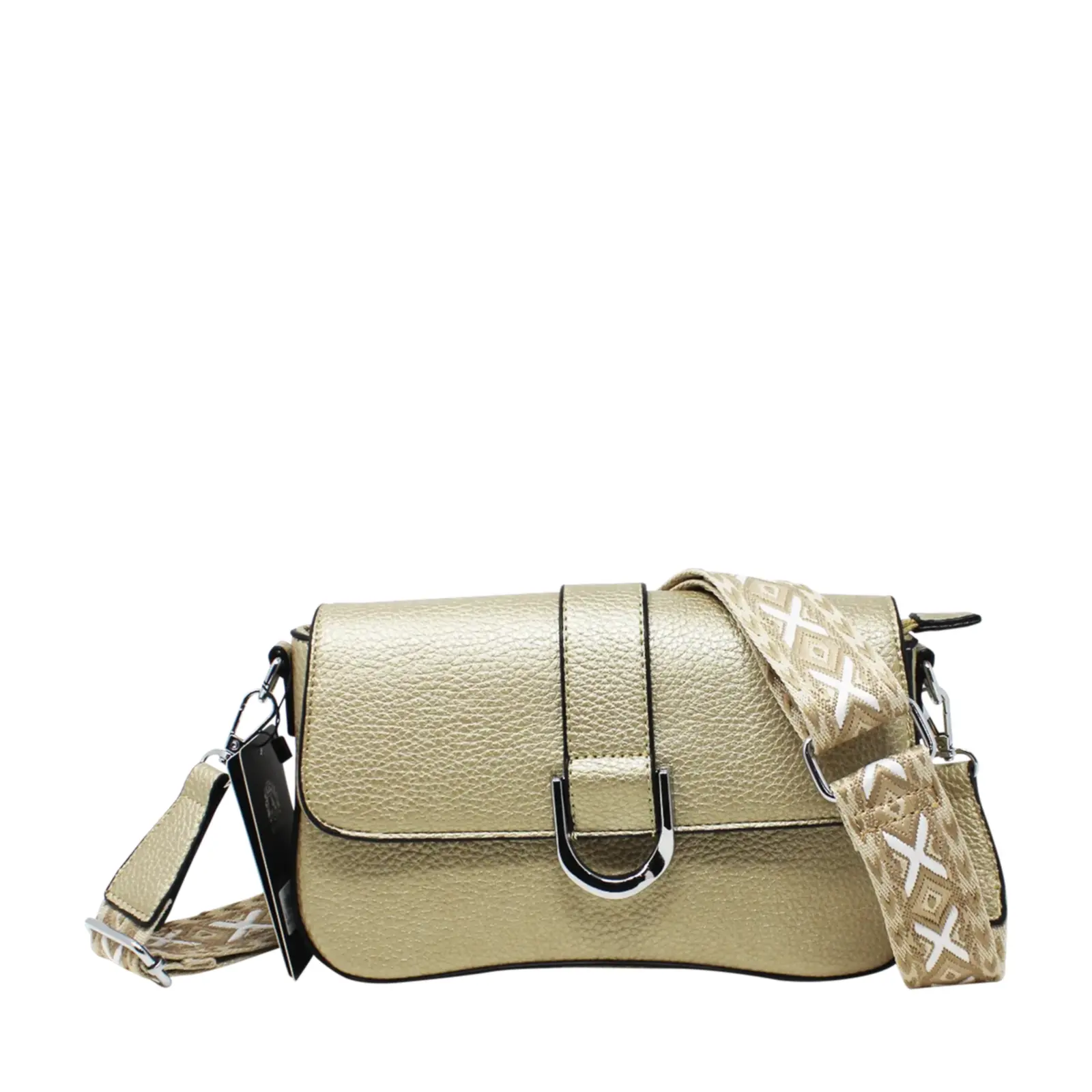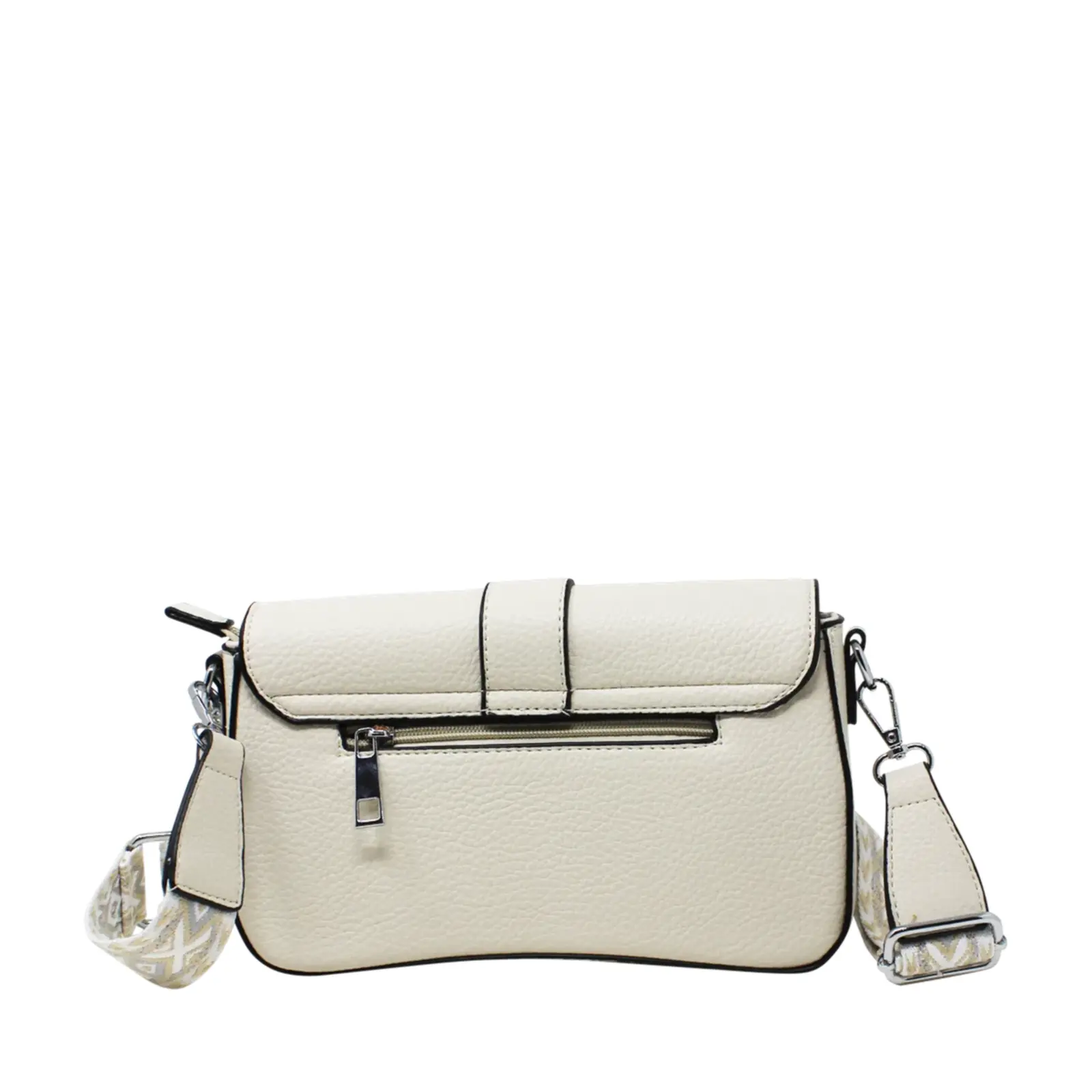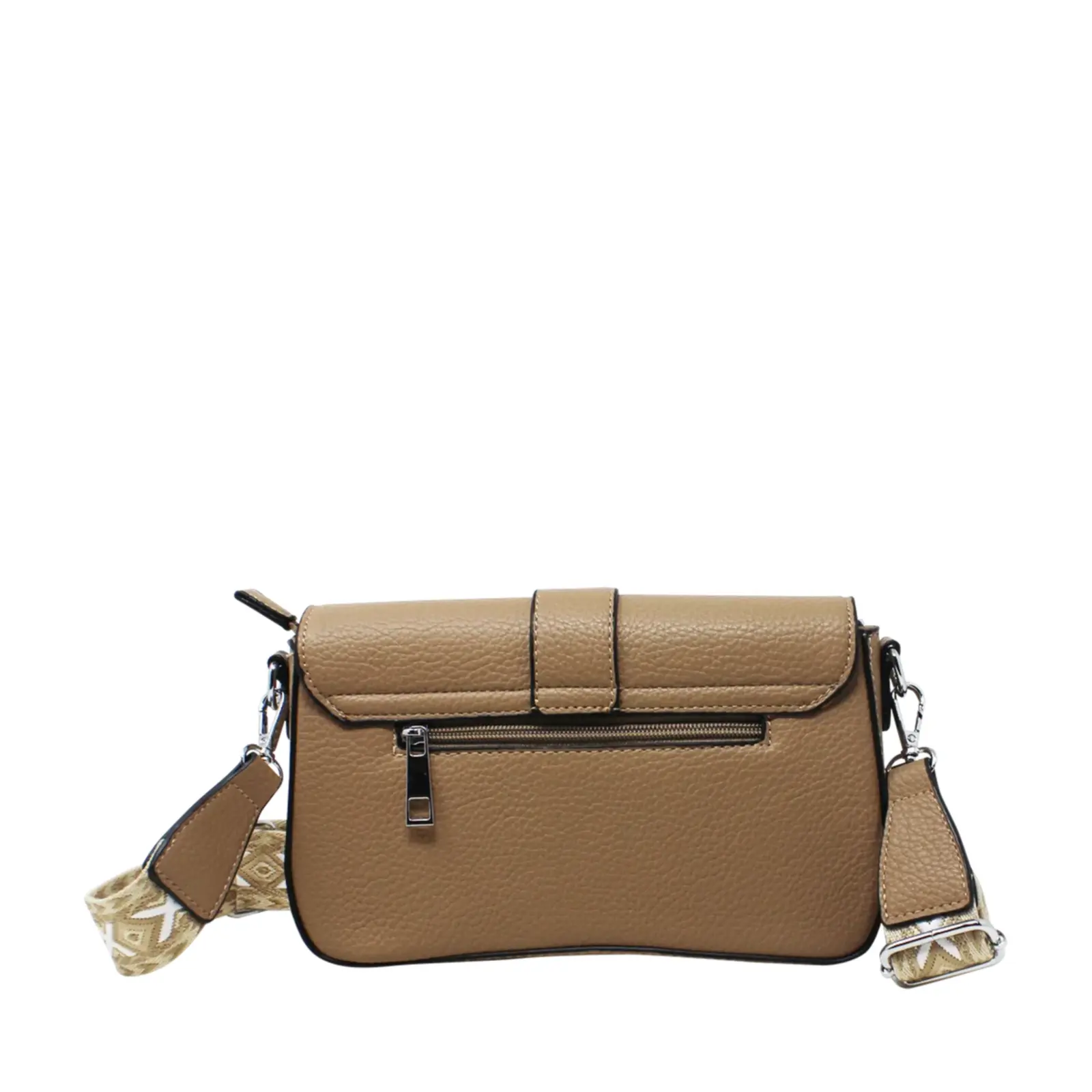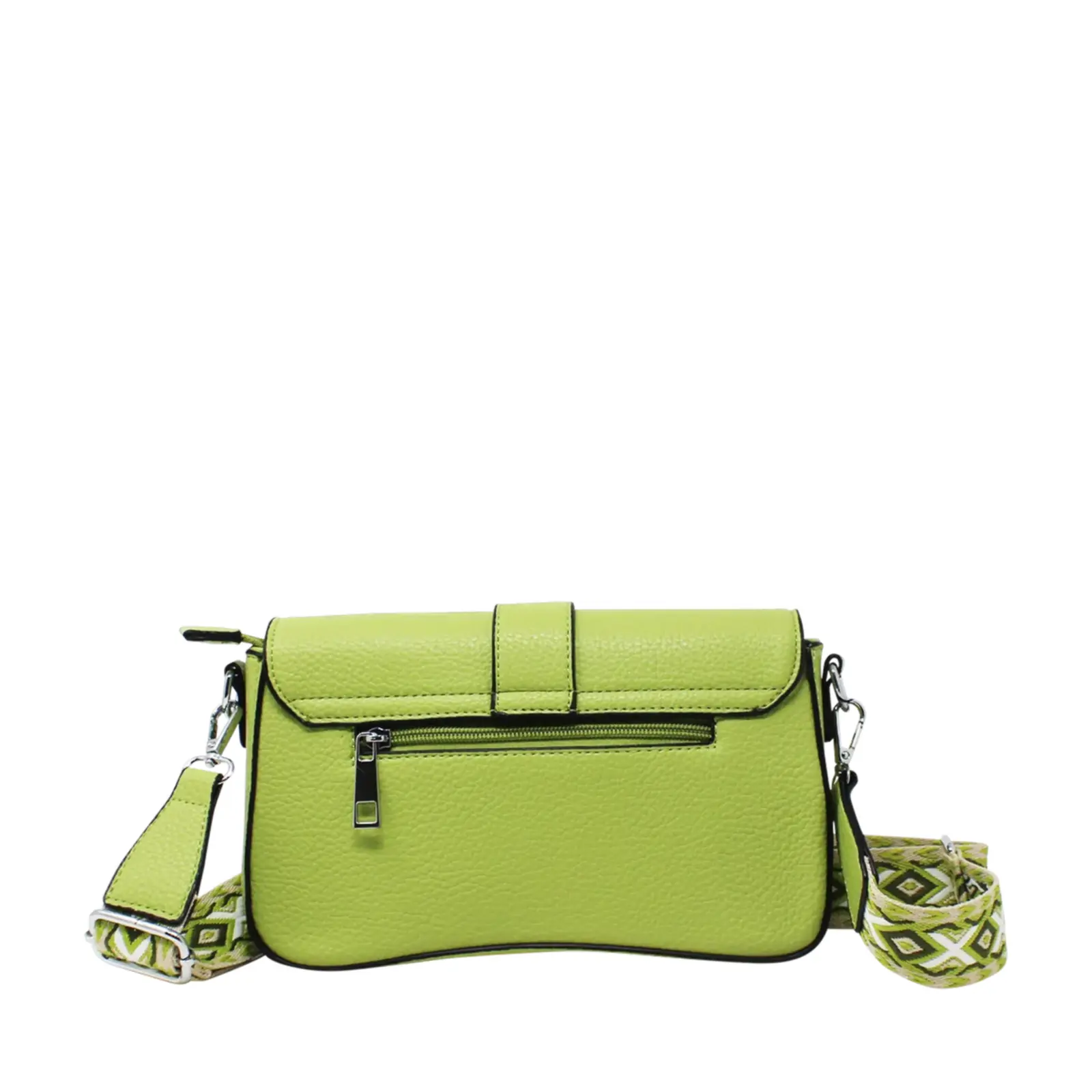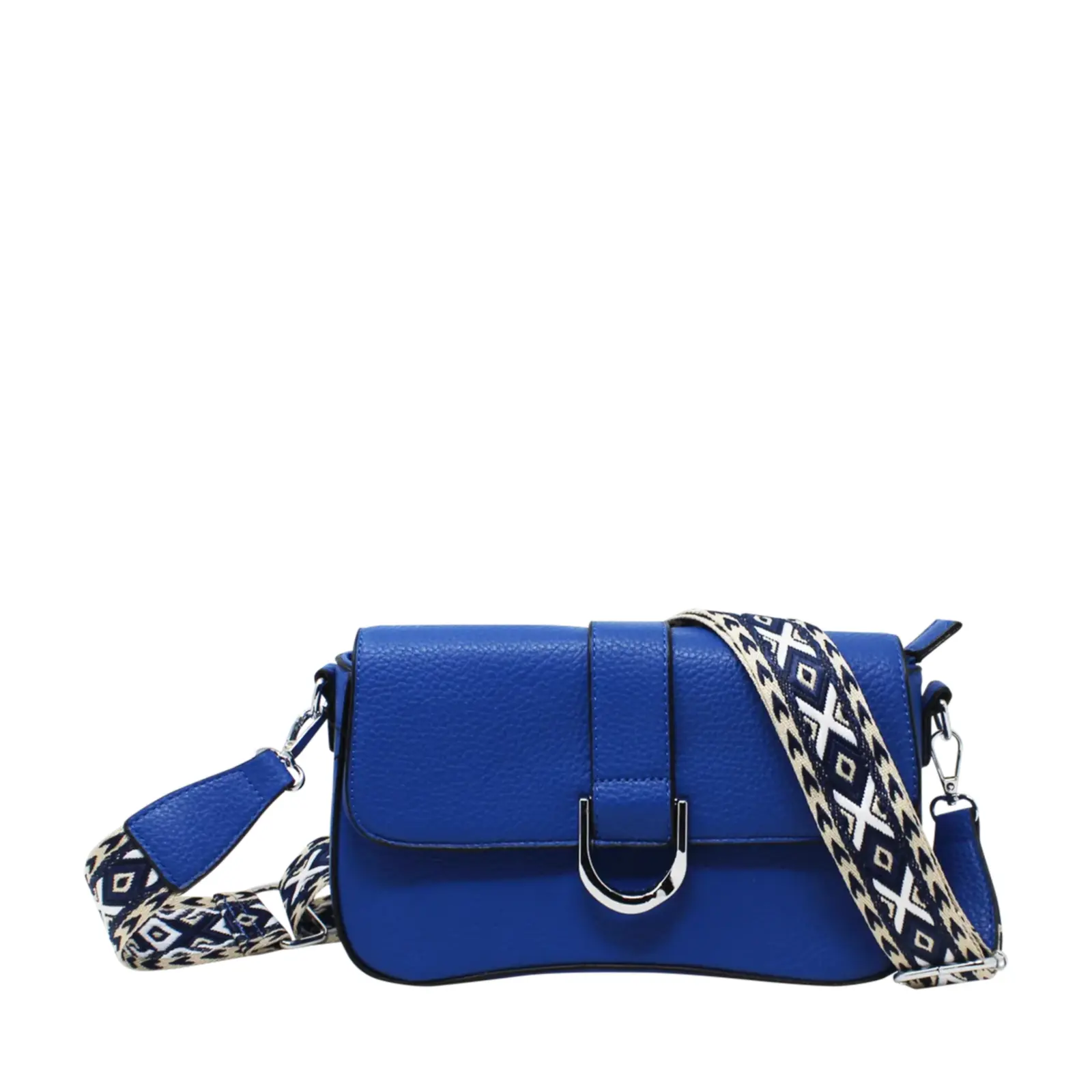 Flap-Over Crossbody with Rhombus Pattern Strap