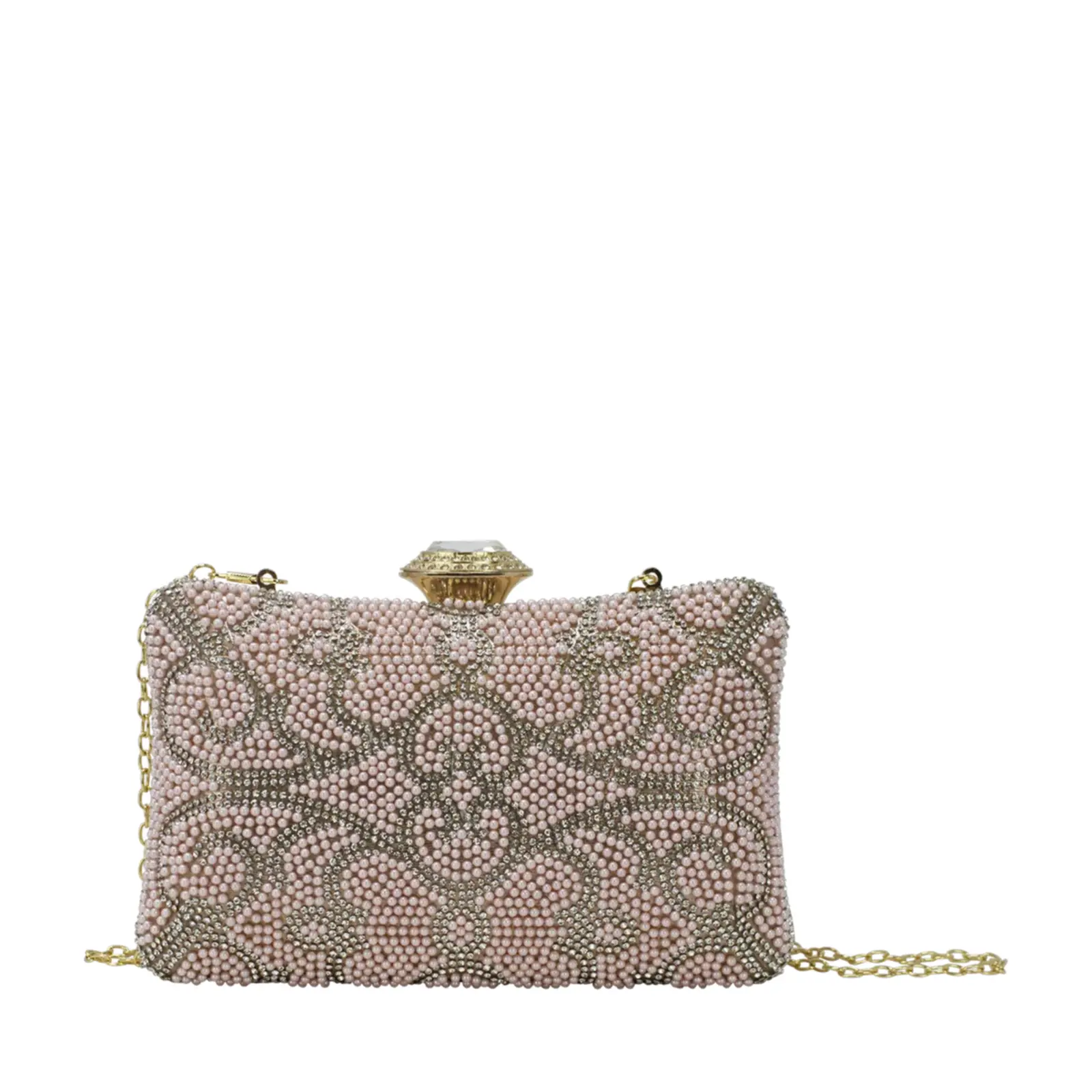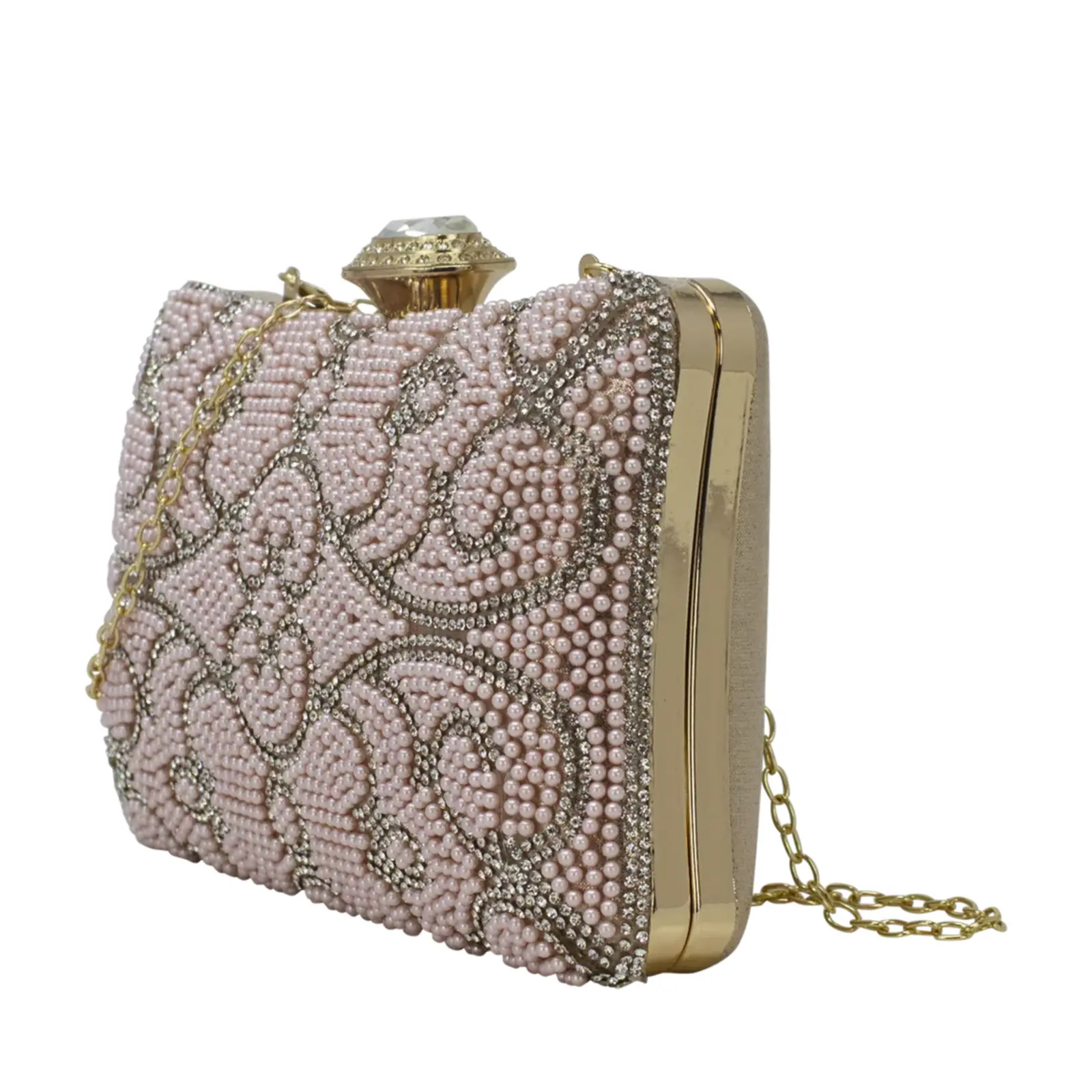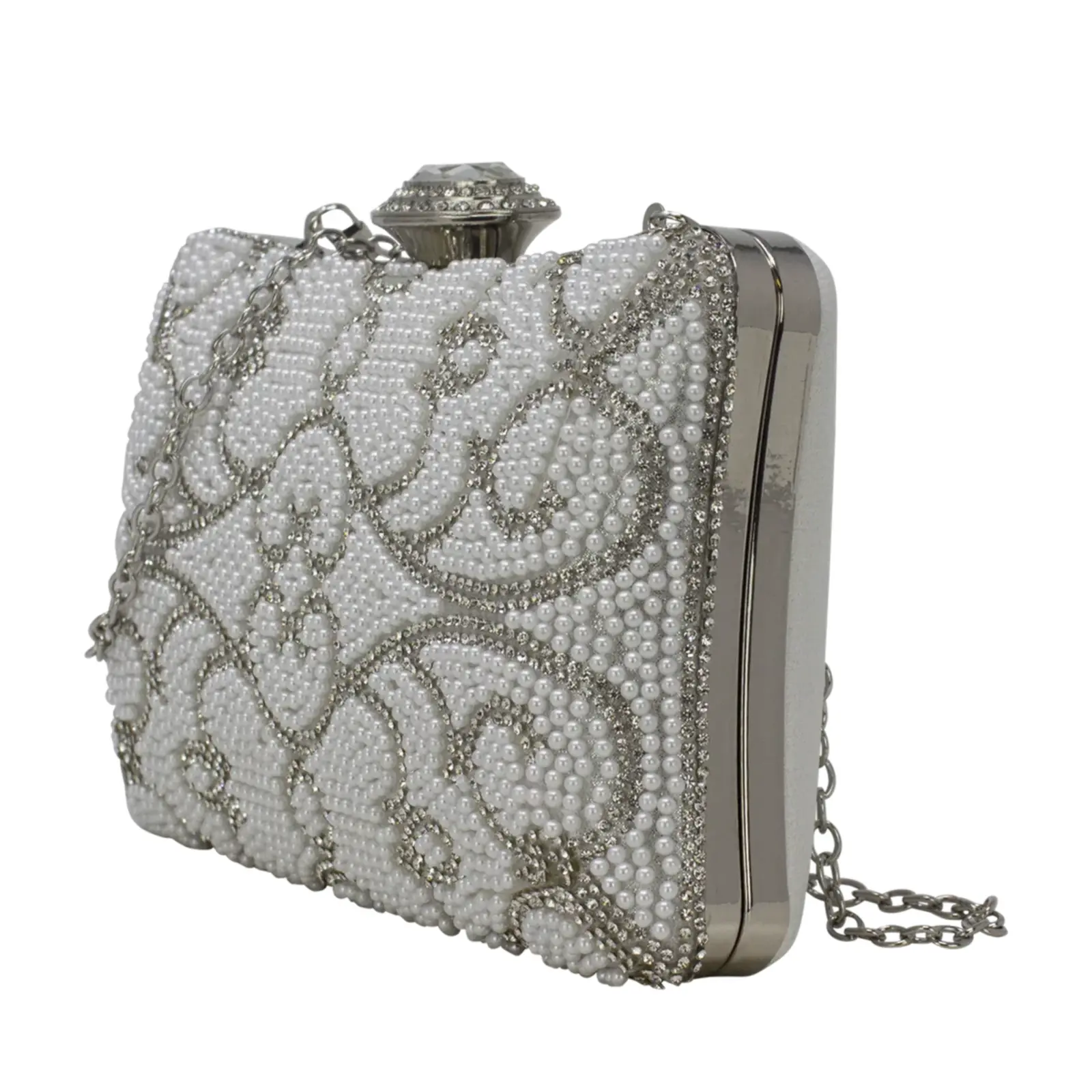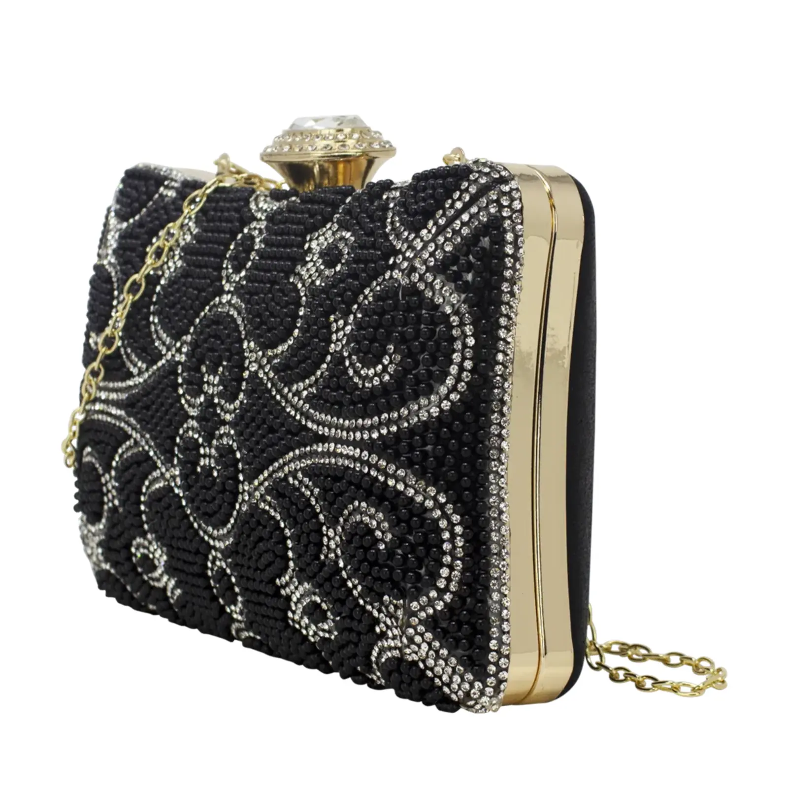 Our Floral Beads Clutch Bag, is a beautiful accessory that will add a touch of glamour to any outfit. Crafted from high-quality materials, this clutch bag features a stunning floral design that sparkles with delicate diamante embellishments with beads at the front. The compact size of the bag is perfect for carrying all of your essentials, with enough space for your phone, keys, and makeup.