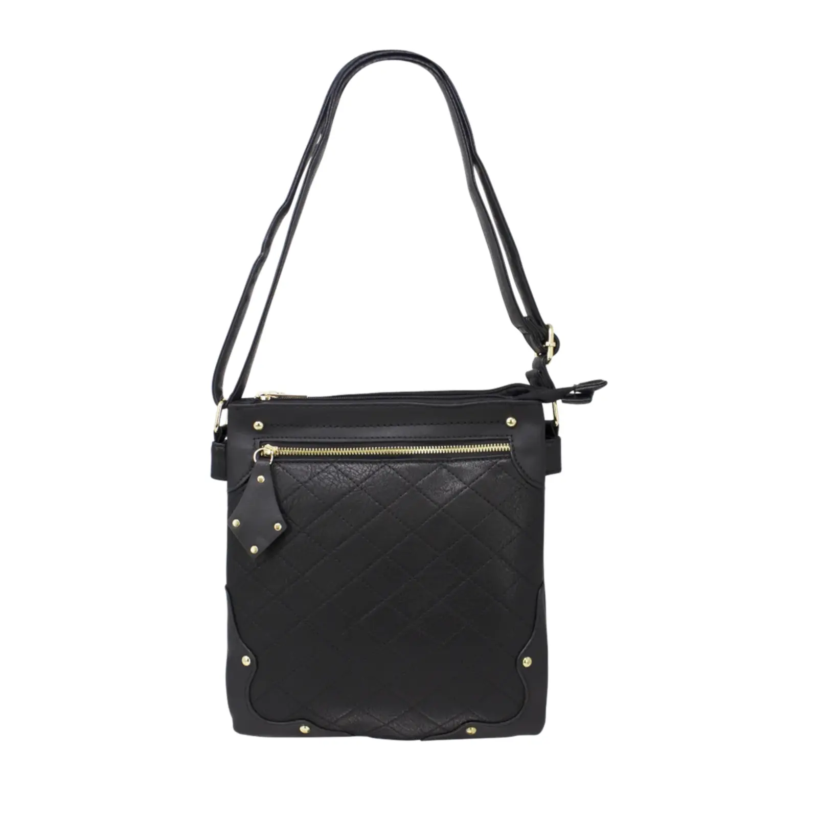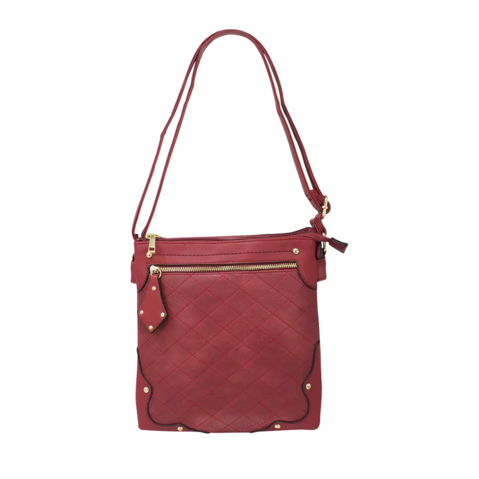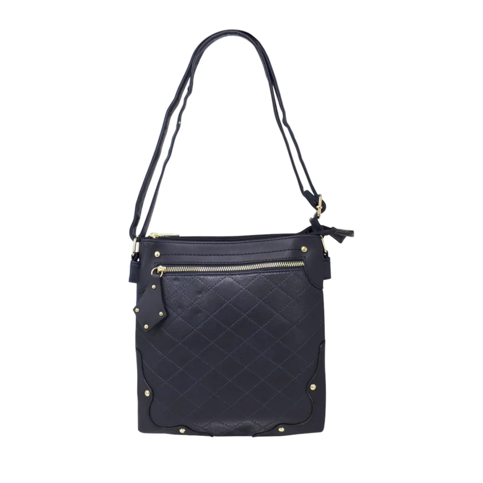This crossbody messenger bag is designed in a classic style and features a front zipped pocket with a diamond shape puller. And the diamond shape stitched line and the golden button studs also trim the front cover more stunning. This crossbody suits various daily occasions and fits daily essentials.