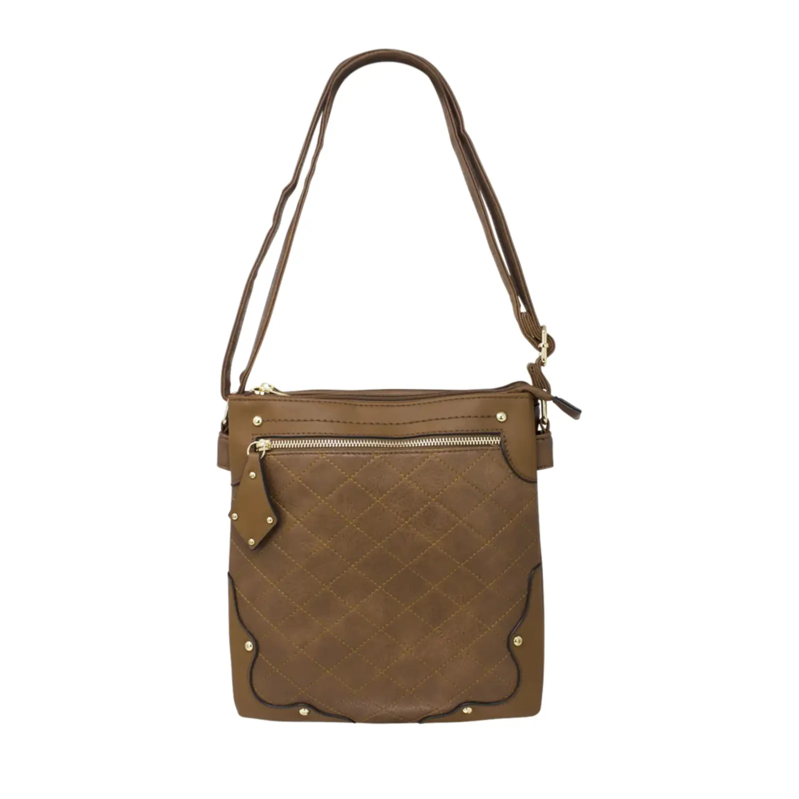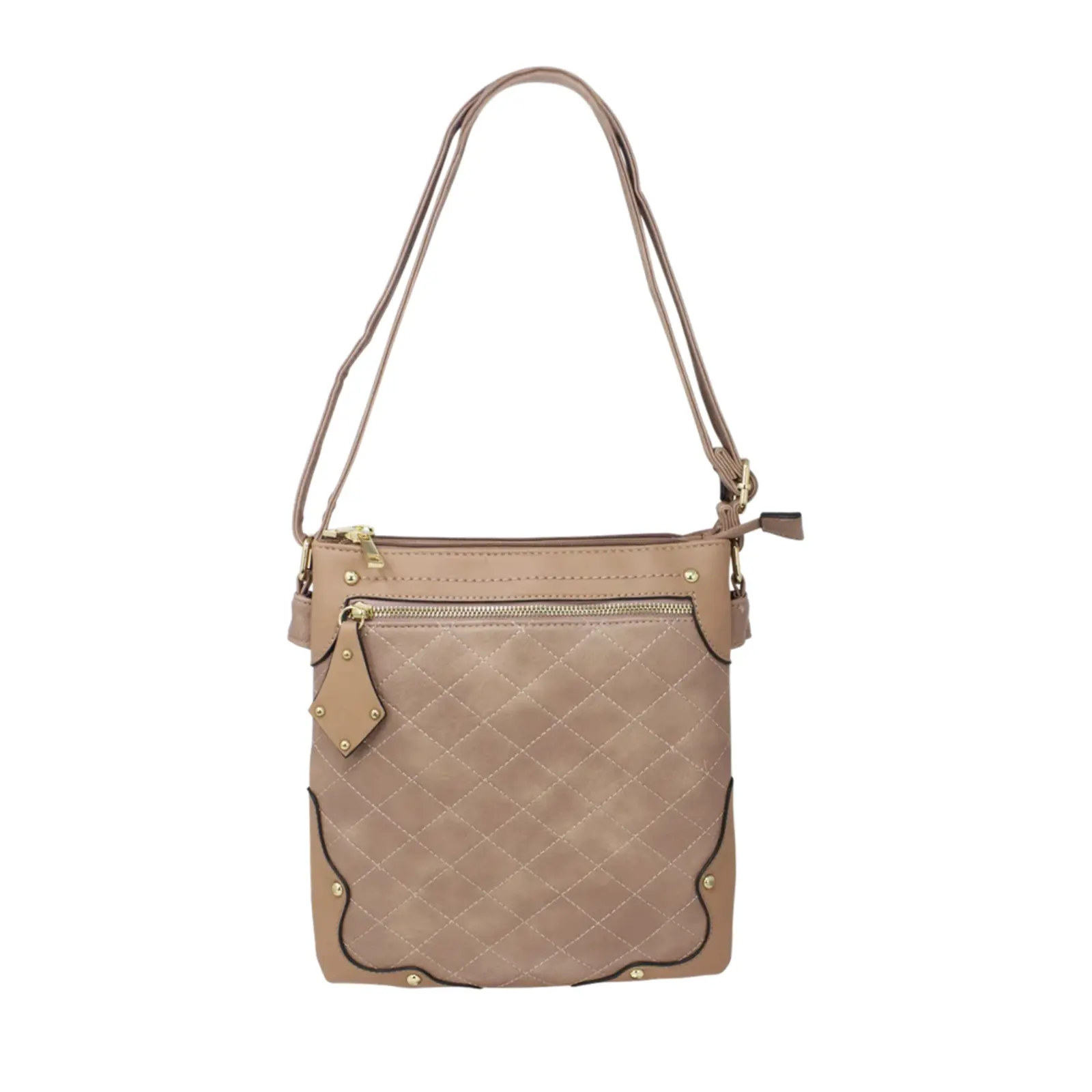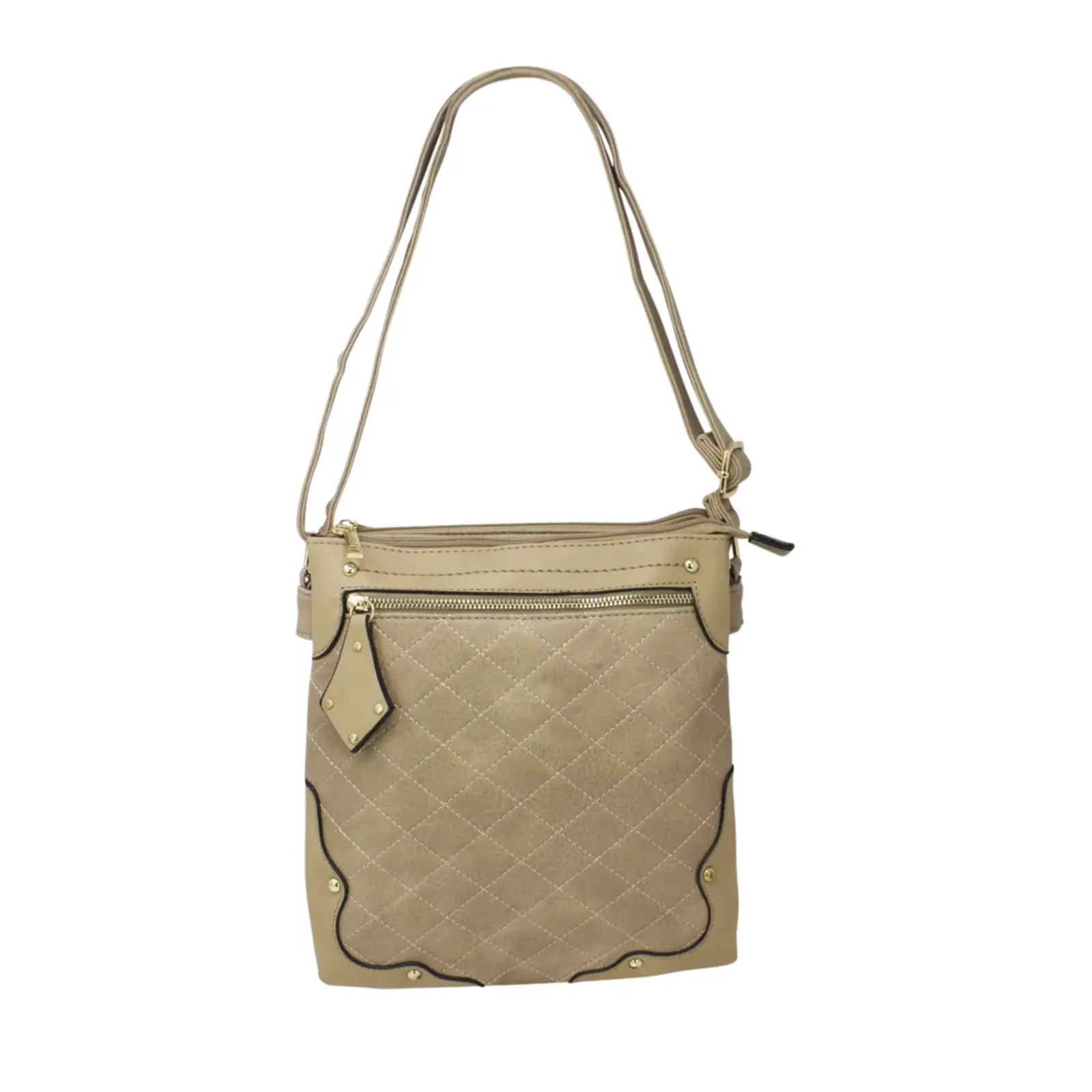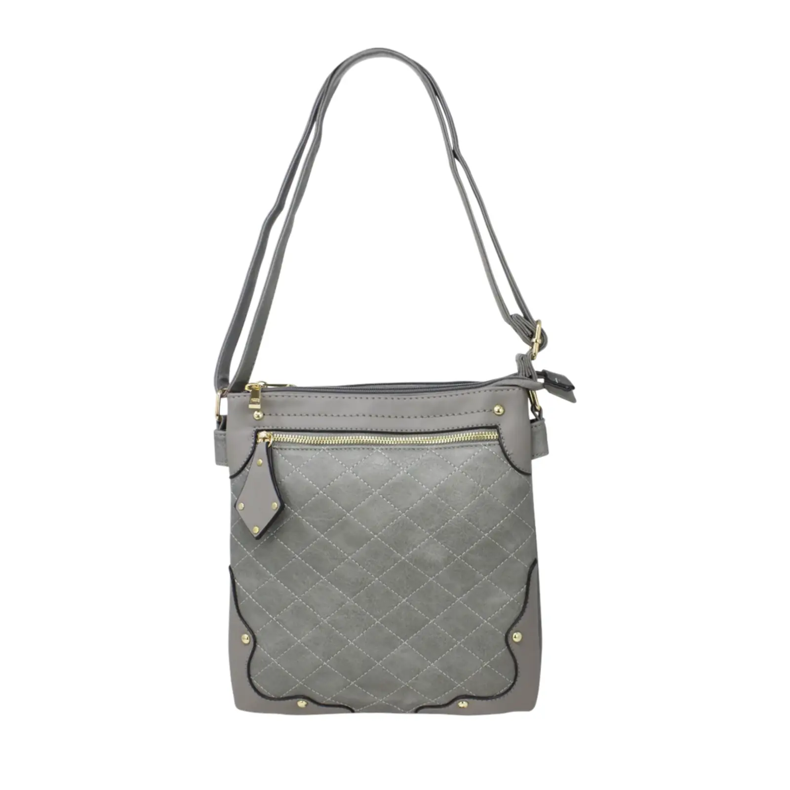 This crossbody messenger bag is designed in a classic style and features a front zipped pocket with a diamond shape puller. And the diamond shape stitched line and the golden button studs also trim the front cover more stunning. This crossbody suits various daily occasions and fits daily essentials.