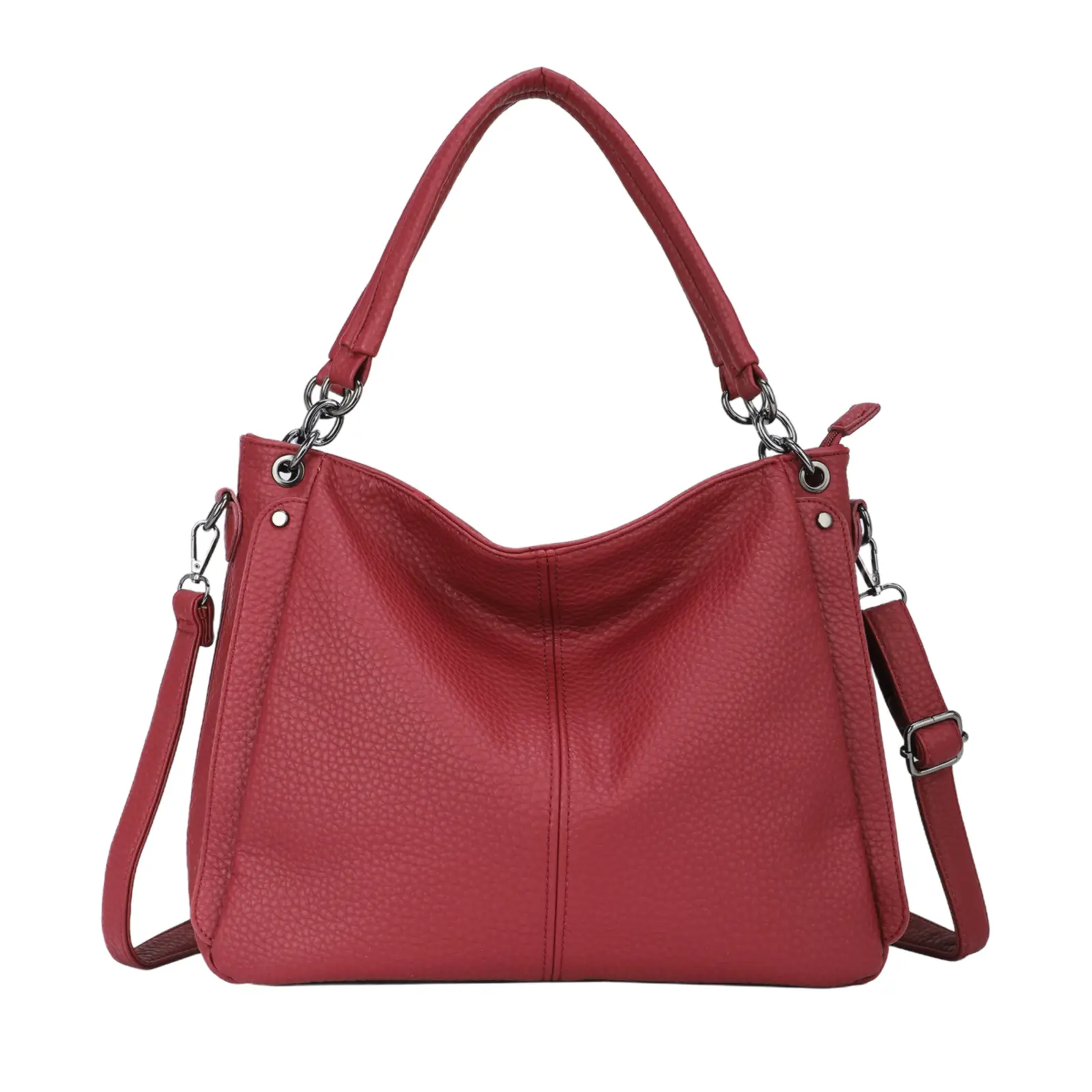 Large Capacity Lychee Pattern Women’s Handheld & Shoulder Bag with Detachable Crossbody Strap