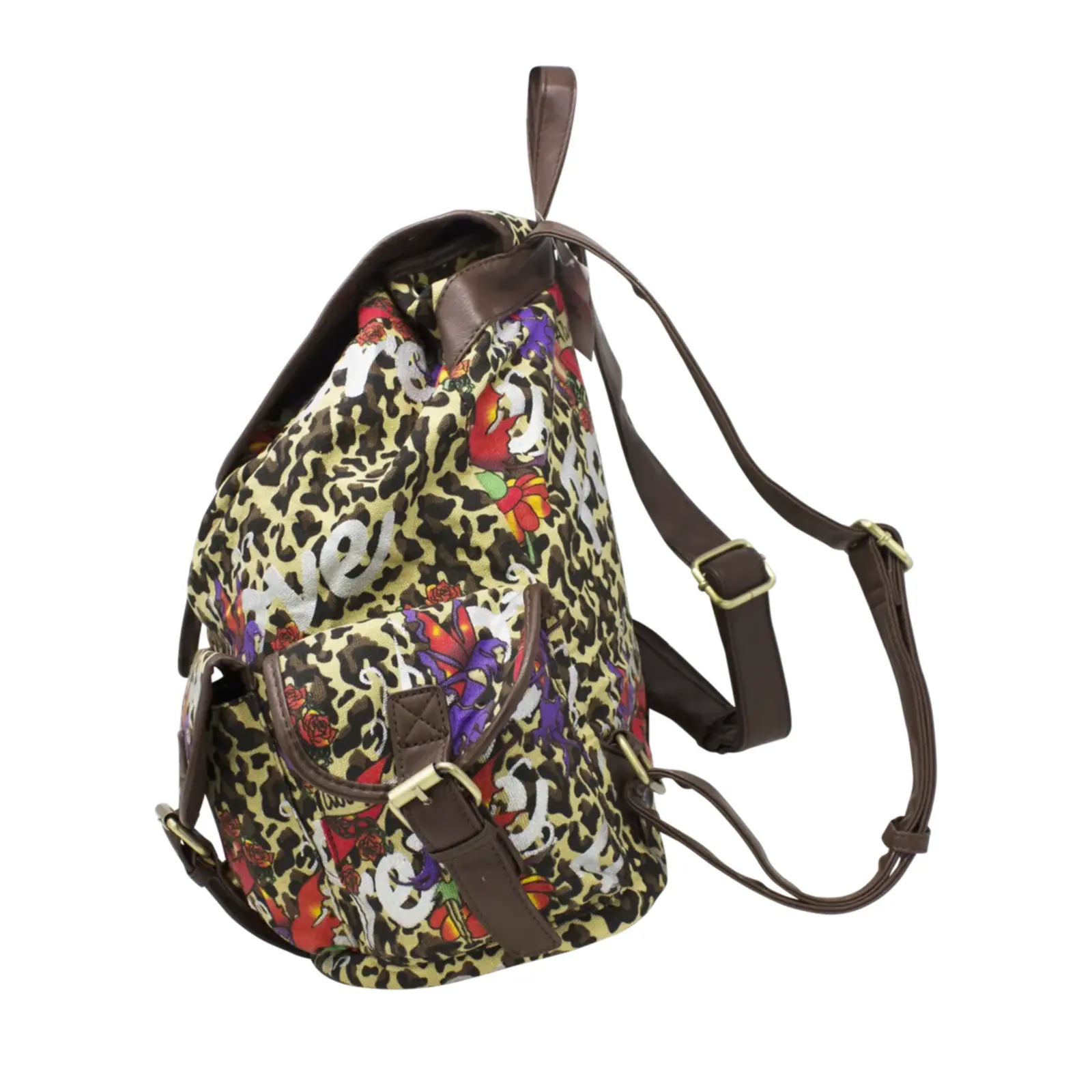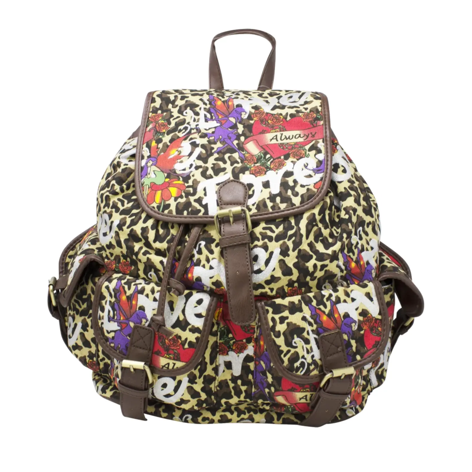 This backpack has five pockets allowing you lots of storage space while being able to catalogue your belongings for an easy find when needed. It features a bright combination with leopard print, fairy and love hearts elements.