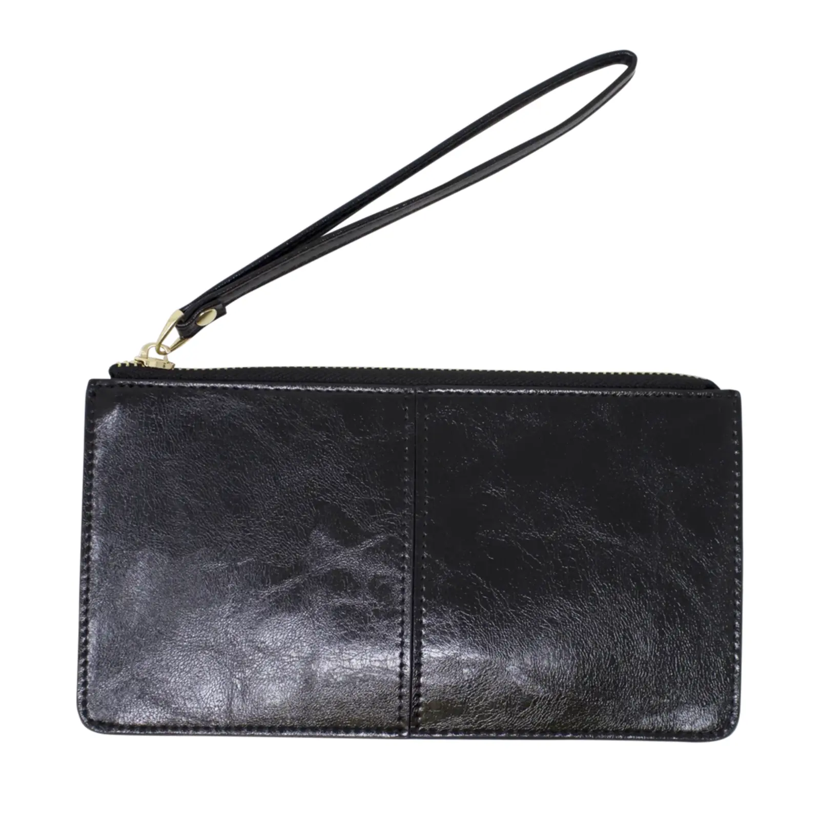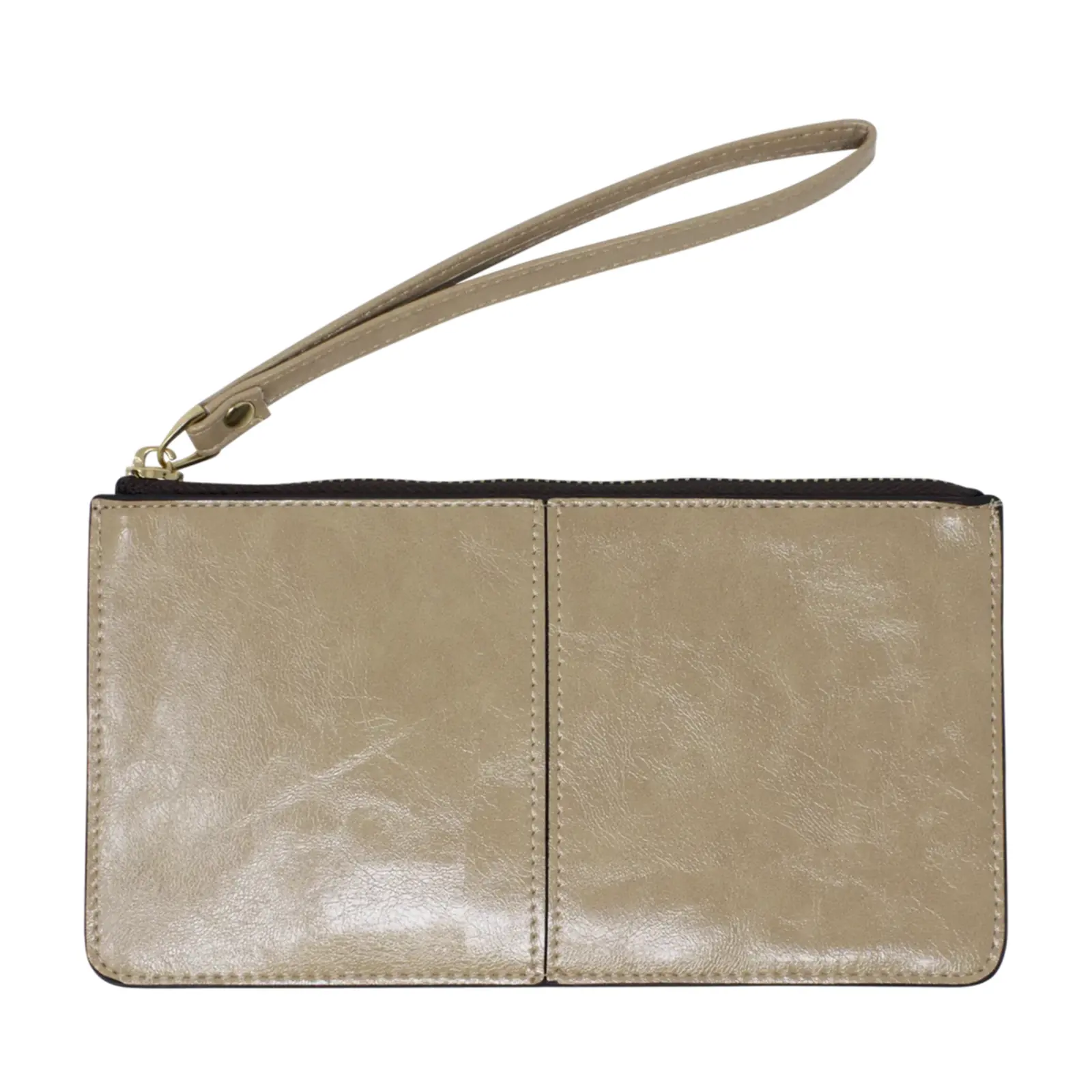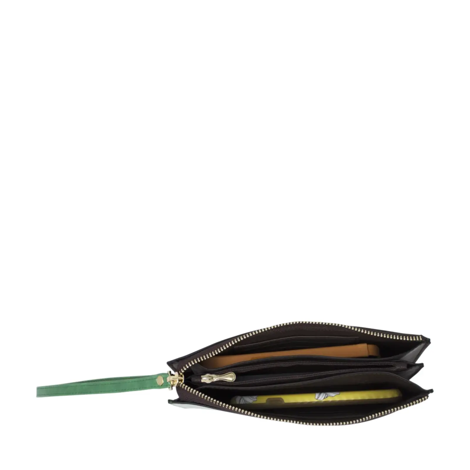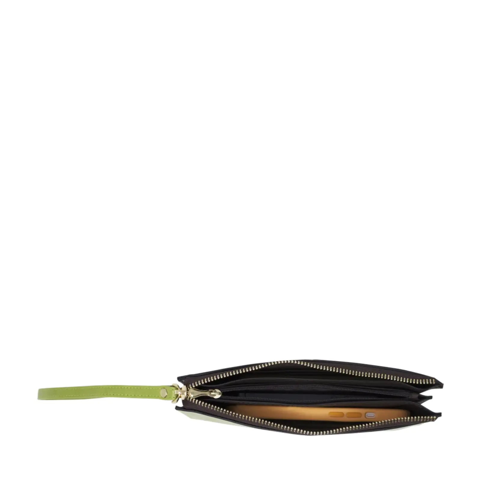 This zipped purse/pouch contains 3 separated compartments inside, including a zipped pocket, and several card slots.