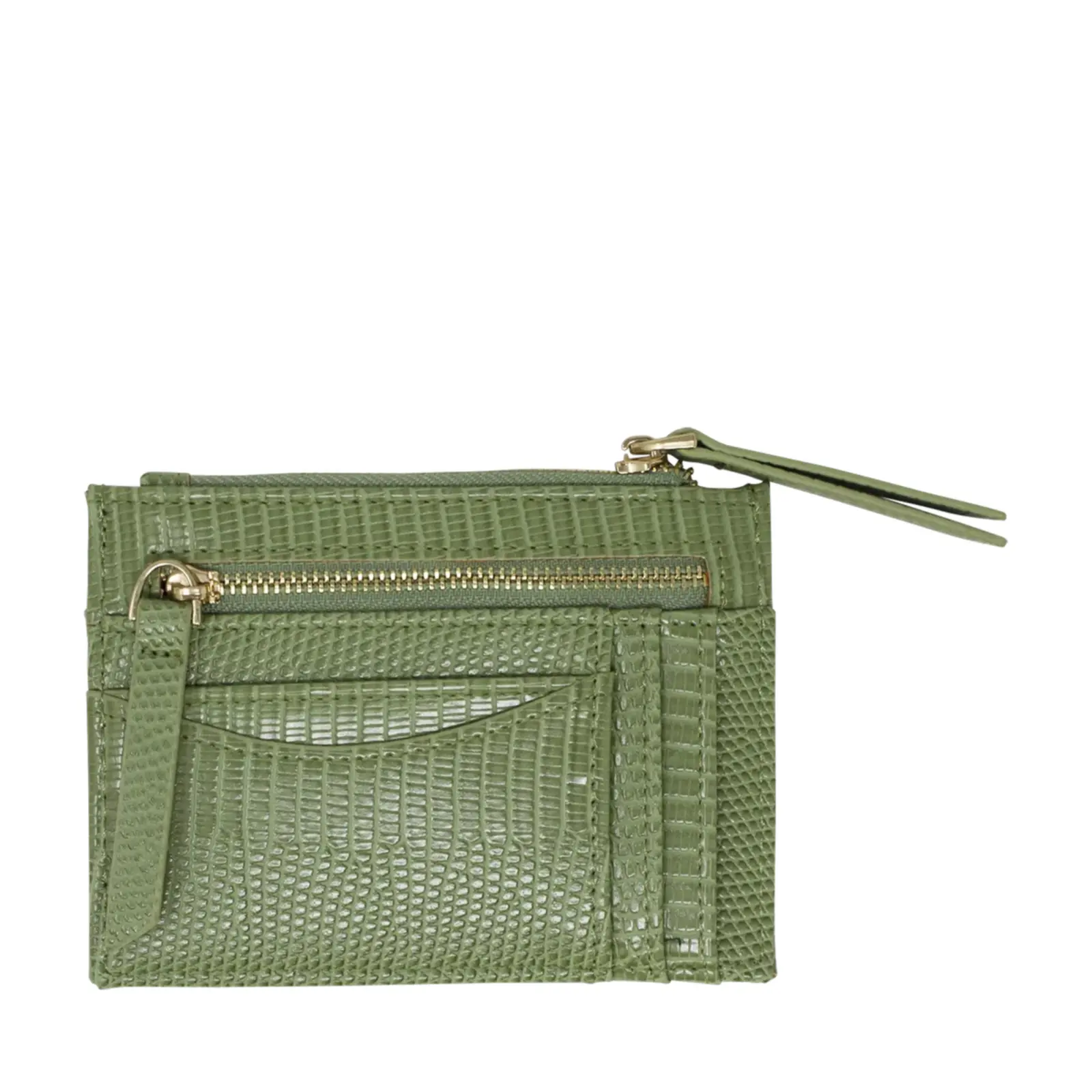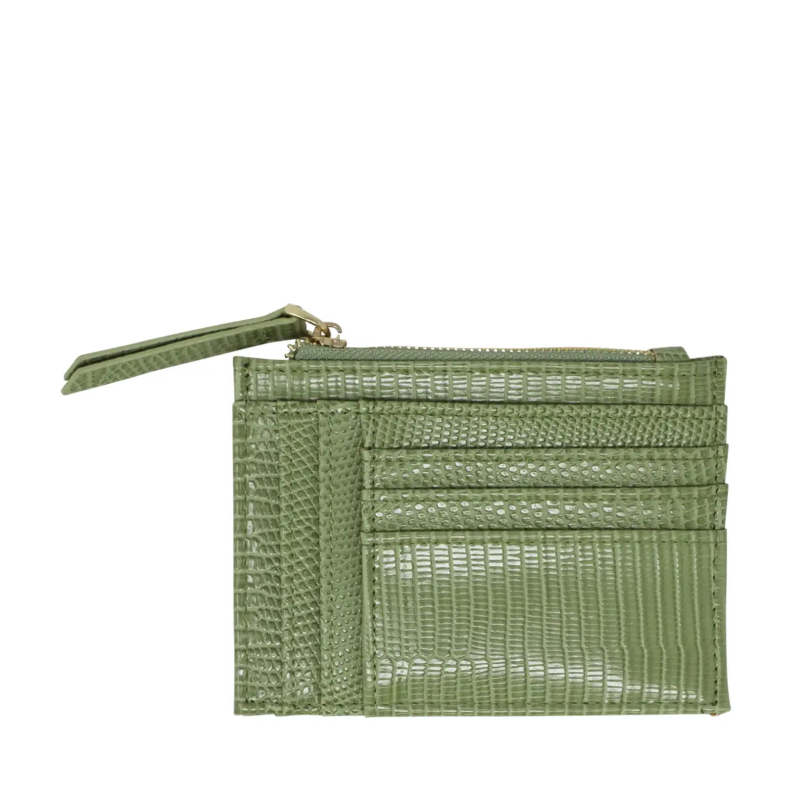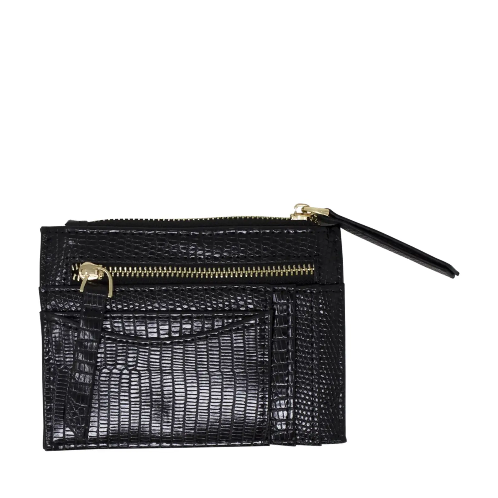 This is a small but functional card holder with faux lizard skin patterns. Each card holder has 2 zipped pockets with several card slots. It is a great handy essential for those who does not want to carry wallet or purse around. 5cm.