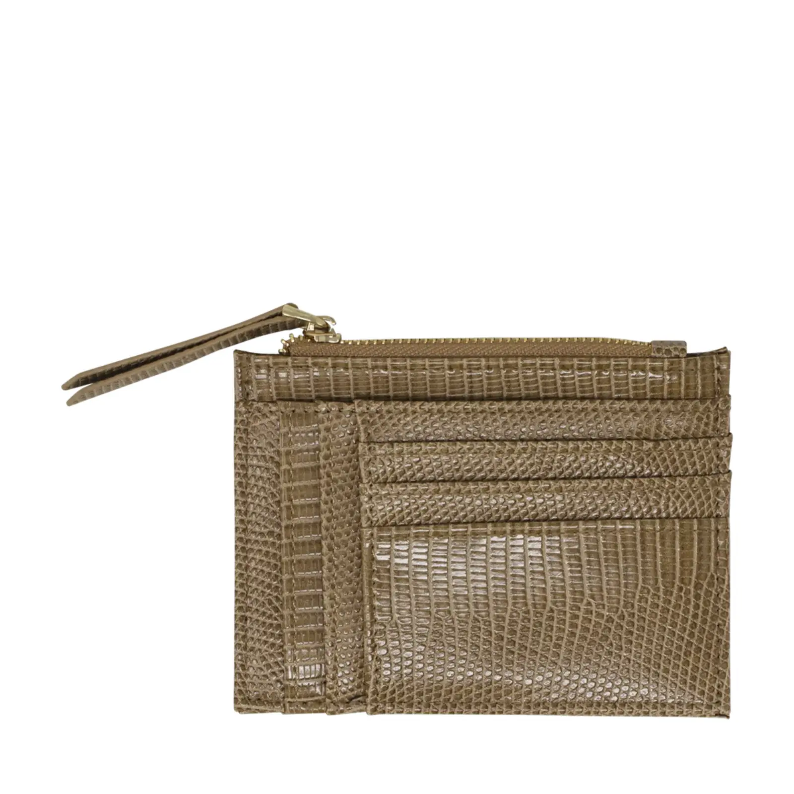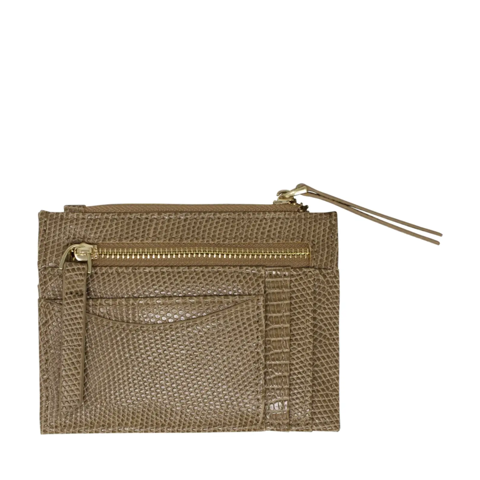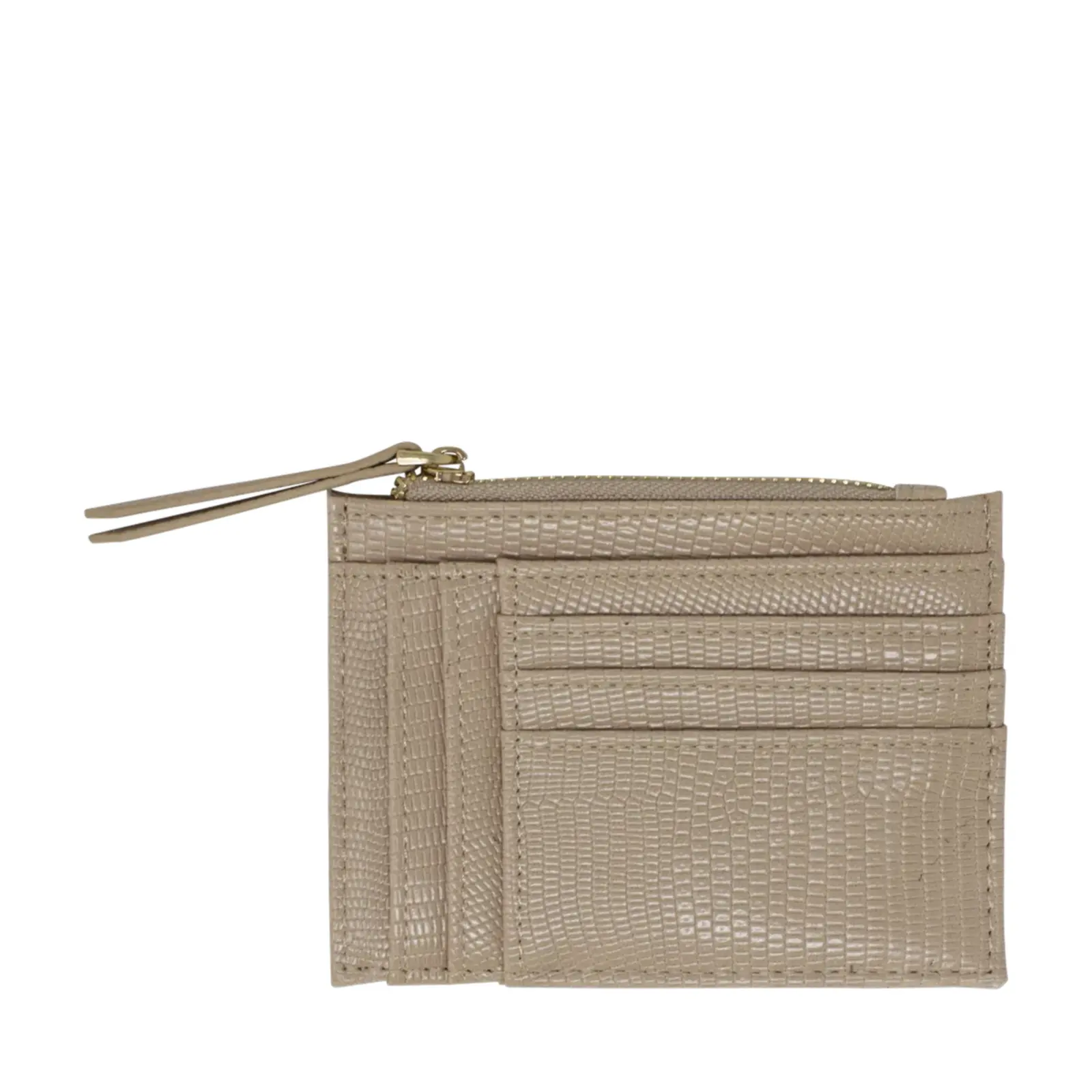 This is a small but functional card holder with faux lizard skin patterns. Each card holder has 2 zipped pockets with several card slots. It is a great handy essential for those who does not want to carry wallet or purse around. 5cm.