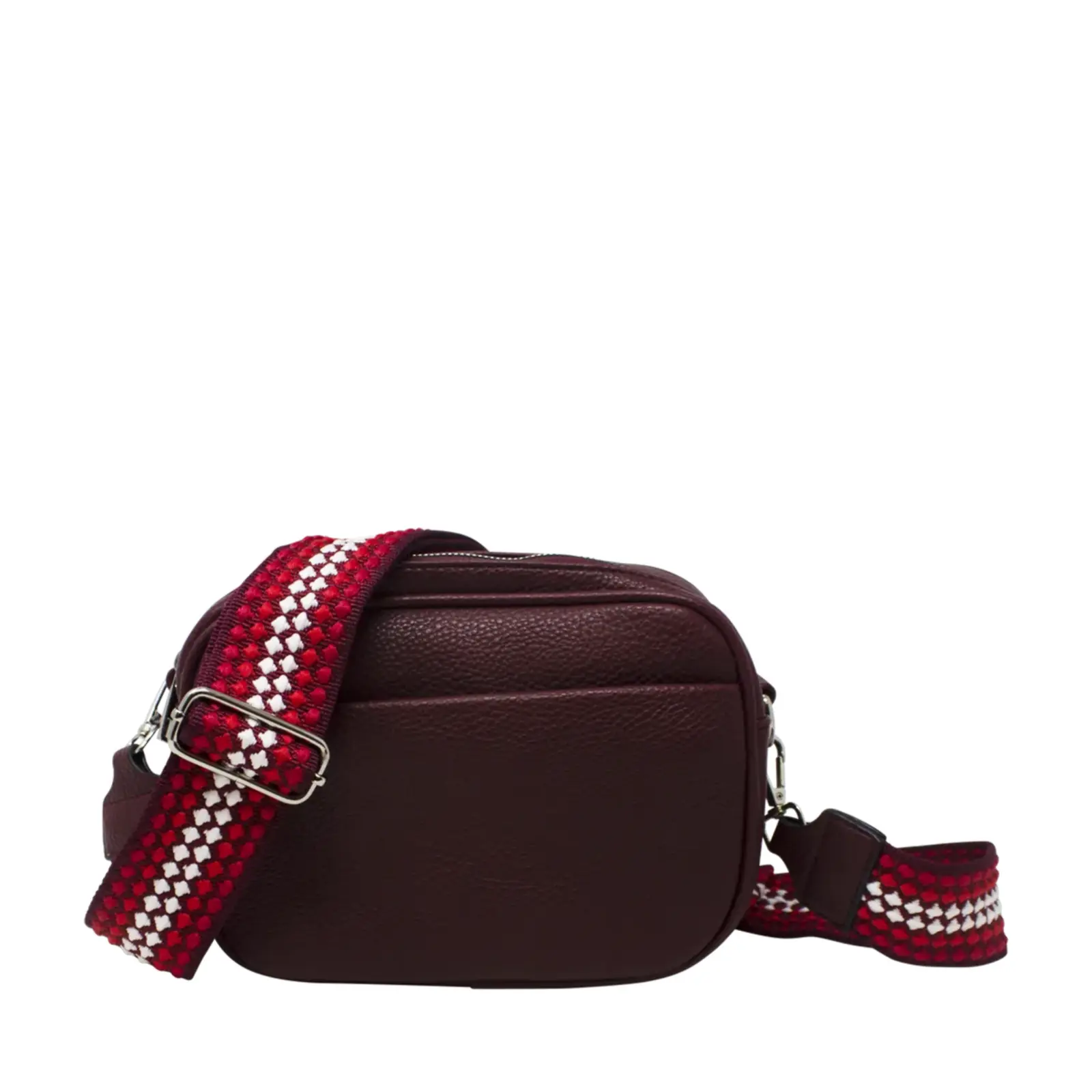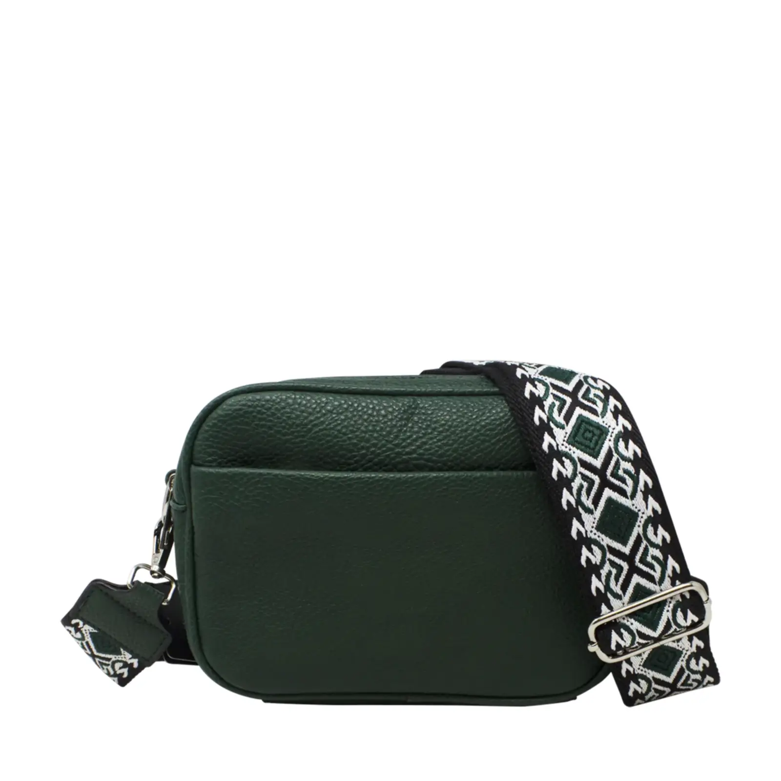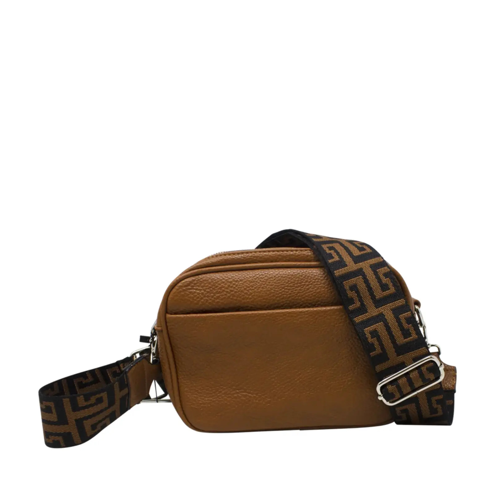 This crossbody is plain mono-coloured, all the highlights are put on the detachable shoulder straps. It comes with a front zipped pocket and two separated zipped compartments for an easy personal belonging management.