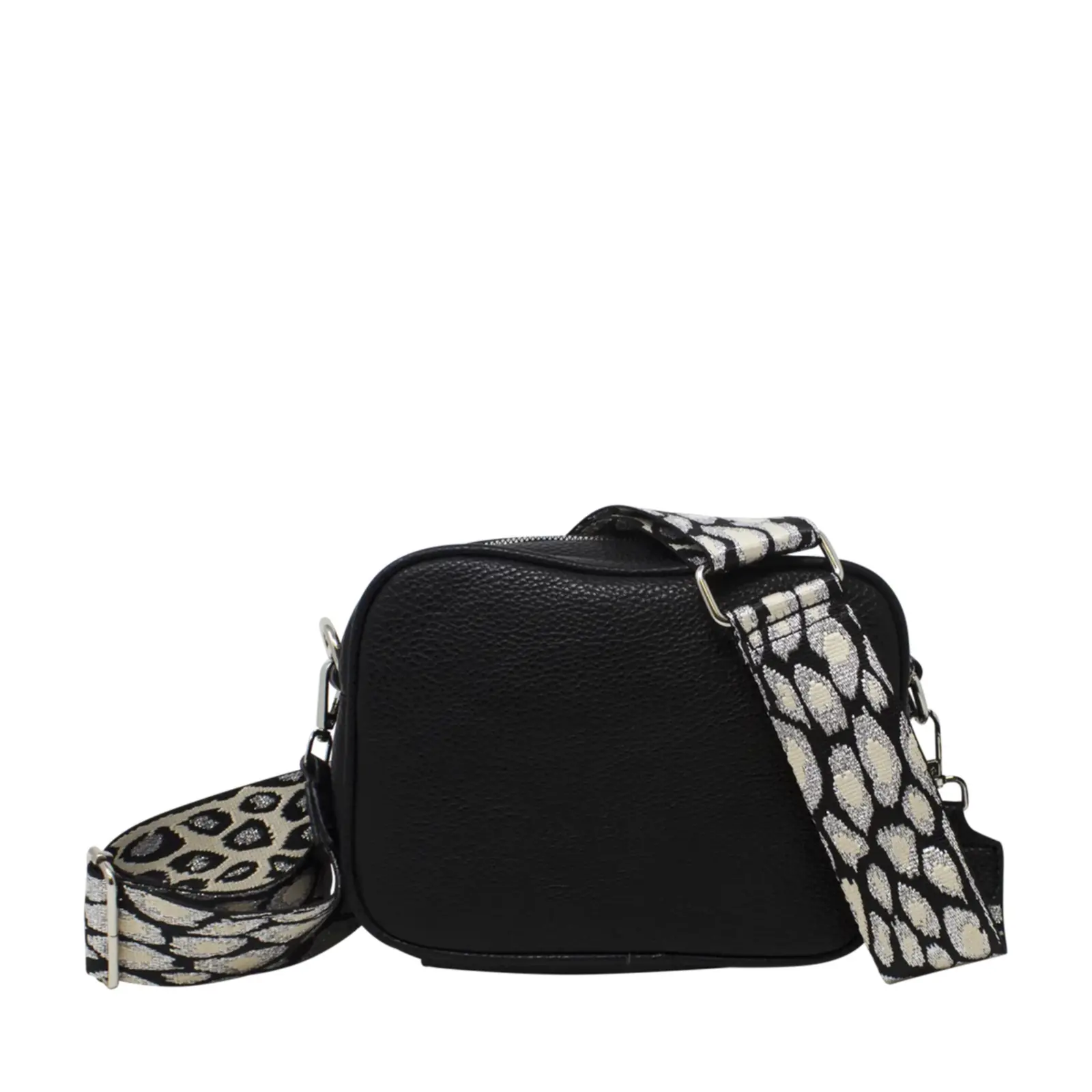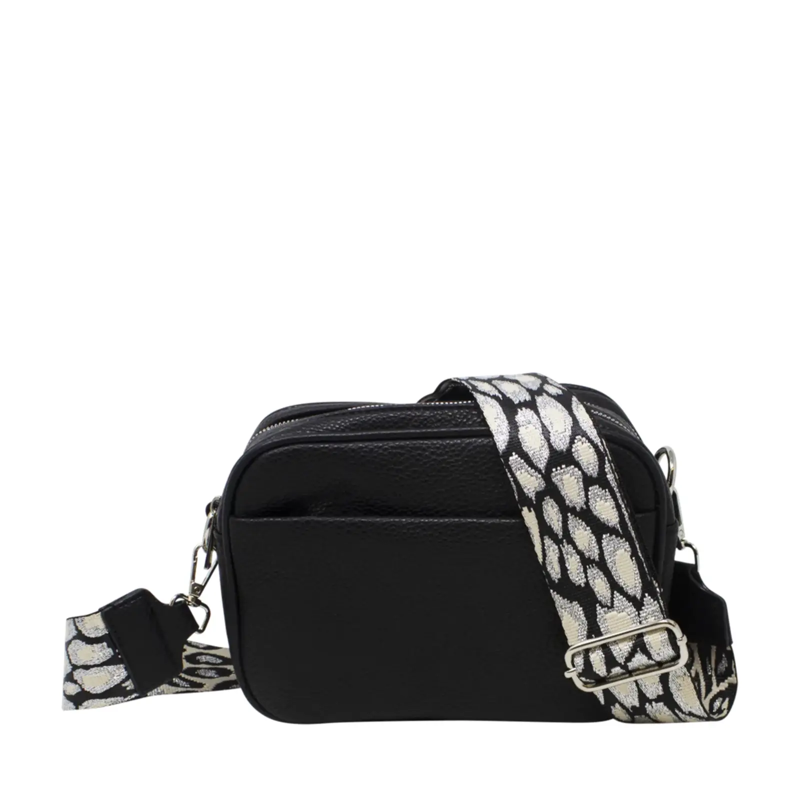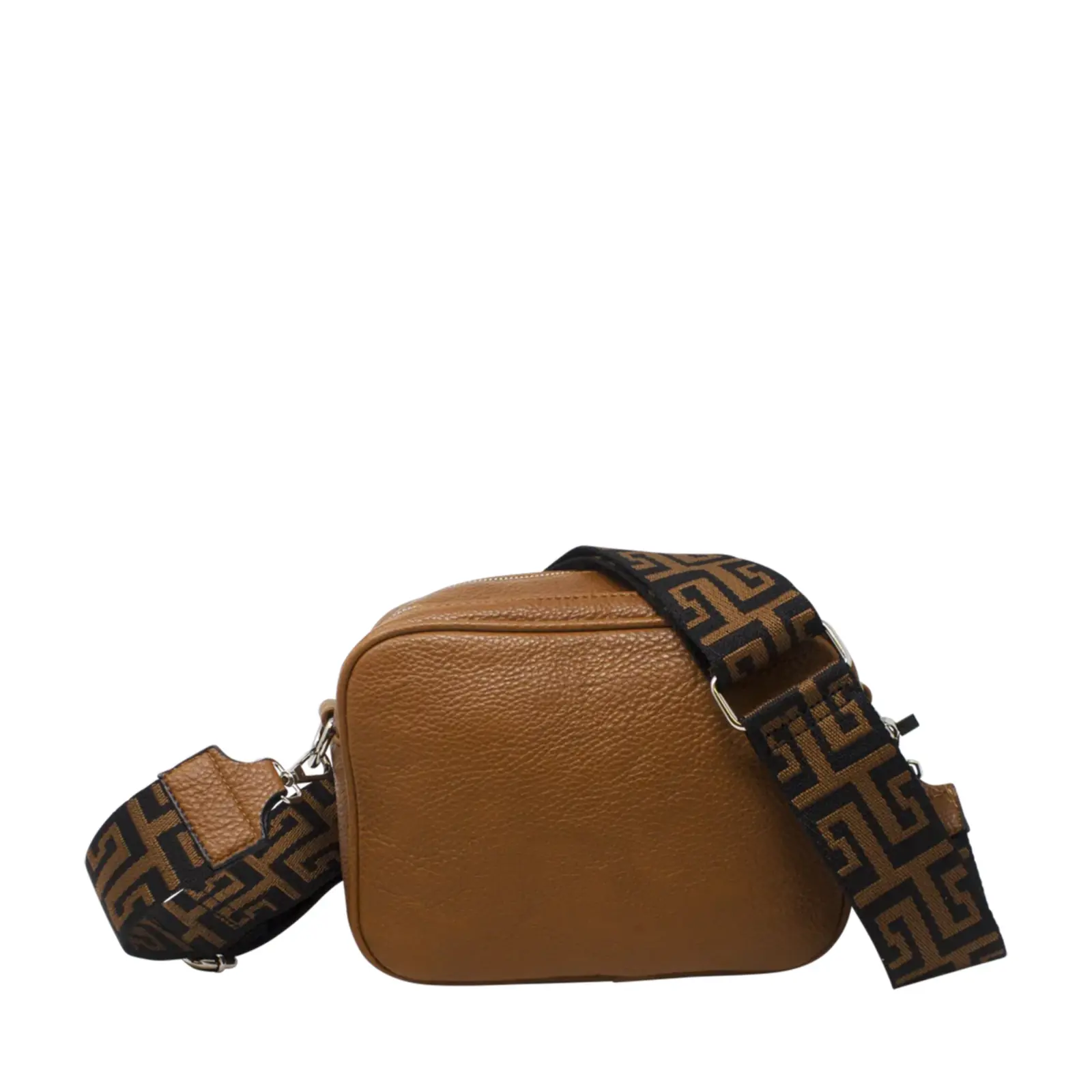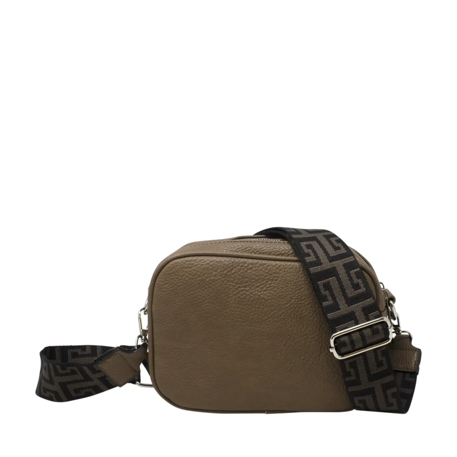 This crossbody is plain mono-coloured, all the highlights are put on the detachable shoulder straps. It comes with a front zipped pocket and two separated zipped compartments for an easy personal belonging management.