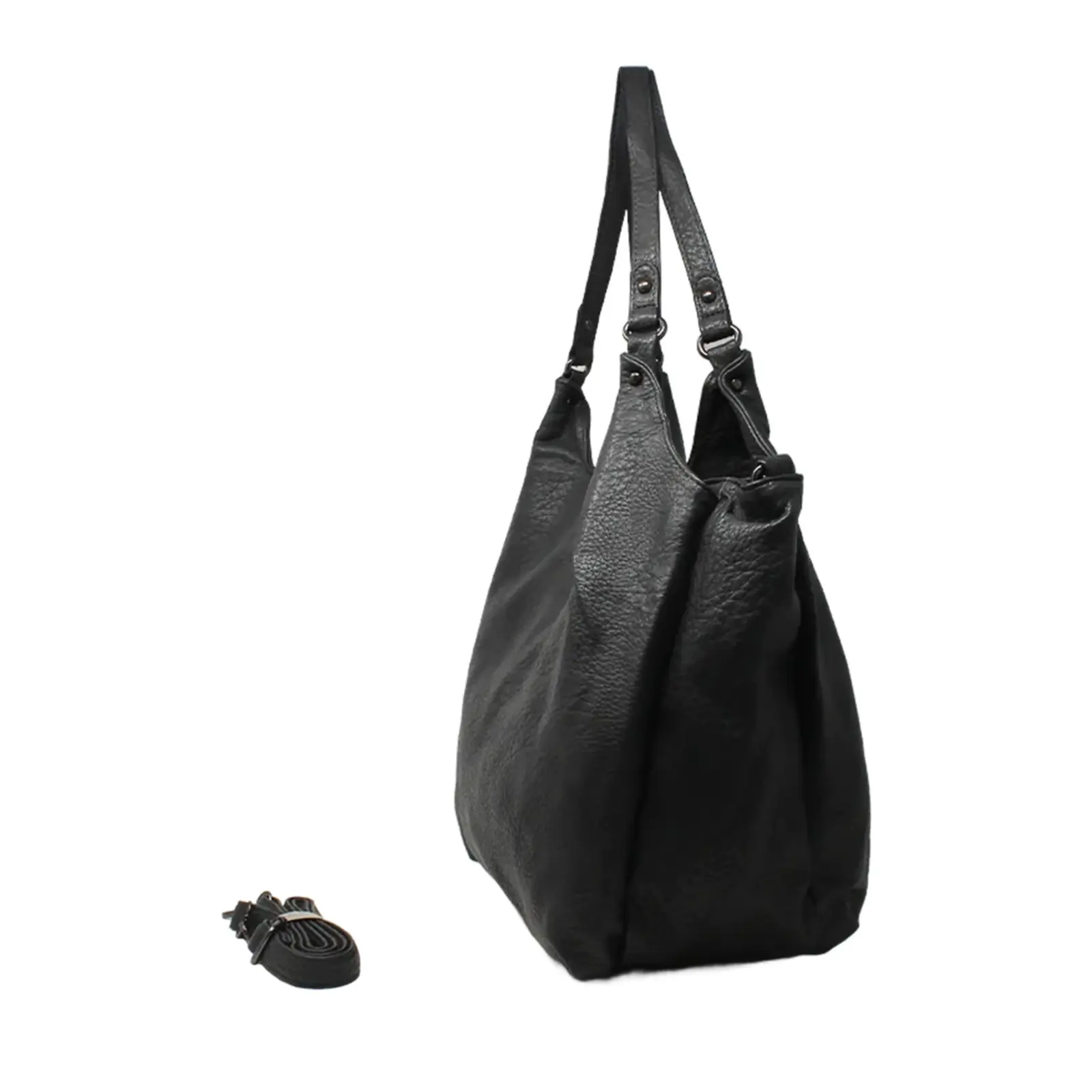 Plain Hobo Shoulder Bag with Detachable Crossbody Strap