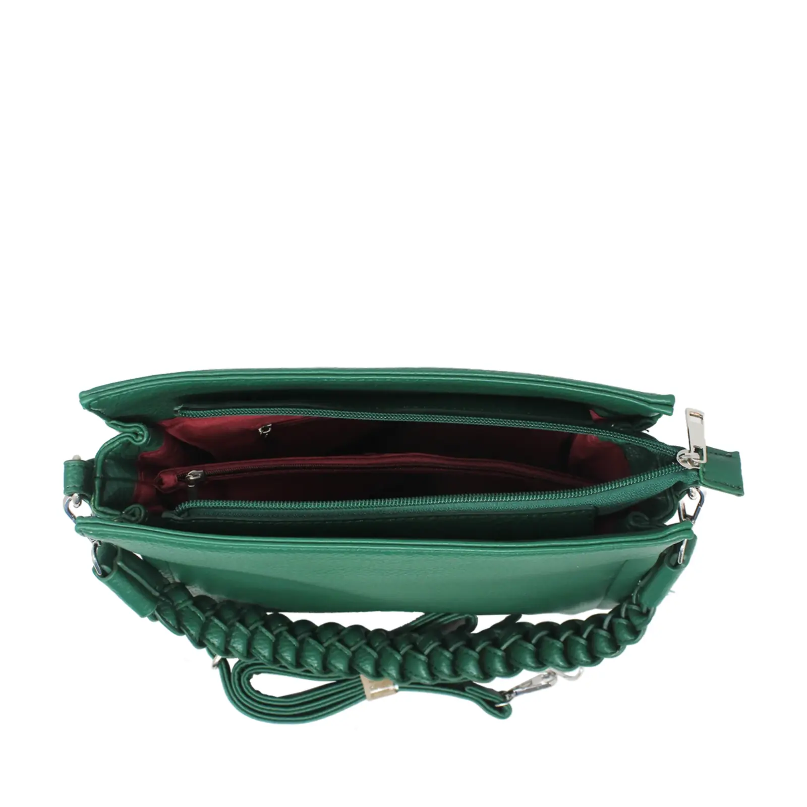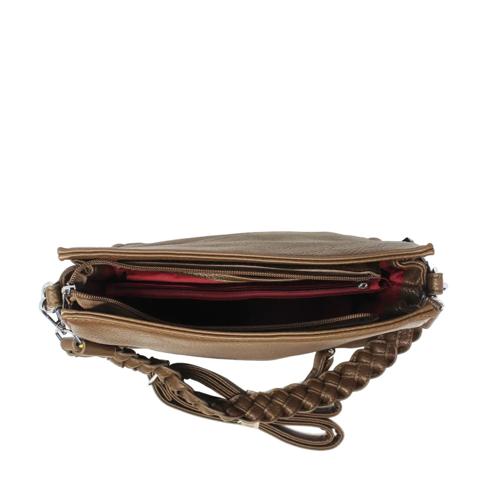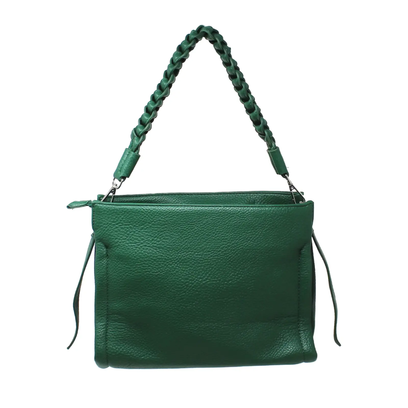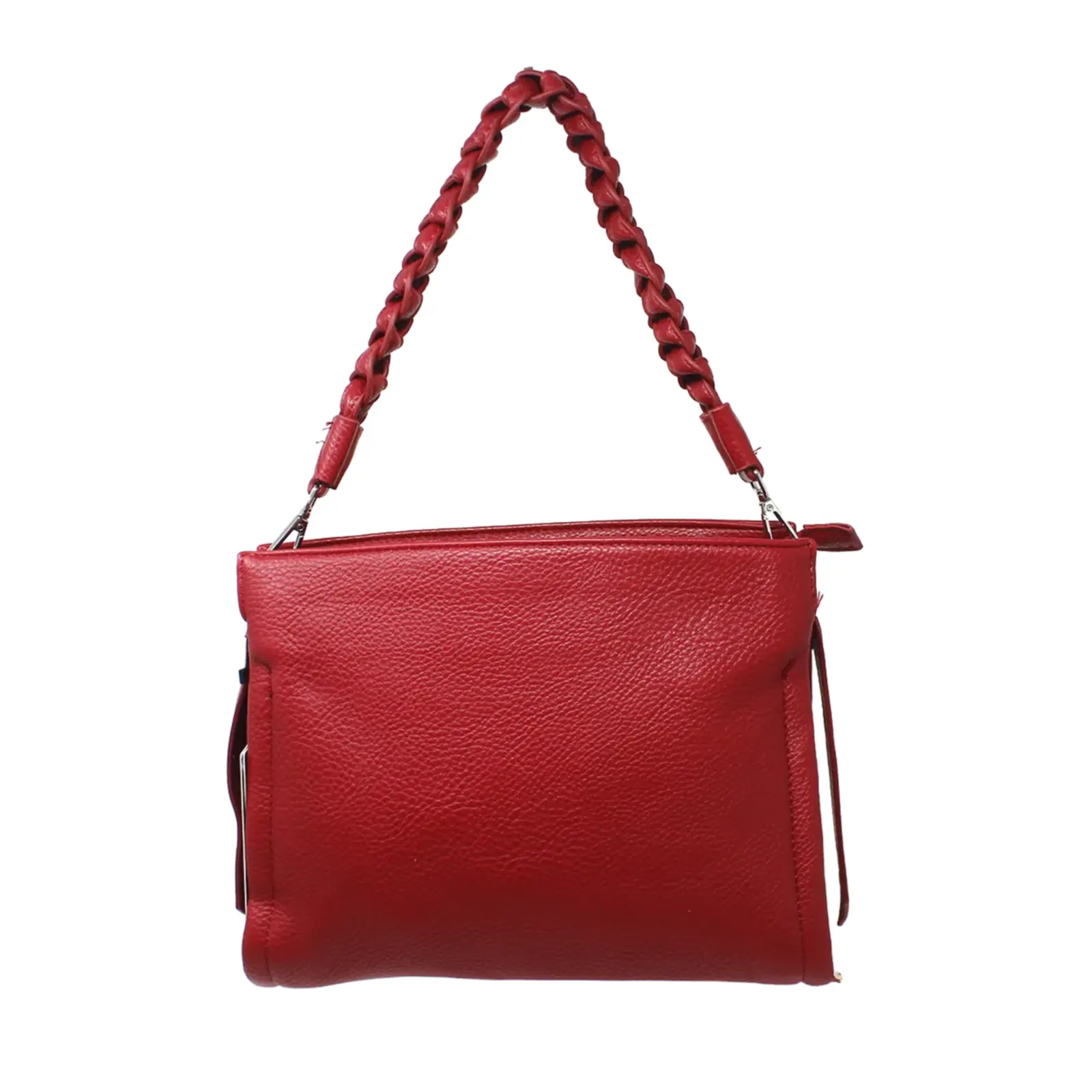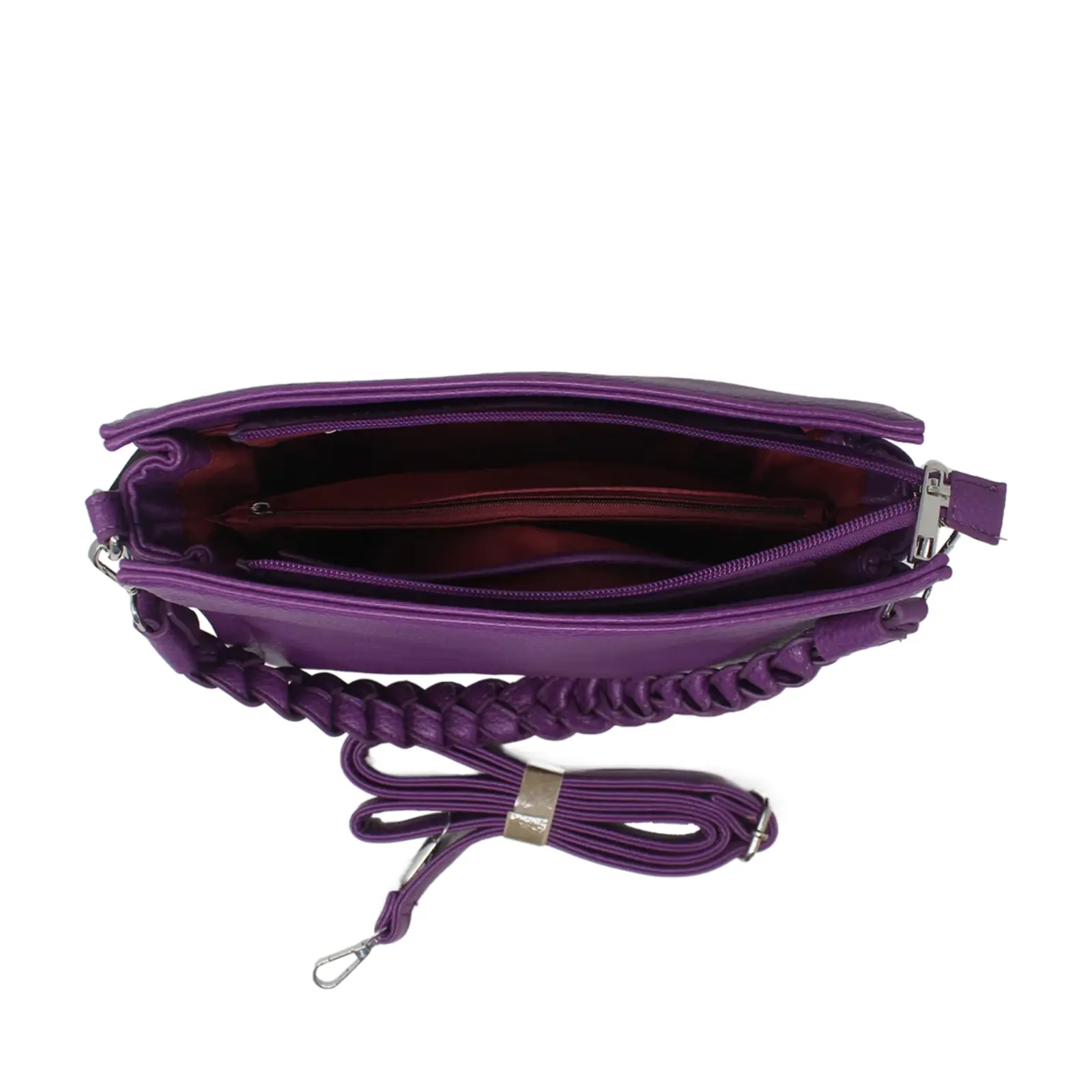Designed with a unique plait strap, this bag can be carried as a shoulder bag, or crossbody thanks to its detachable strap. It offers two spacious compartments and a secure zip pocket for added convenience and style. This is an ideal accessory for any occasion!.