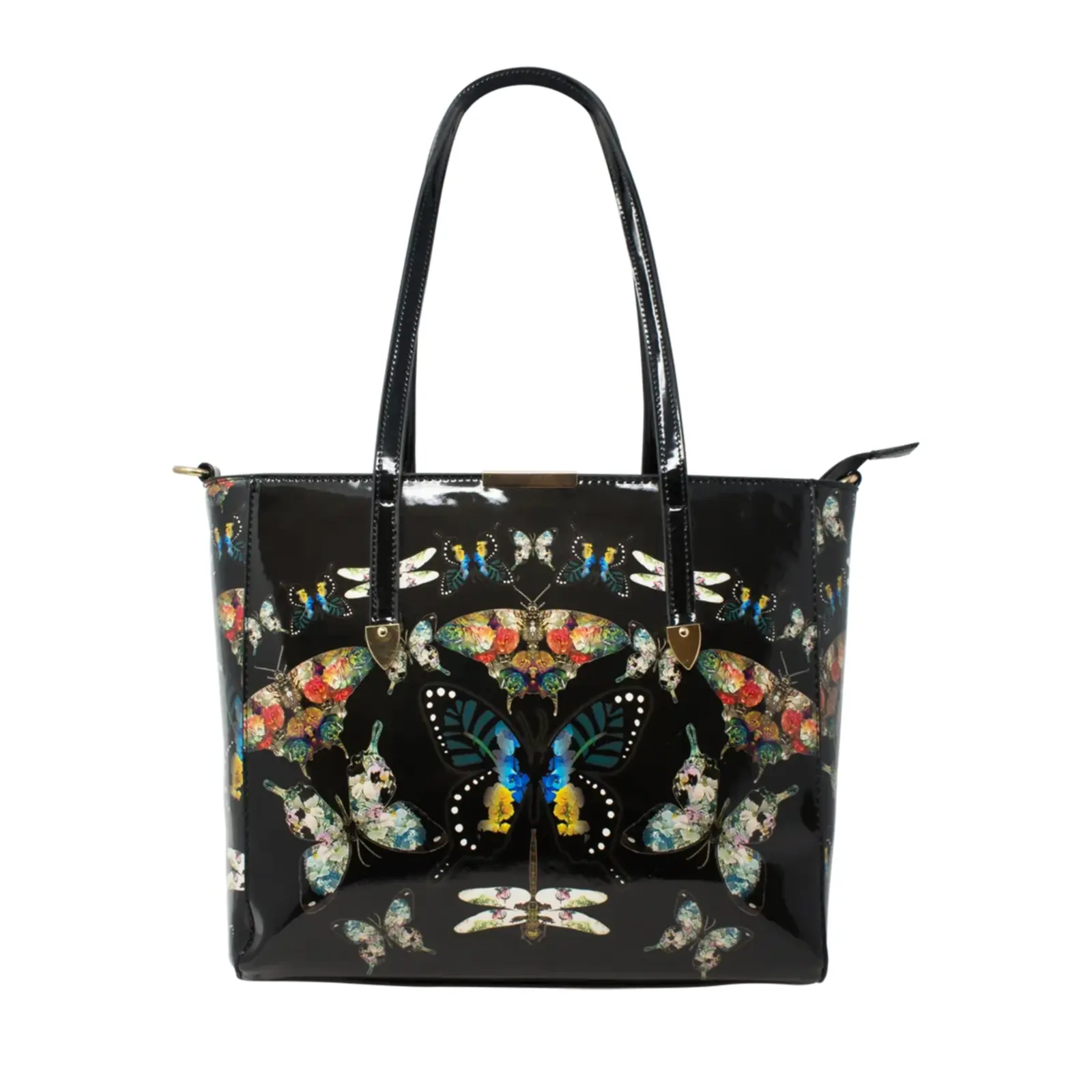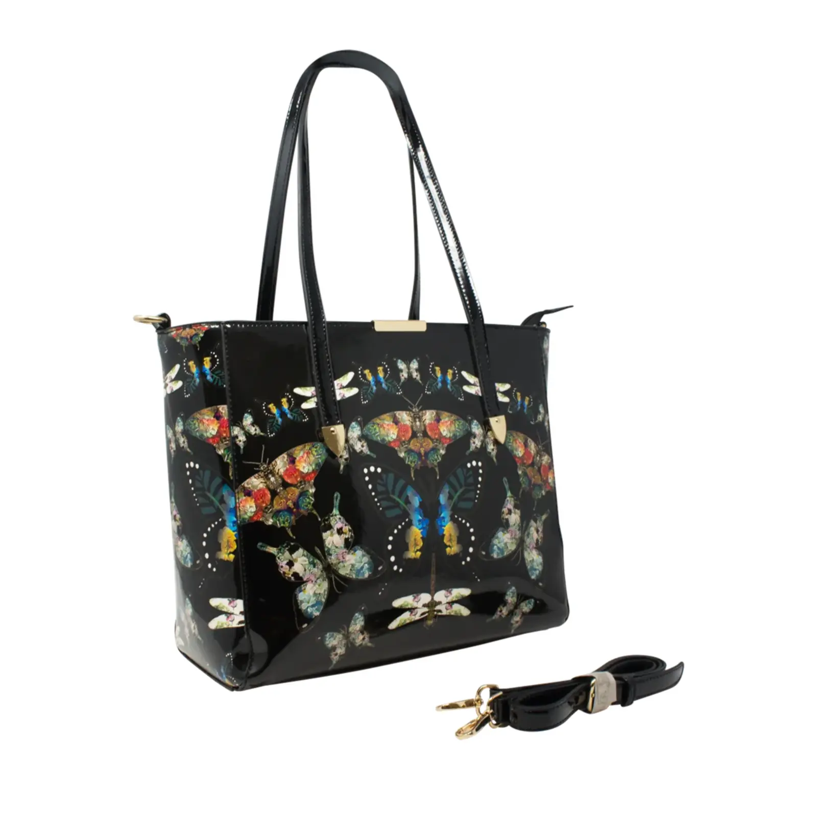 Beautiful butterfly print tote bag Come with a adjustable shoulder strap Zipper closure L x W x H – 31cm x 12cm x 29cm Weight: 0.95kg approximately.