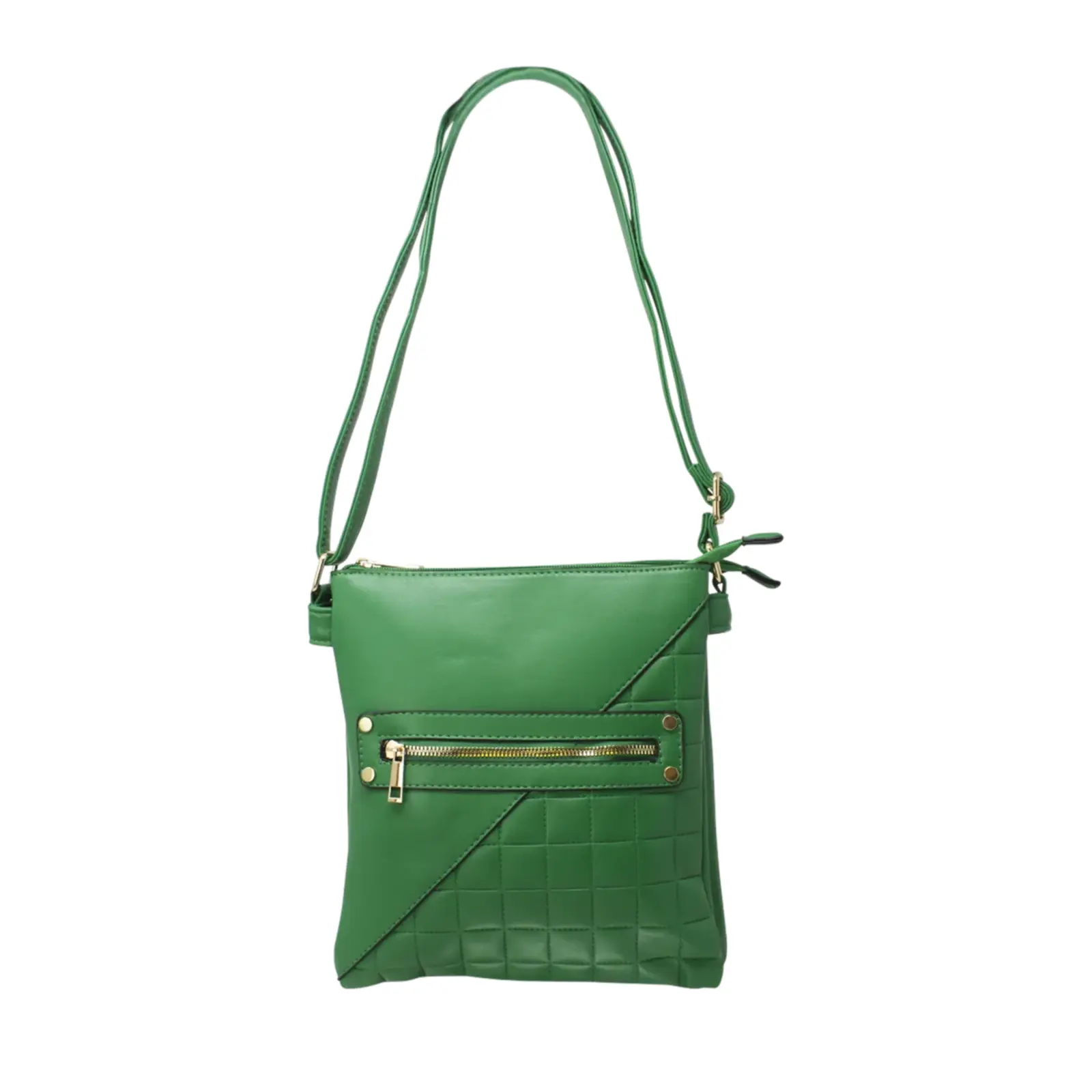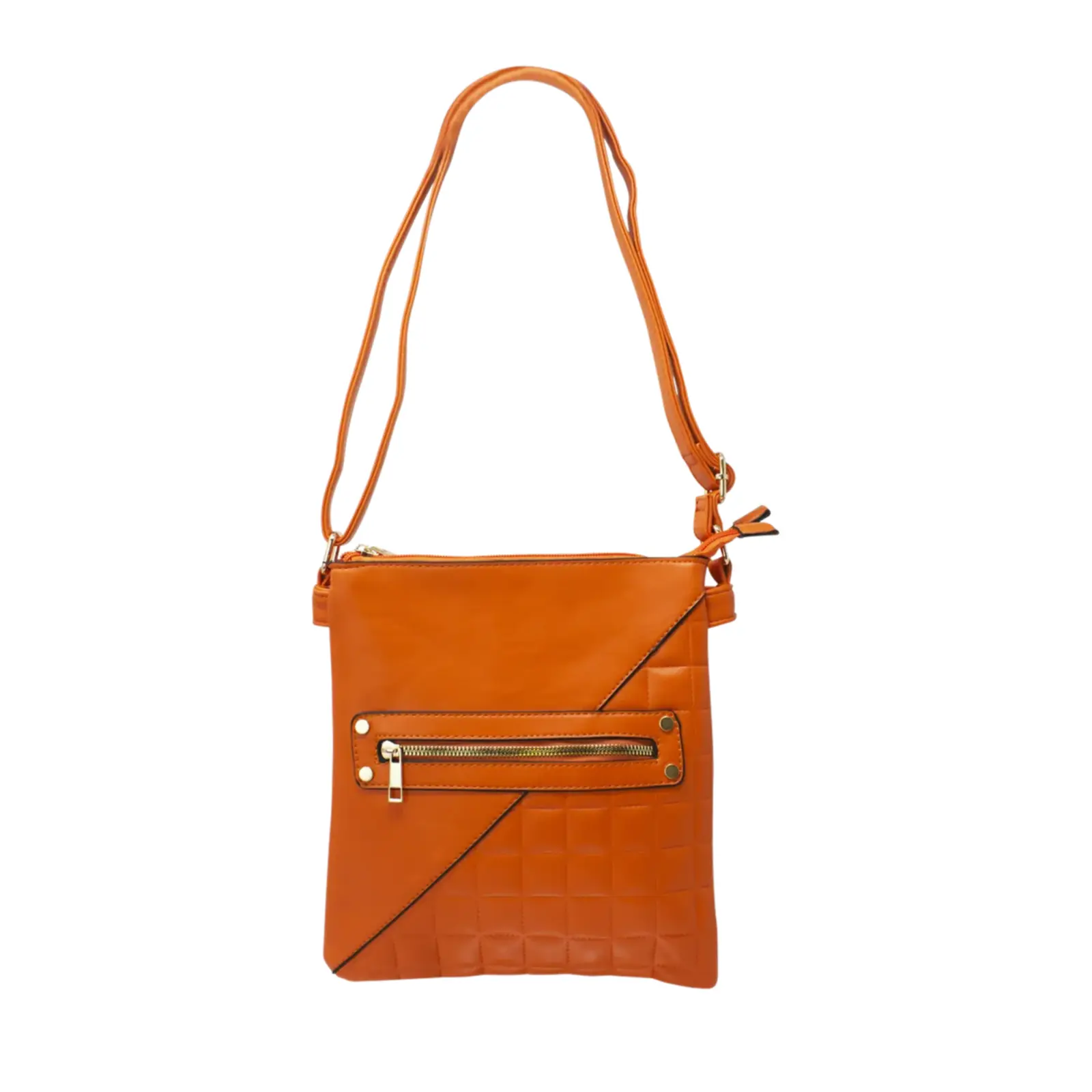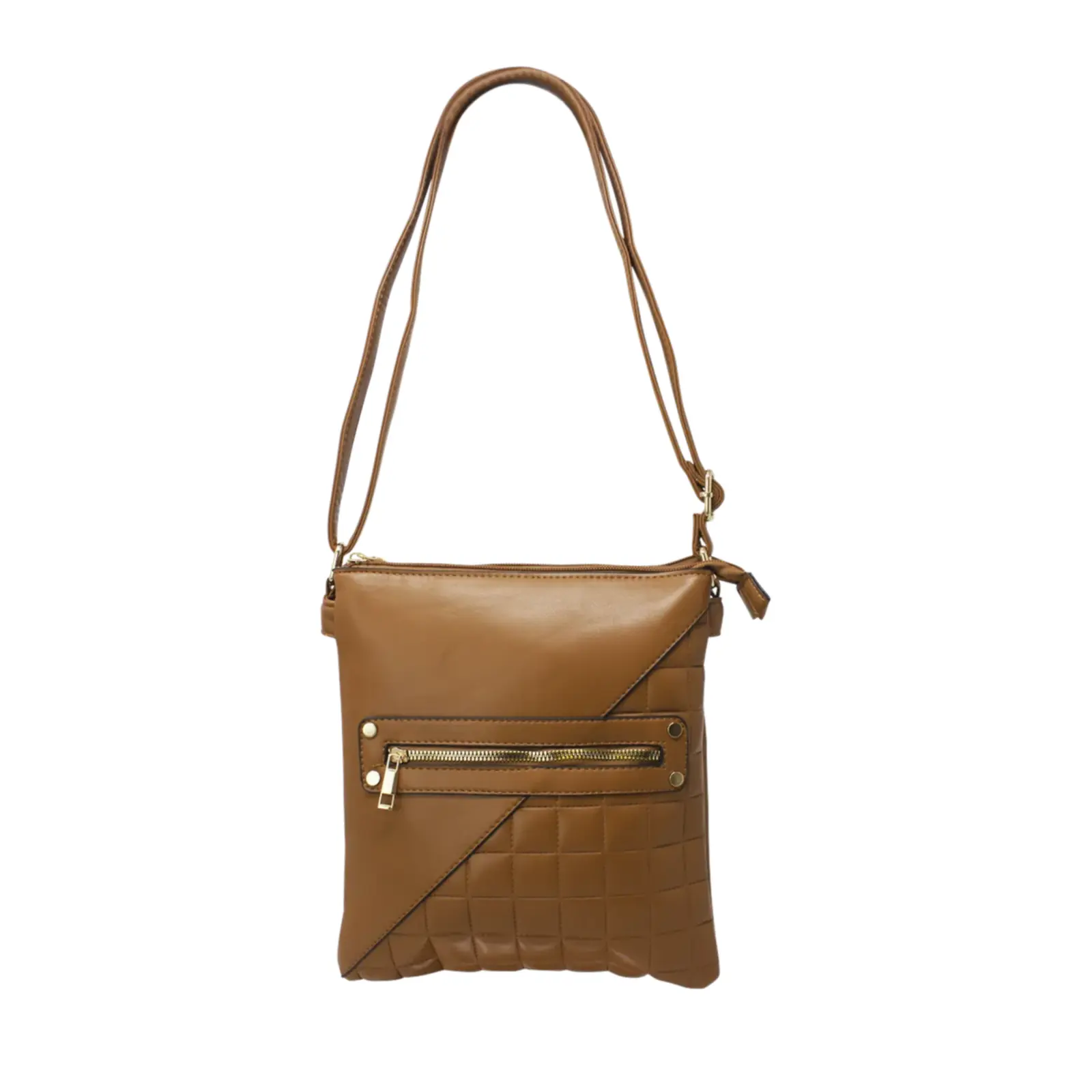 Our quilted crossbody bag with front zip. This stylish accessory combines functionality with fashion in a compact design. This bag is both durable and trendy. The front zip pocket adds a touch of convenience, allowing you to easily access your essentials on the go.