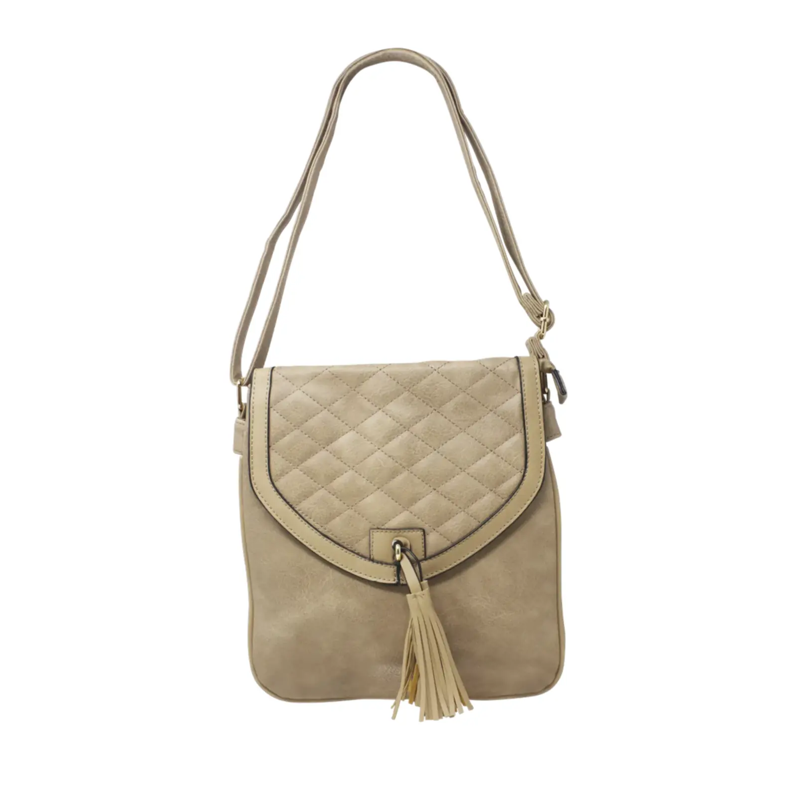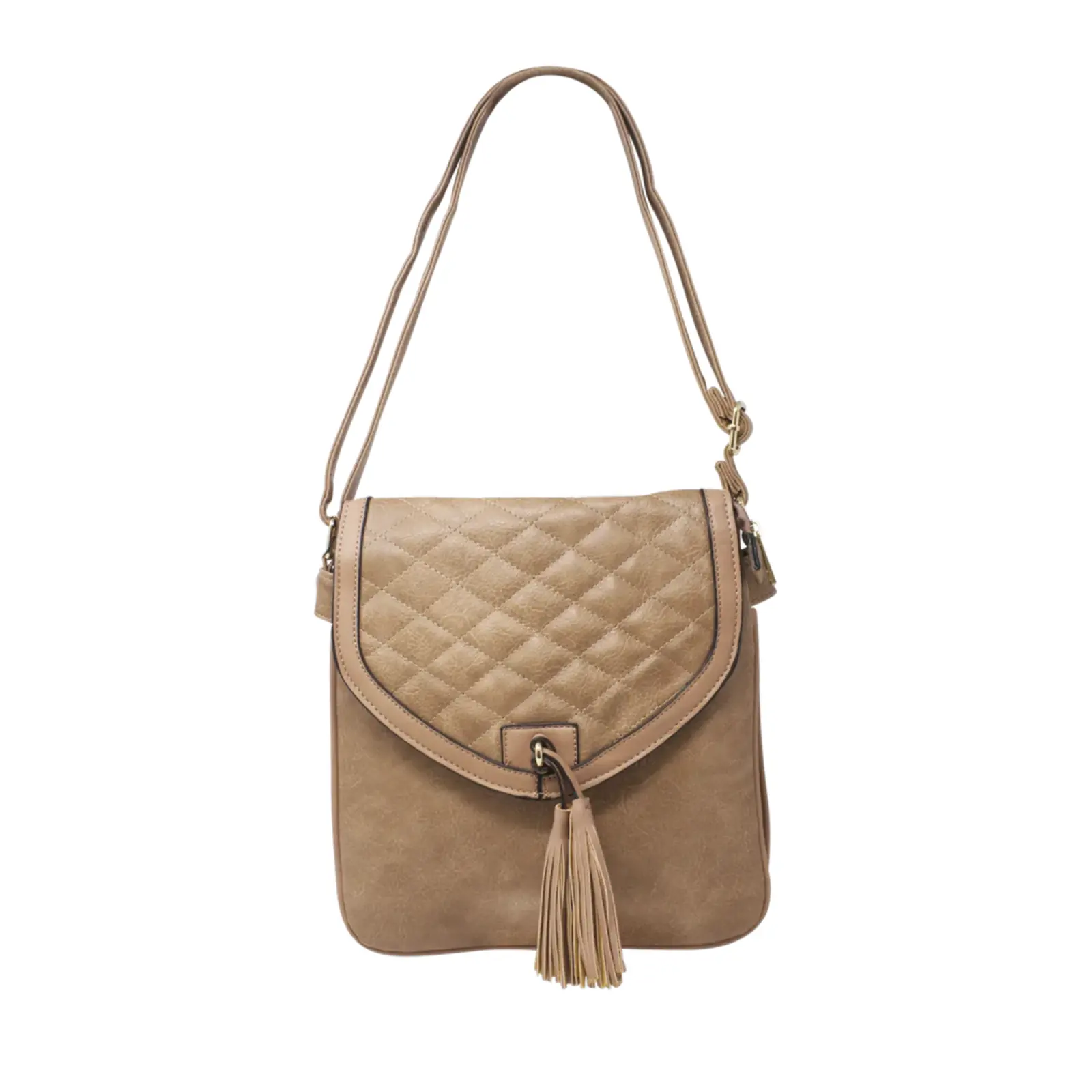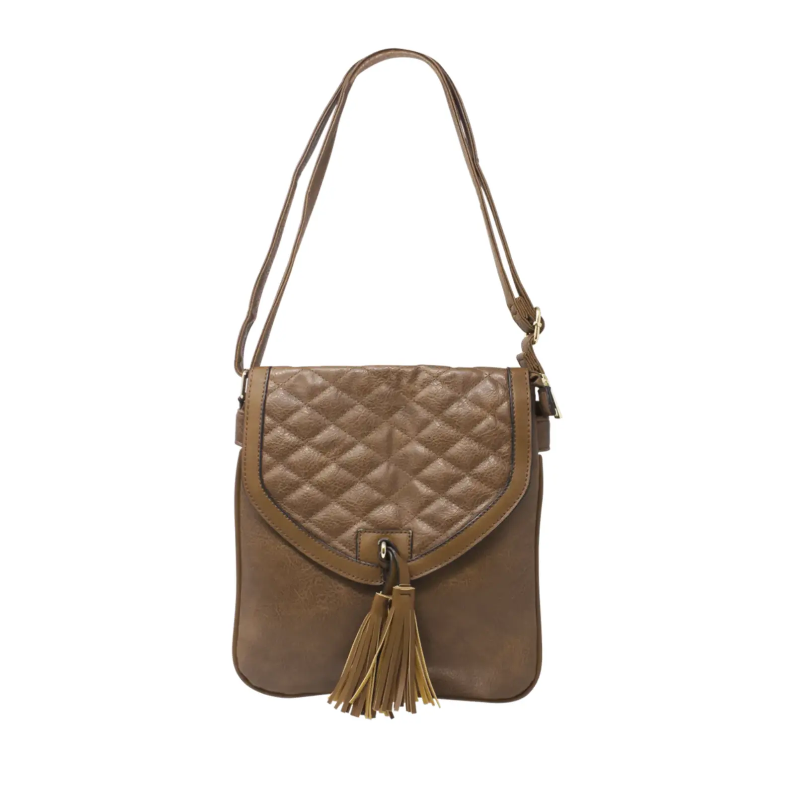 Quilted Front Flap Tassel Crossbody