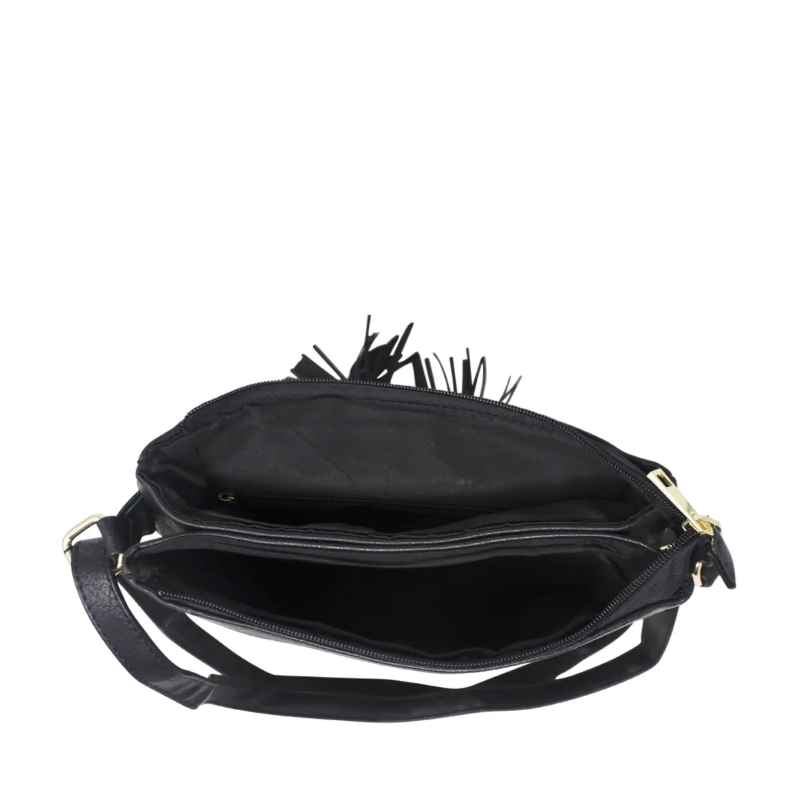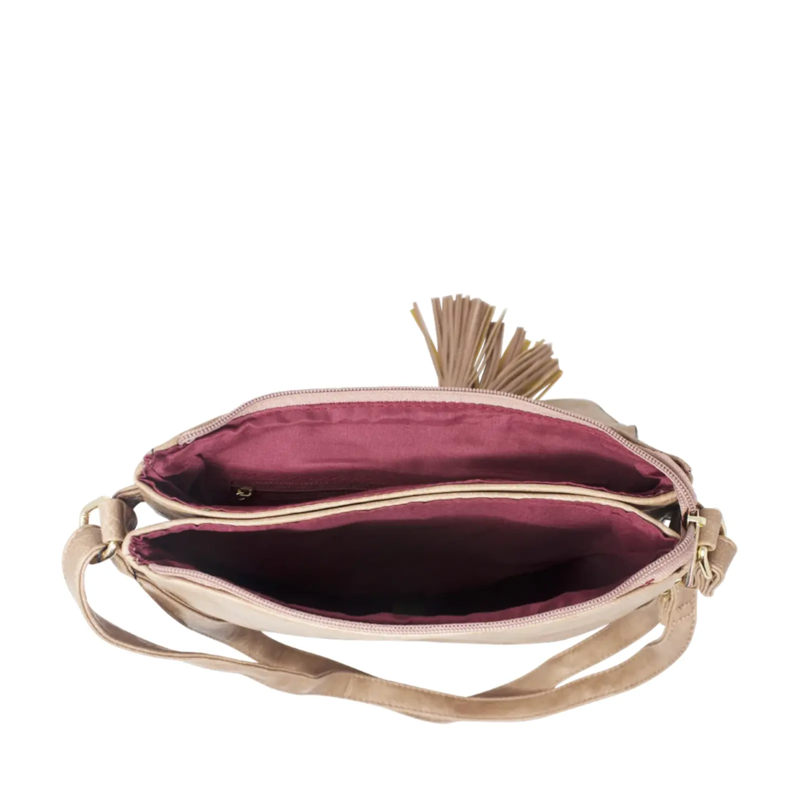 This crossbody features a quilted front flap with tassels decoration. It has two zipped compartment inside and suitable for everyday use.