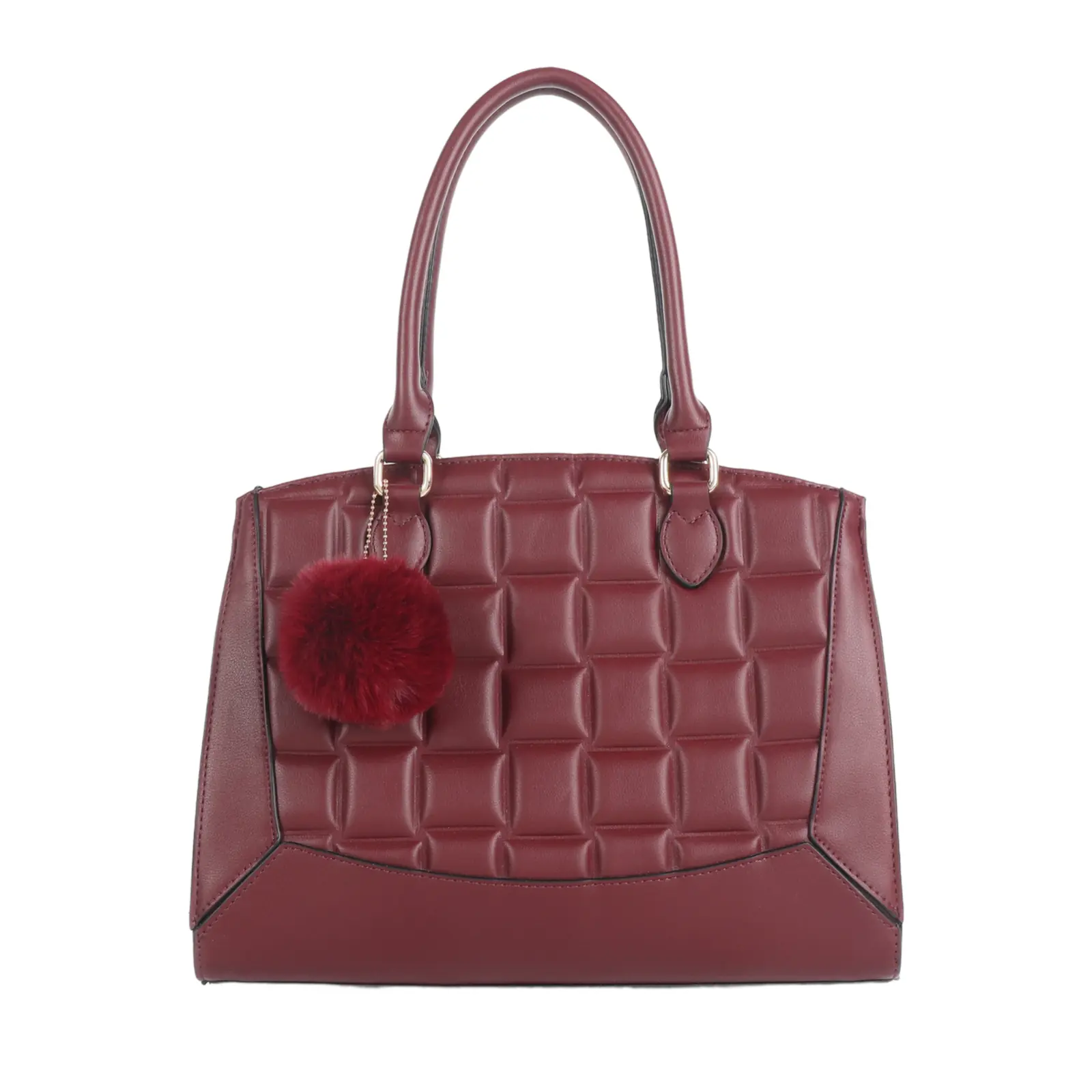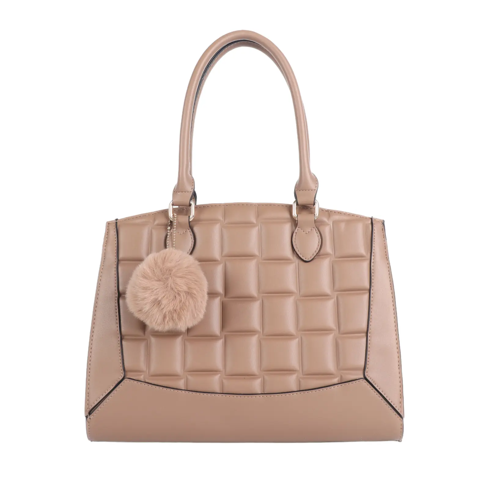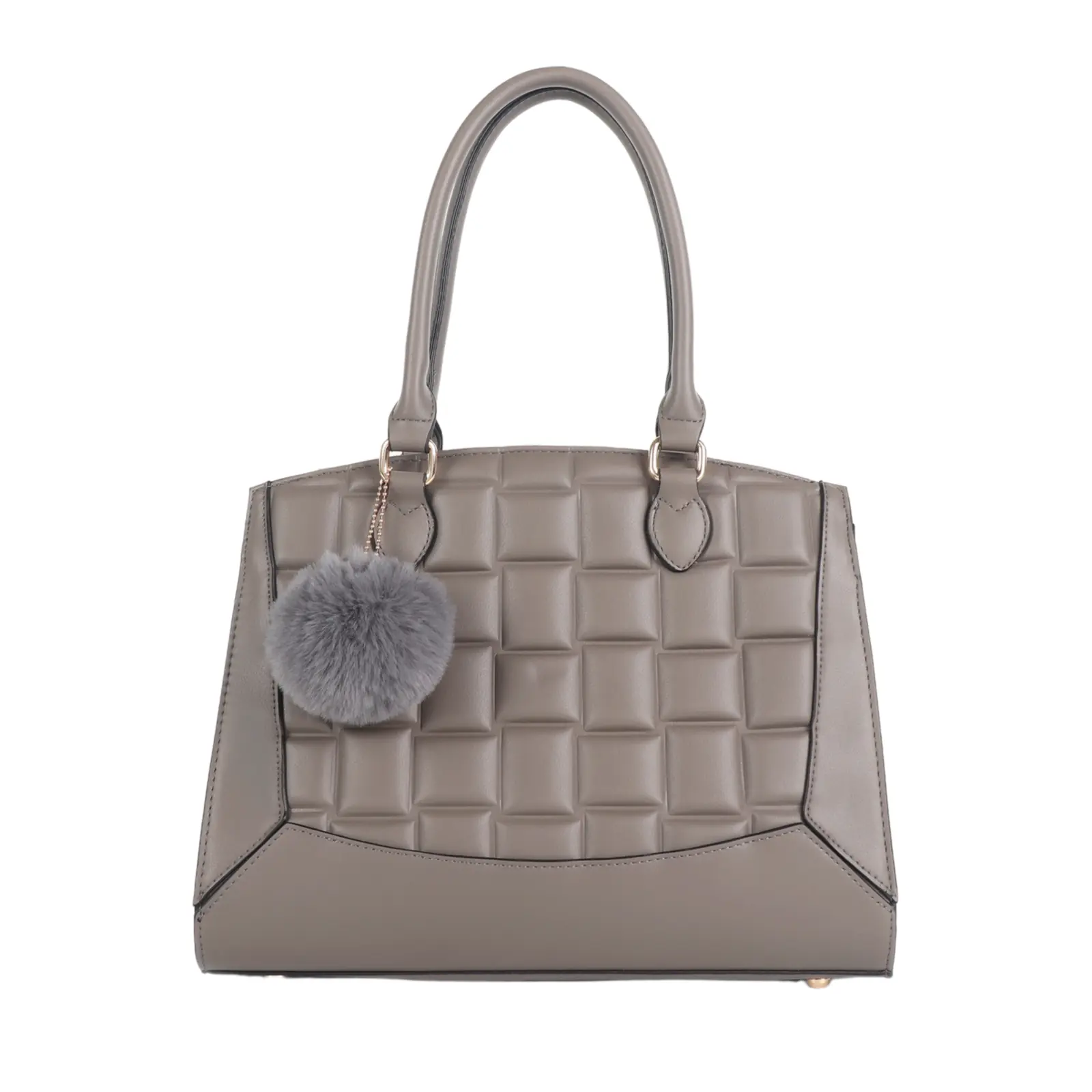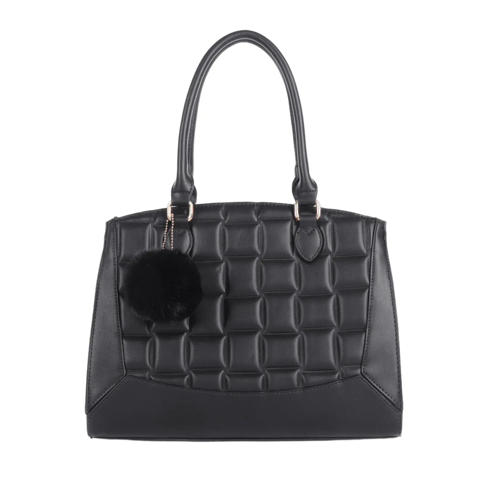 Quilted Patterned Handbag with Pom Pom Key Chain