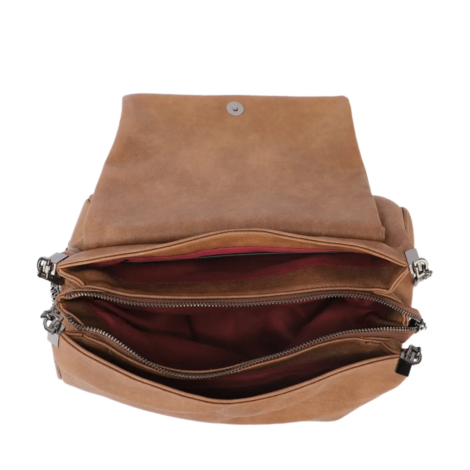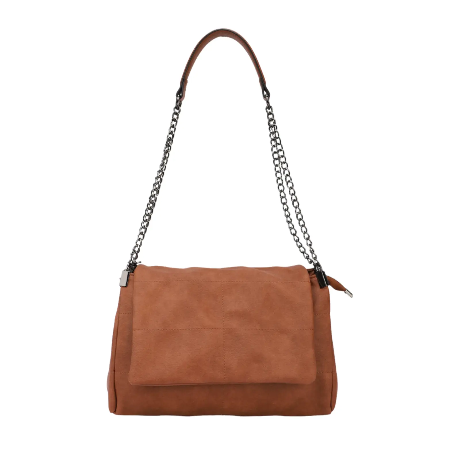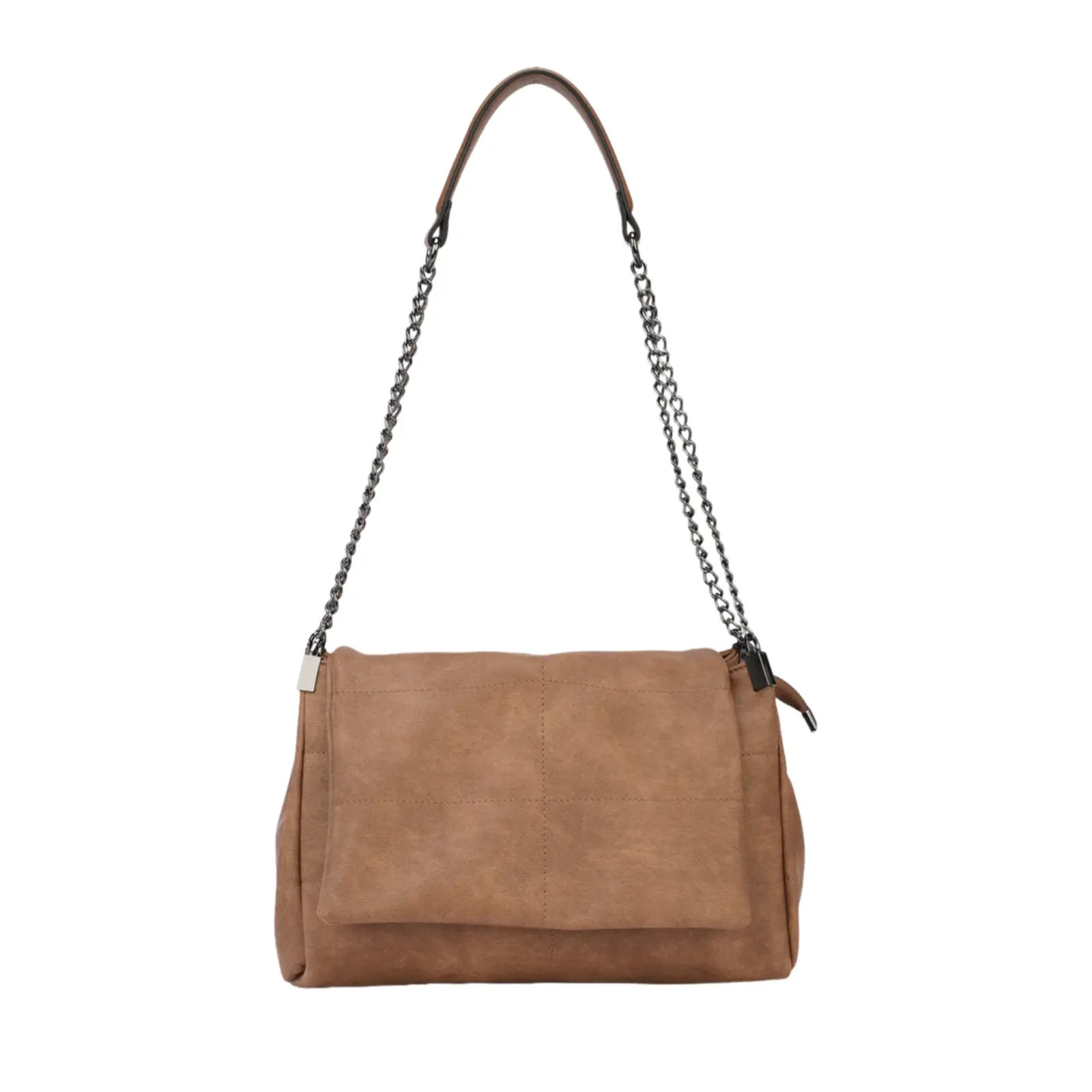 A crossbody bag that blends retro charm with trendy details, perfect for matching various daily outfits: Crafted from soft fabric with a subtle retro matte finish, it features a sleek flip-top design and is accented with side metal chain straps. These straps balance the bag’s soft texture while adding an edgy, stylish touch. The chain strap is length-adjusted to suit both crossbody and shoulder carry styles. Its comfortable texture ensures no burden during daily wear. Boasting a spacious main co.