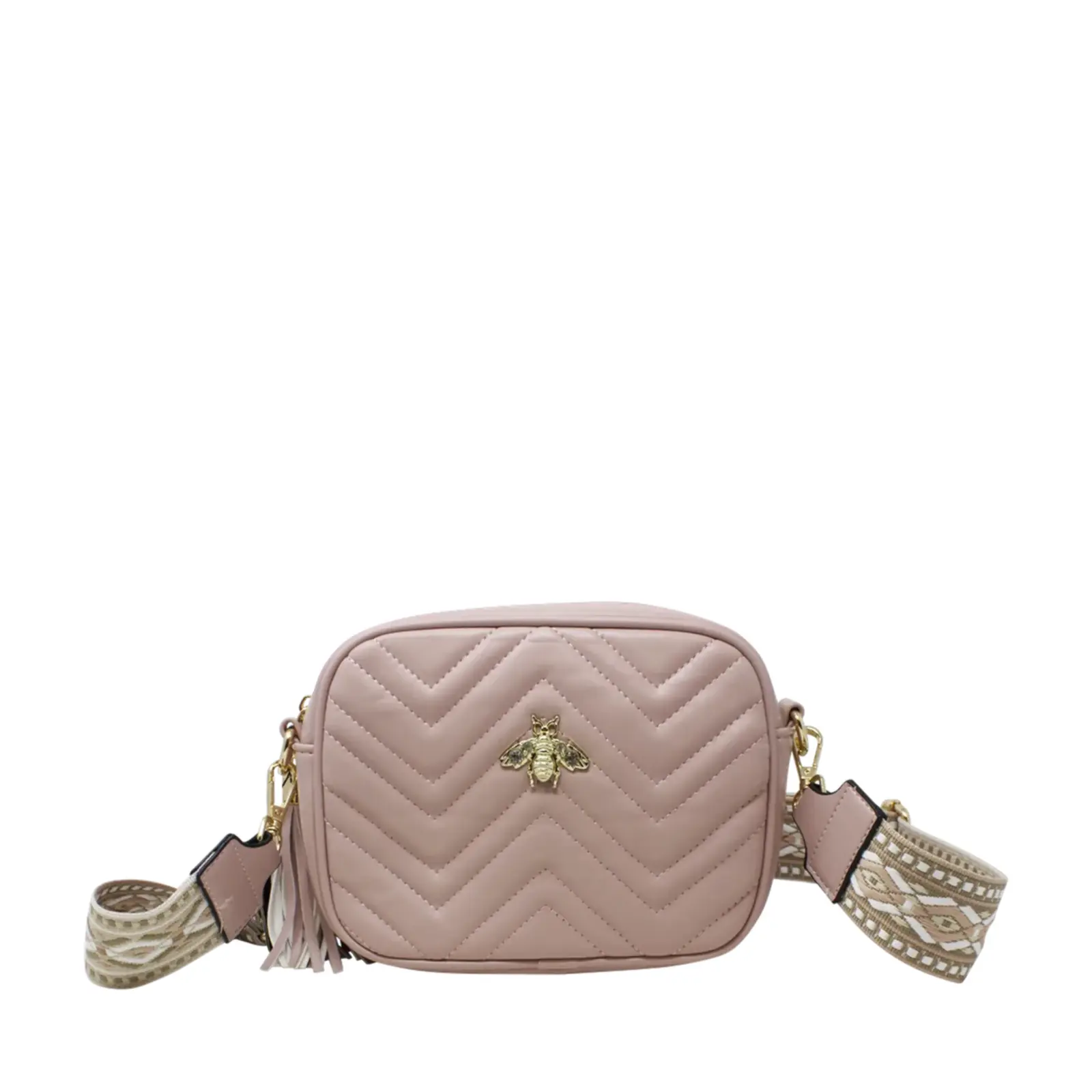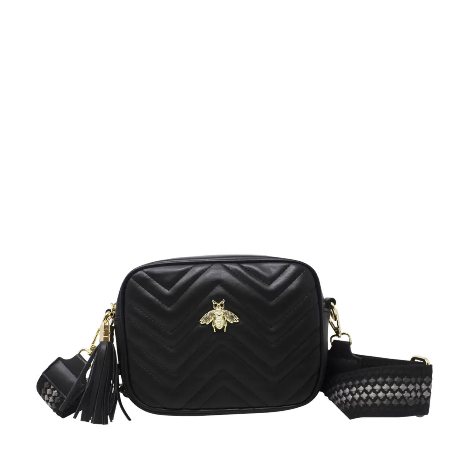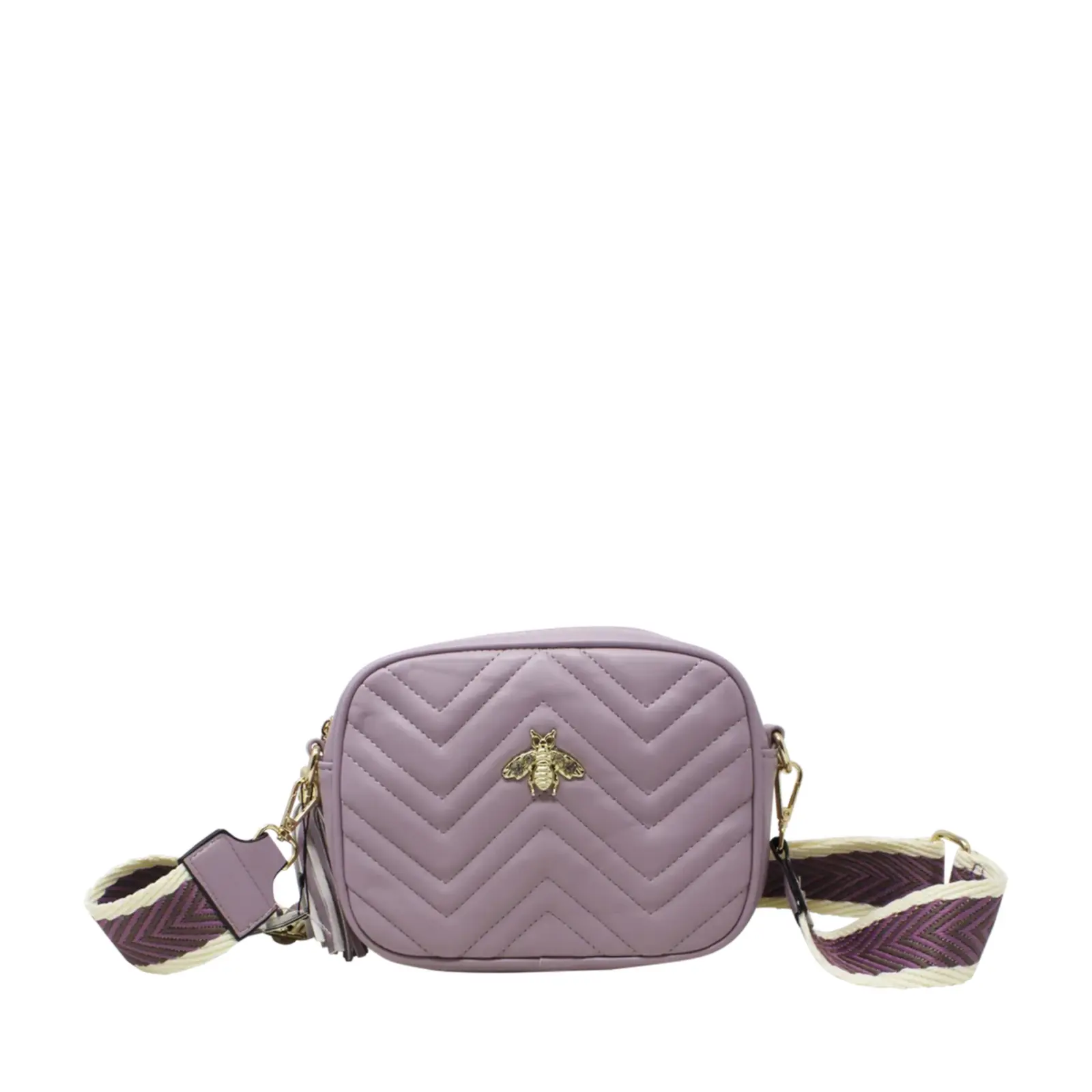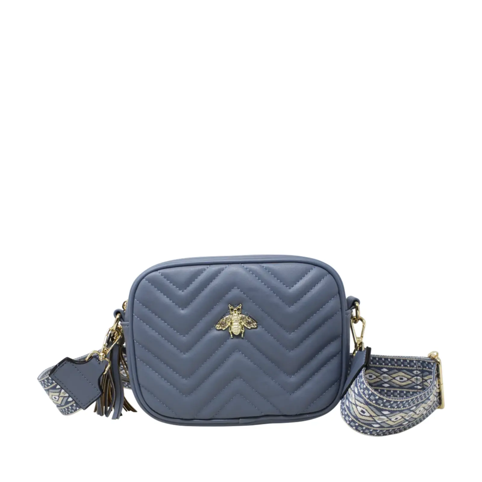PLEASE NOTE : The Pack of 6 Pcs option includes a mix of colours, ideally one of each. Final colours may vary depending on stock availability. A classic sized boxed camera bag with soft zig-zag stitched lines. Decorated with a bee at the front and comes with colourful woven shoulder strap.
