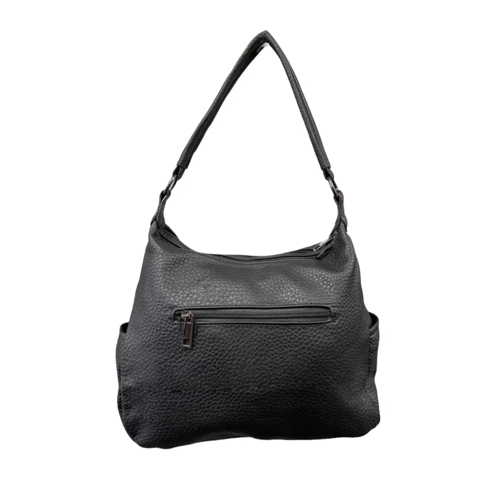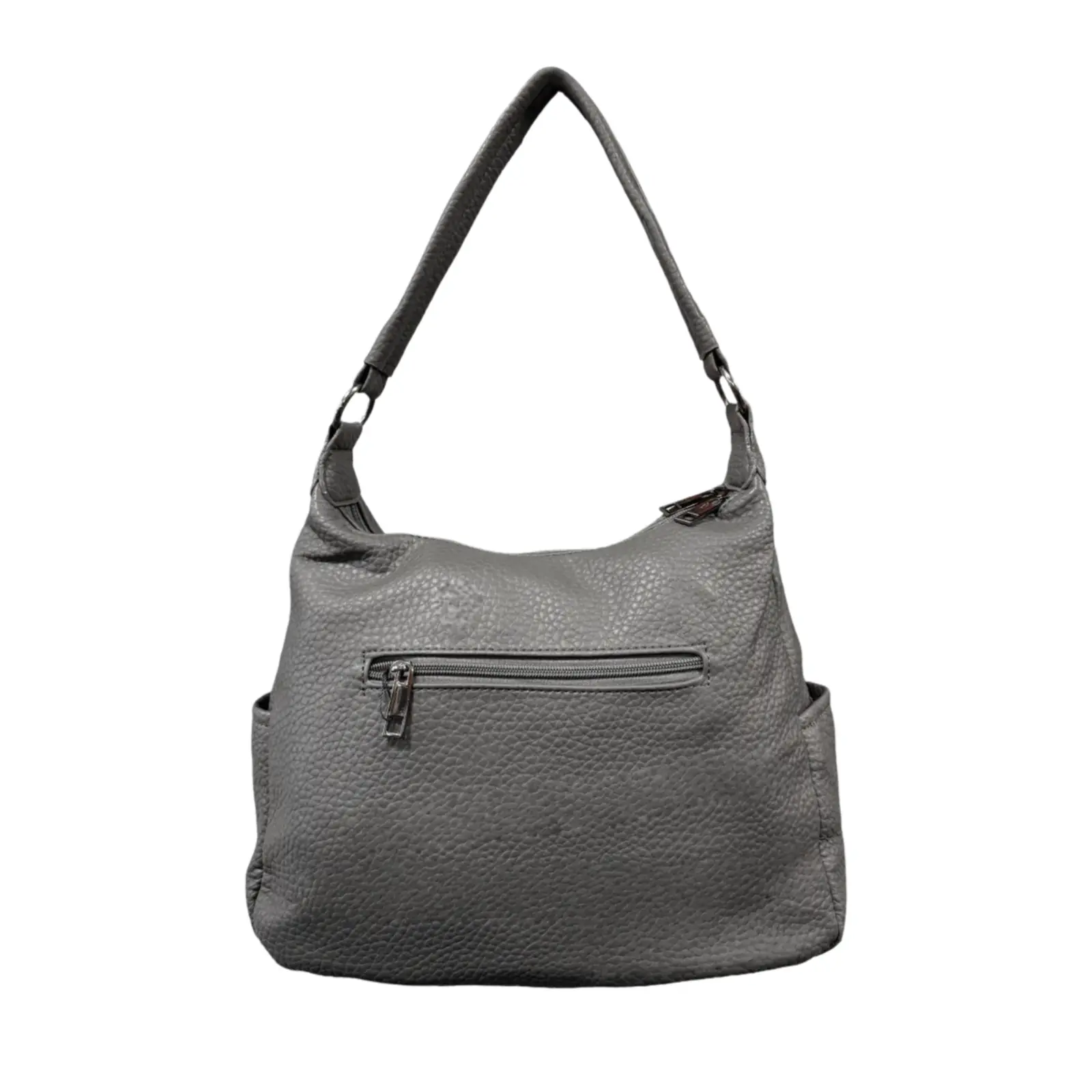 Be the first to review “Textured Leather Hobo Bag with Multiple Zippers & Detachable Crossbody Strap”