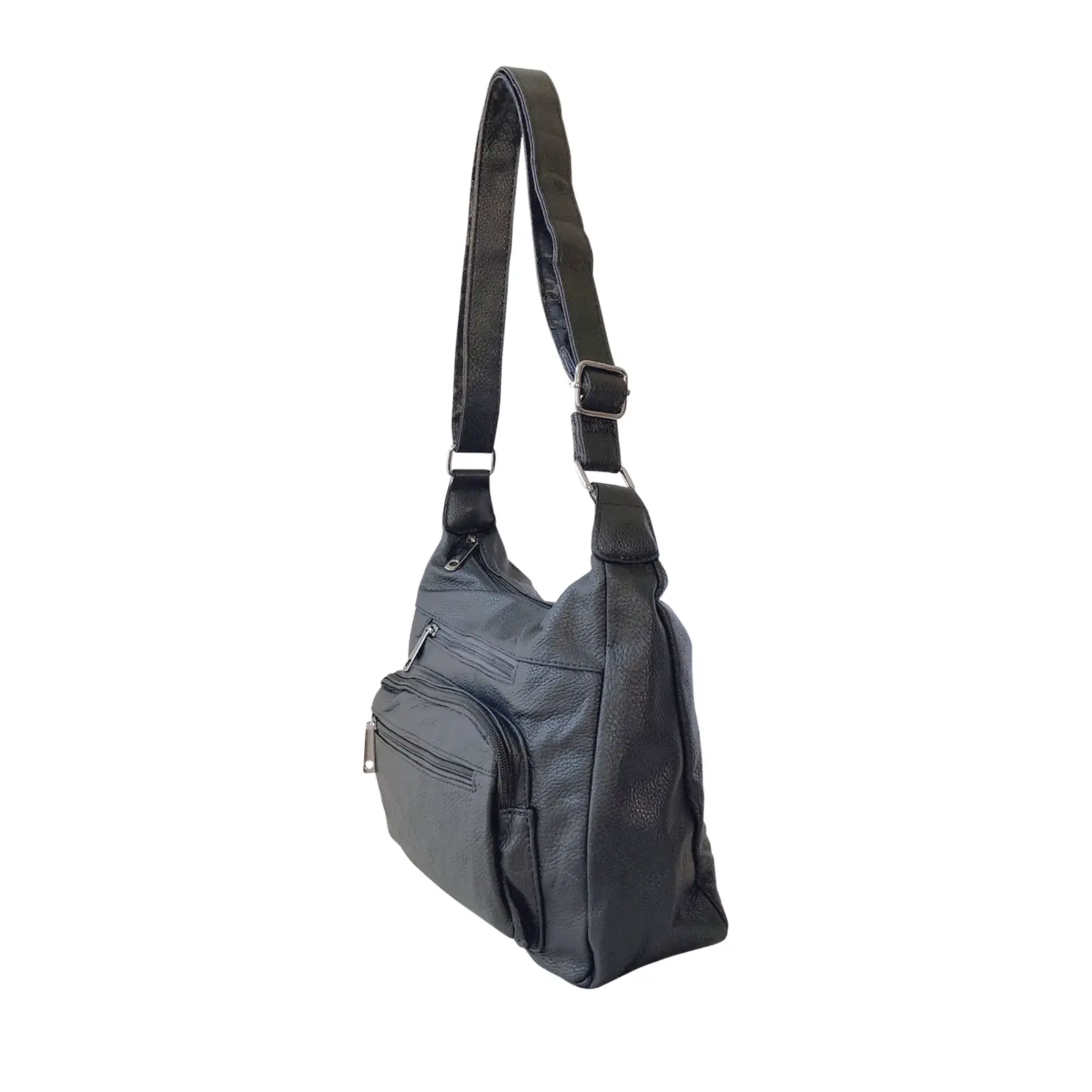 This structured shoulder crossbody features three secure zip compartments, a spacious main section, and an adjustable strap for multiple wearing options. Lightweight yet durable, it’s a popular everyday essential that combines function with streamlined design — ideal for stocking in both casual and commuter collections.