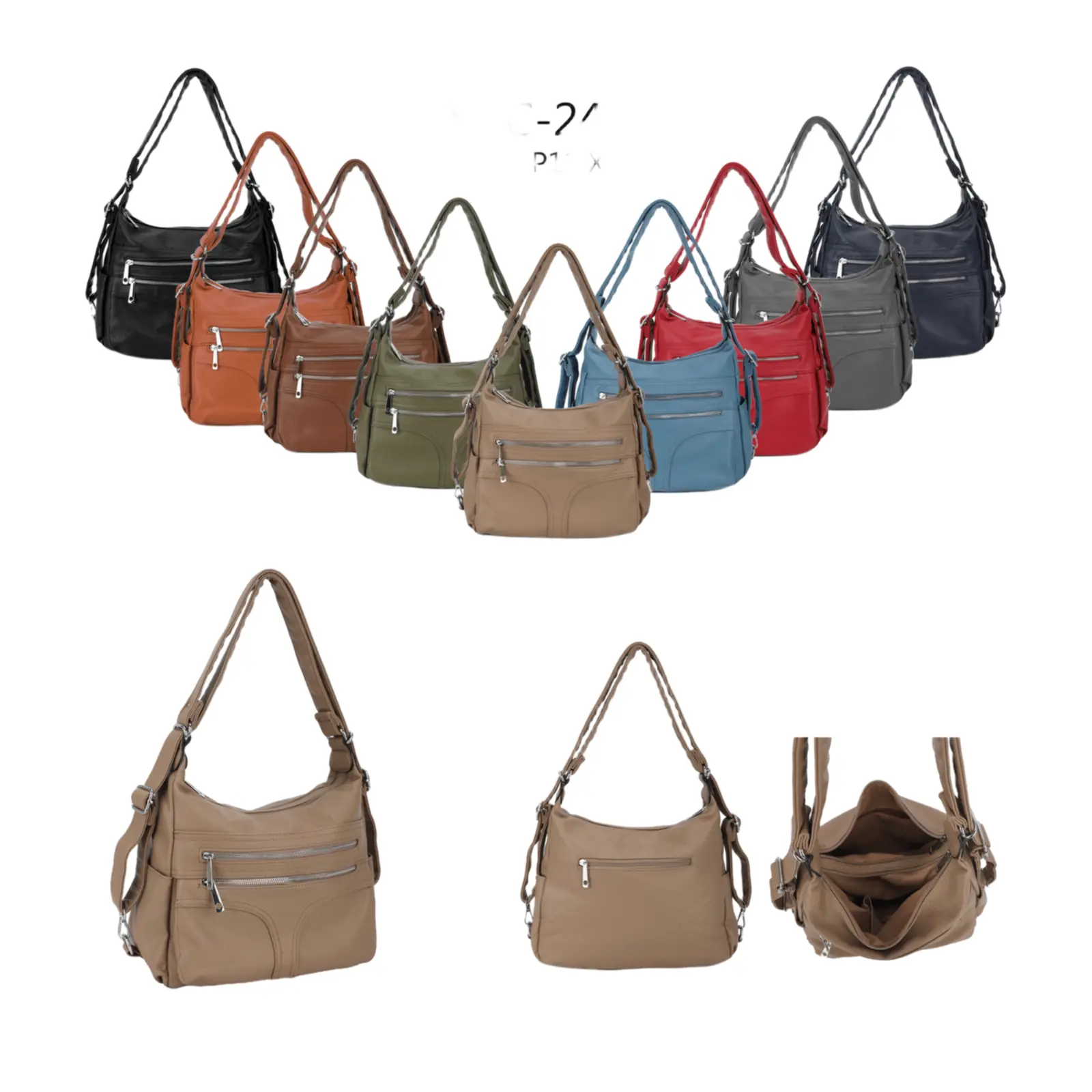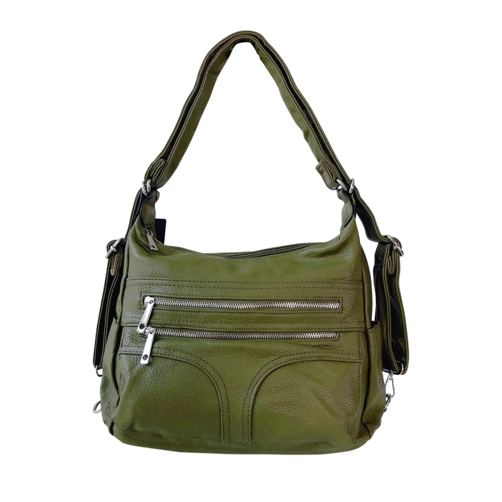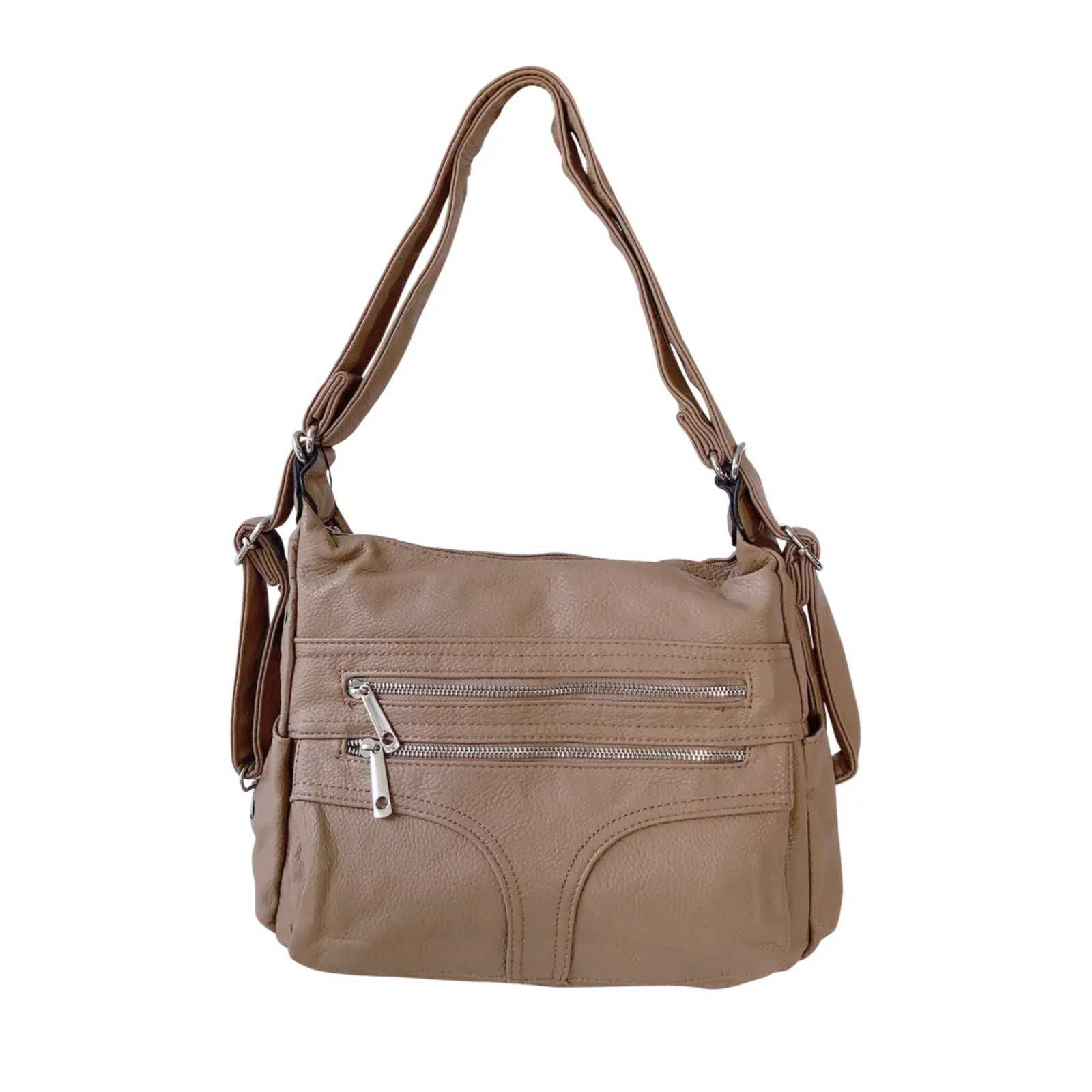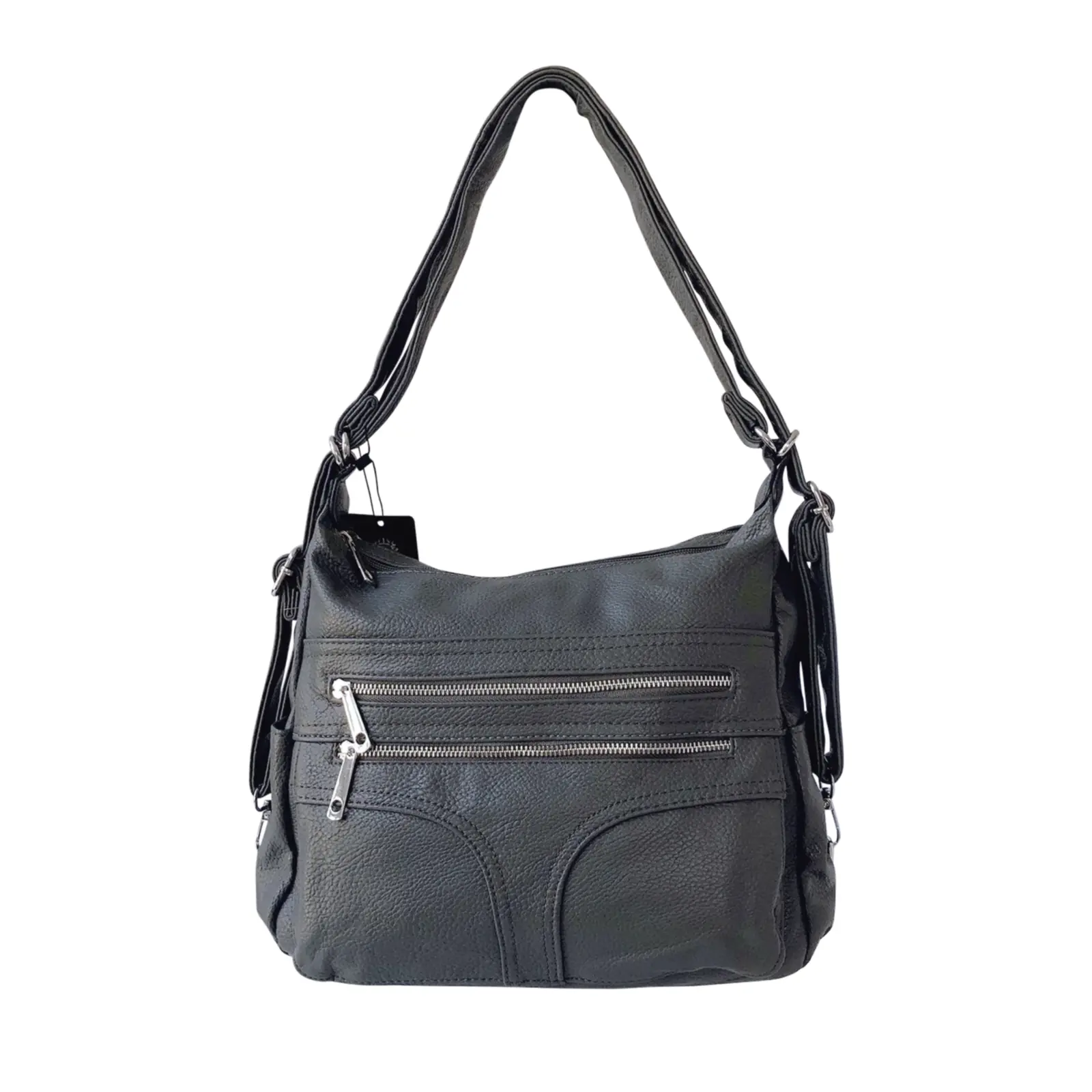 Designed for everyday versatility, this multi-zip bag features a spacious main compartment, easy-access front pockets, and an adjustable strap that transforms from shoulder to crossbody wear. Perfect for keeping the essentials organised on the go.