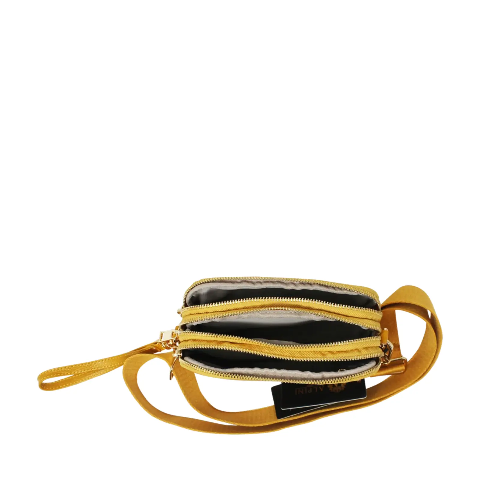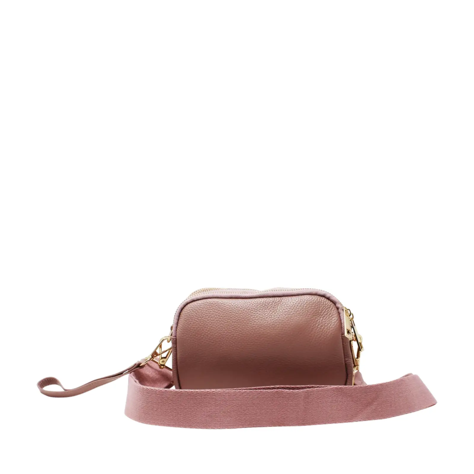 Tri-Zip Genuine Leather Clutch Bee Bag with Crossbody Strap