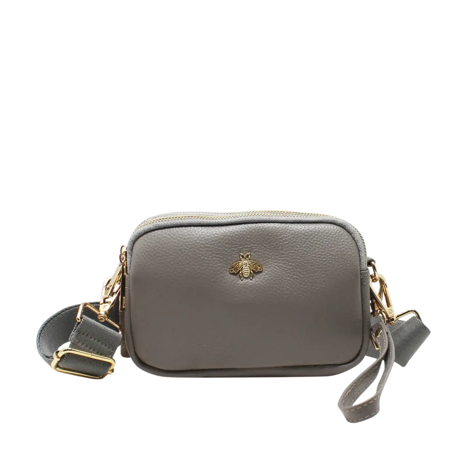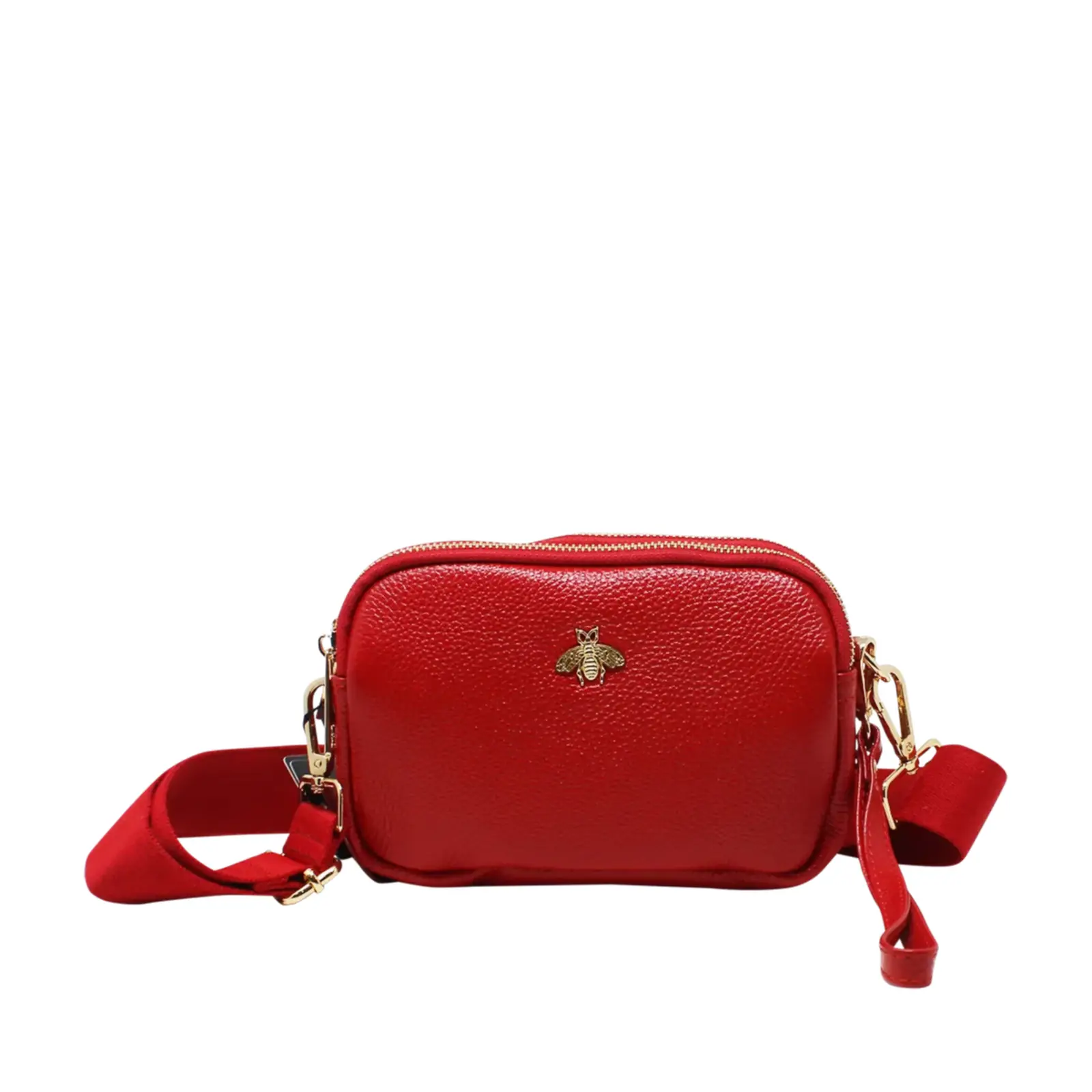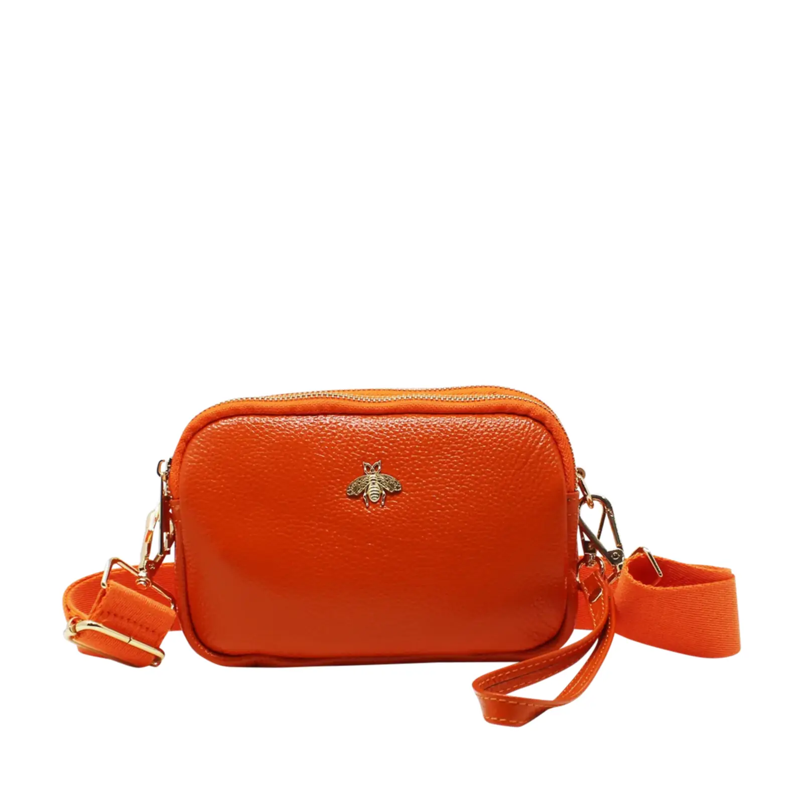 PLEASE NOTE : The Pack of 6 Pcs option includes a mix of colours, ideally one of each. Final colours may vary depending on stock availability. This leather camera bag is decorated with a golden bee at the front, features with three zippers and a detachable hand held strap. The classic and stylish design is perfect to match any outfit. Bag is made with 100% real leather with fabric inside lining.