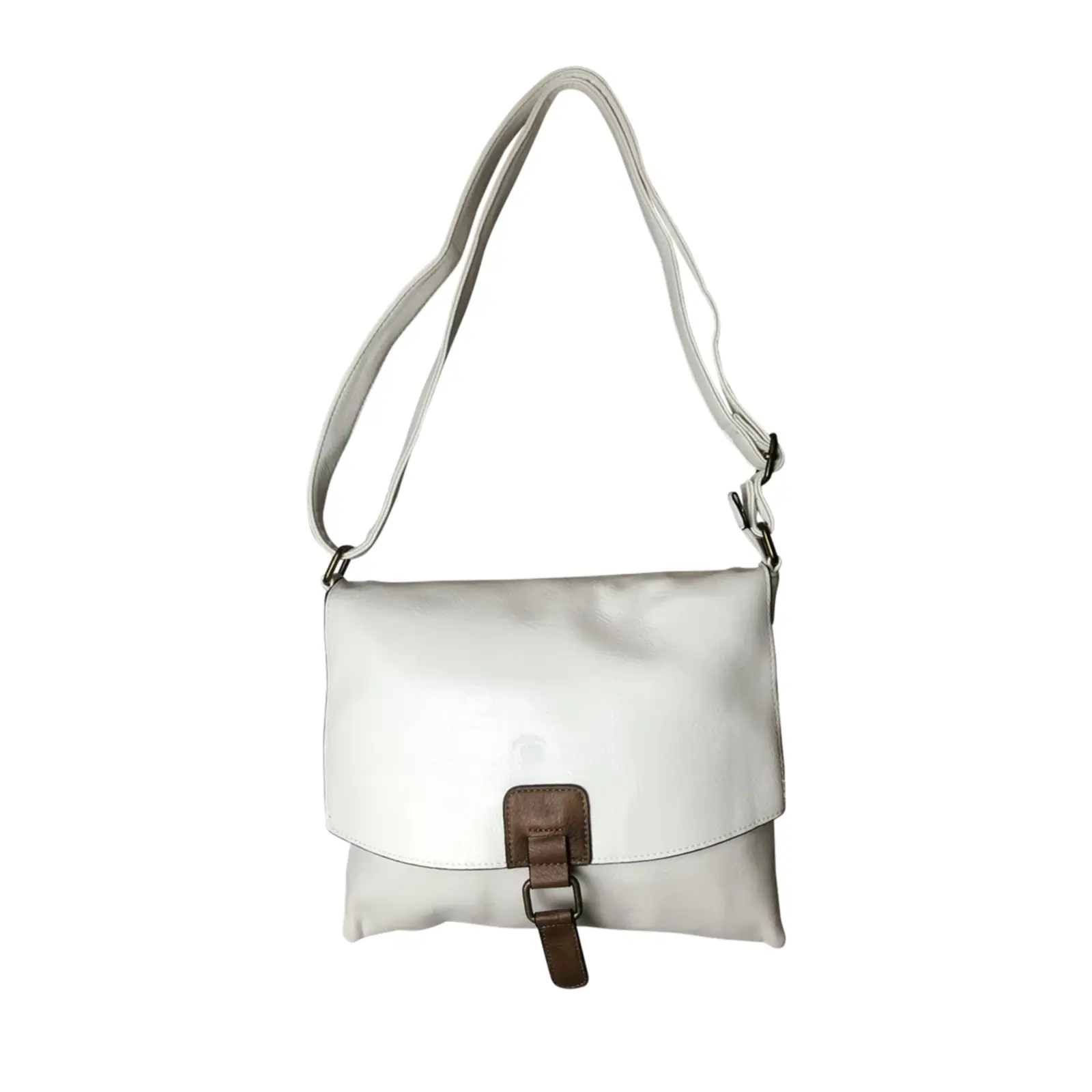 This crossbody messenger bag is made of a vintage feel – faux leather material. It has a big fap at the front with a small buckle decoration.