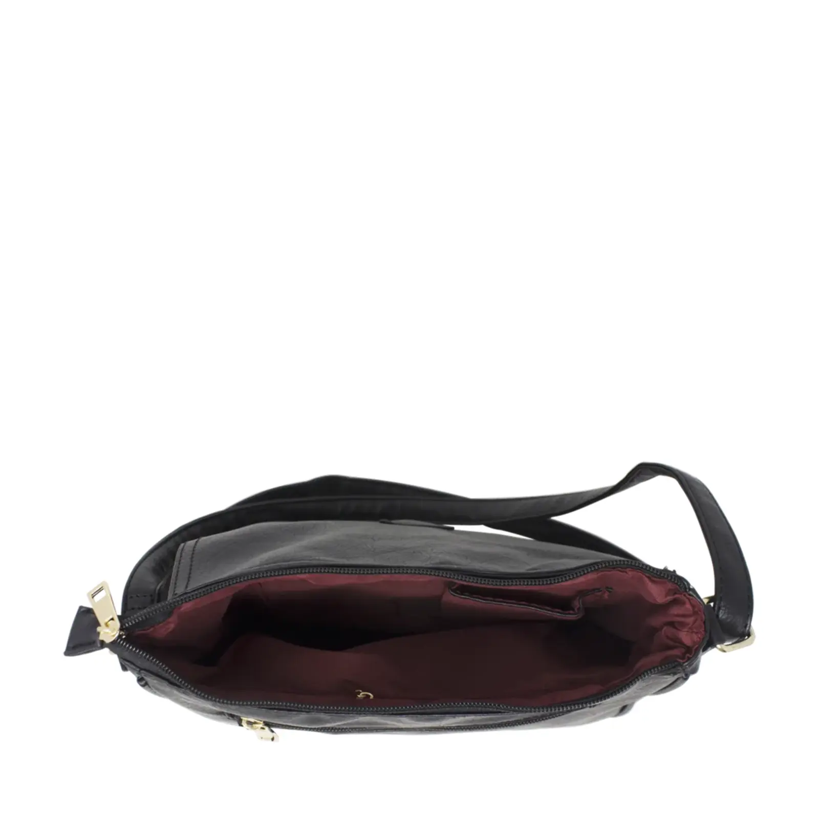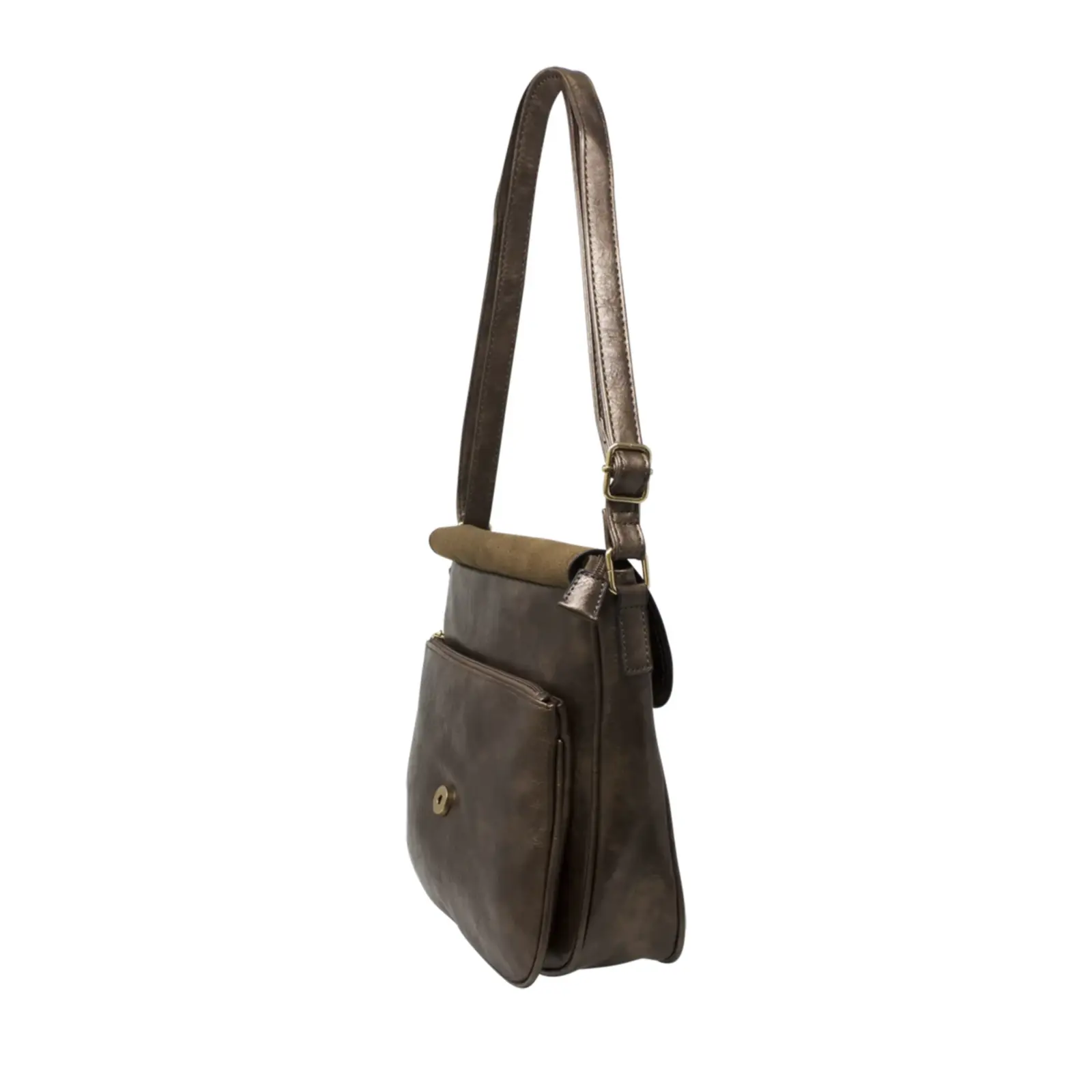 This crossbody features a zipped pocket underneath the front flap. It is in a simple design but is spacious for daily use in most occasions.