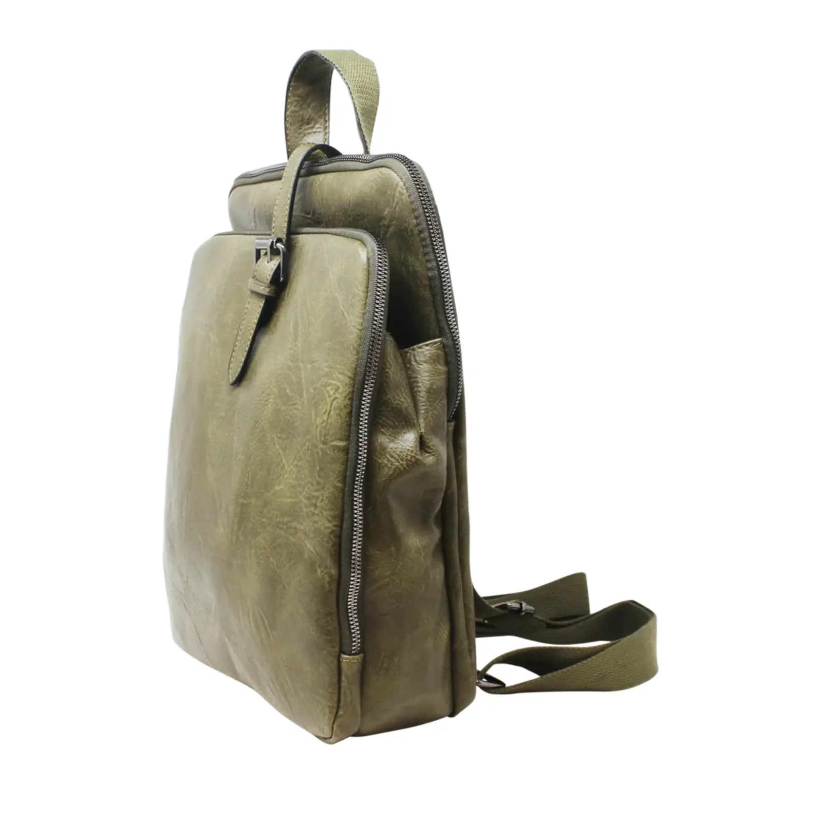This backpack’s main access is folded between the front and back compartments, and is protected by a top strap. This design makes belongings inside very secured and safe.