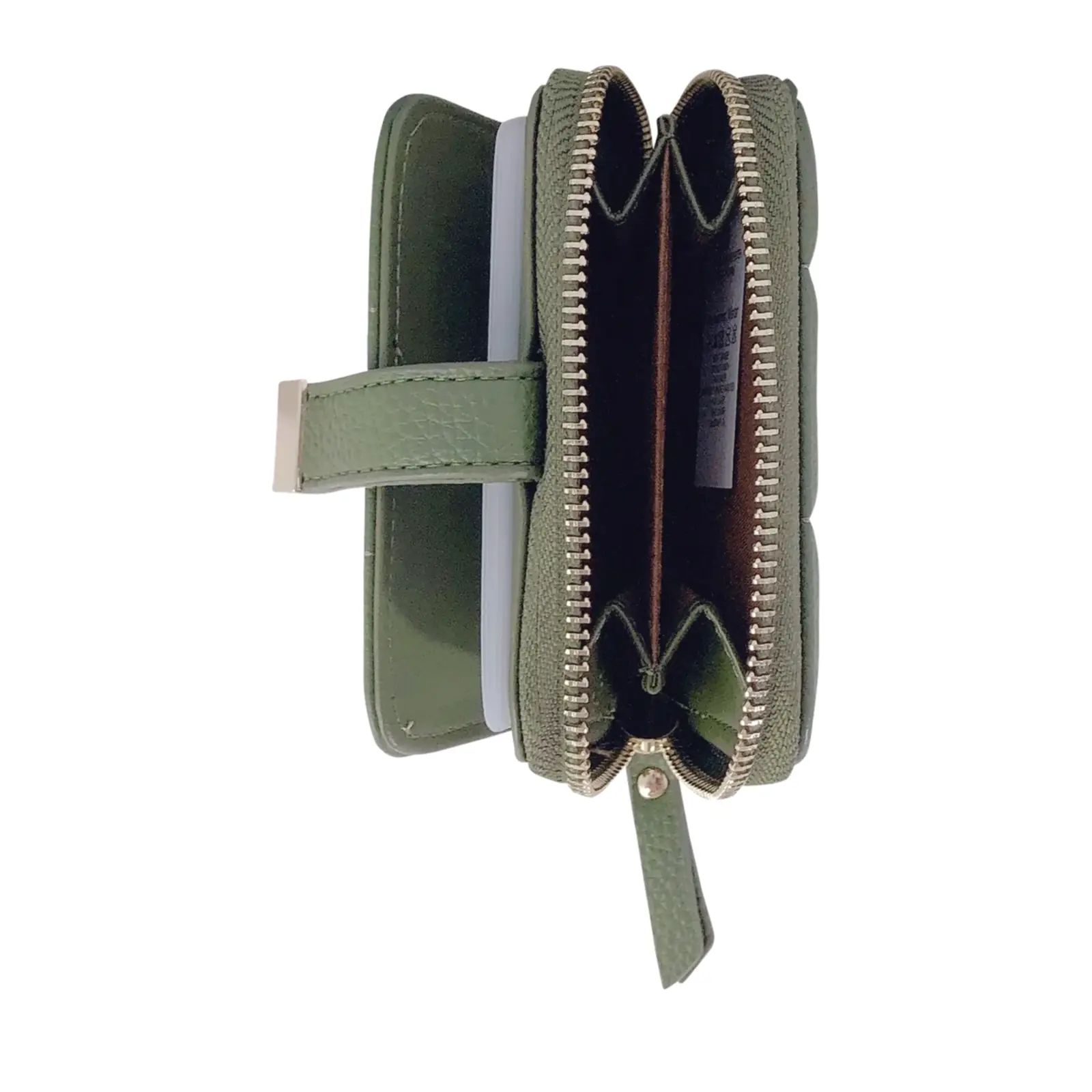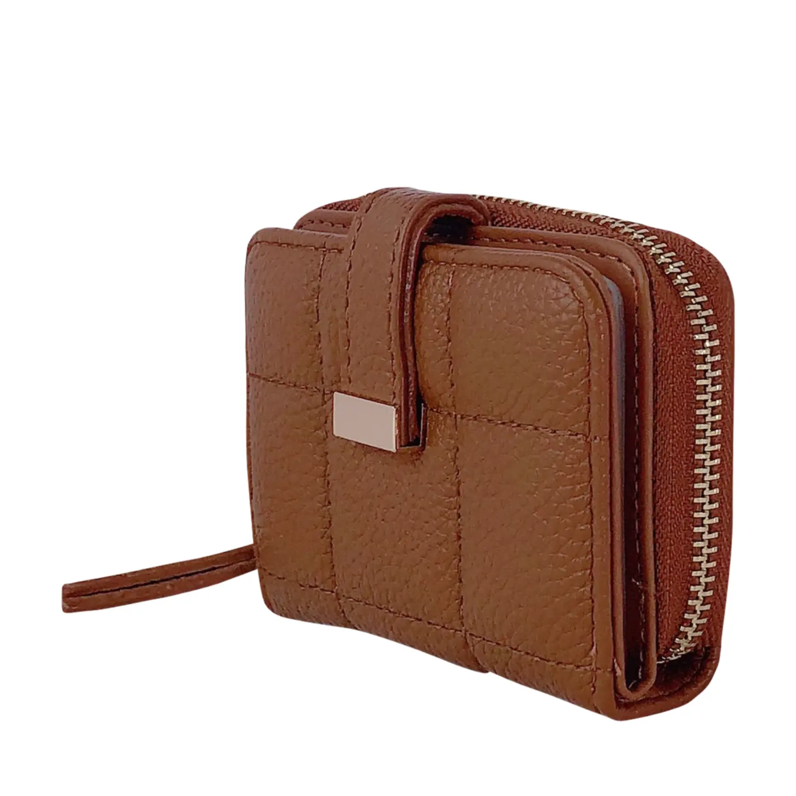 A compact and practical quilted wallet with a secure snap tab and wristlet strap. Features multiple compartments for cards, coins, and notes. Available in a variety of rich colours to suit every style. Perfect for everyday use or gifting.